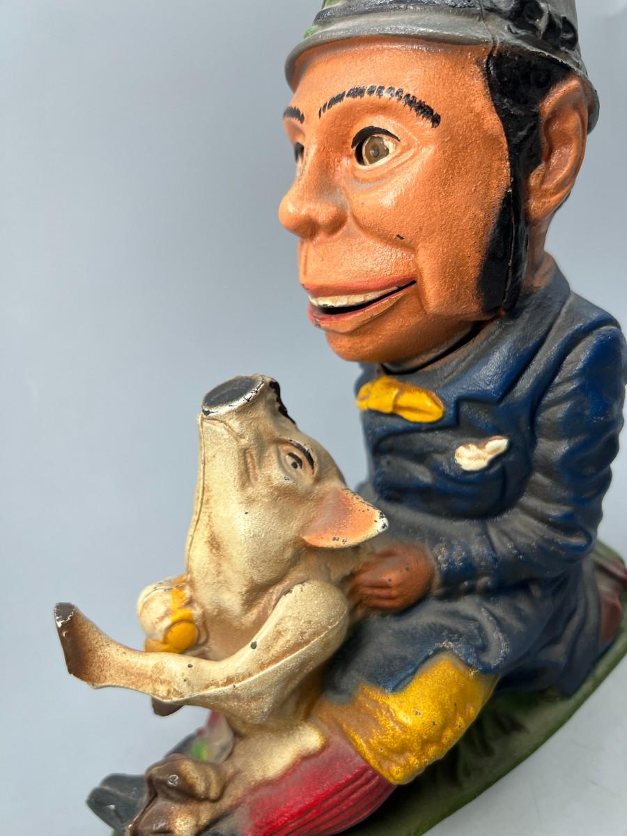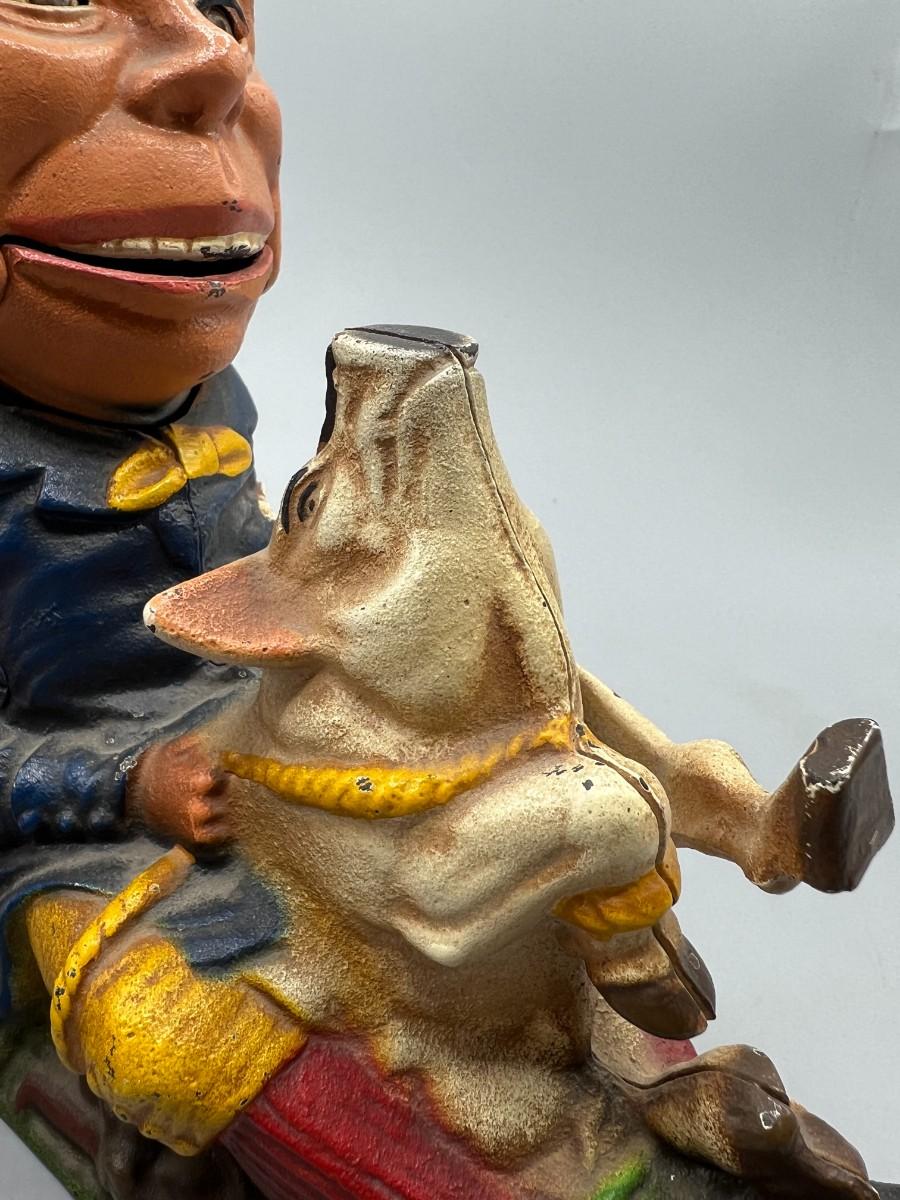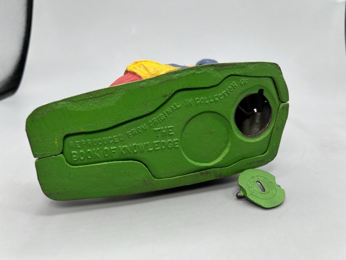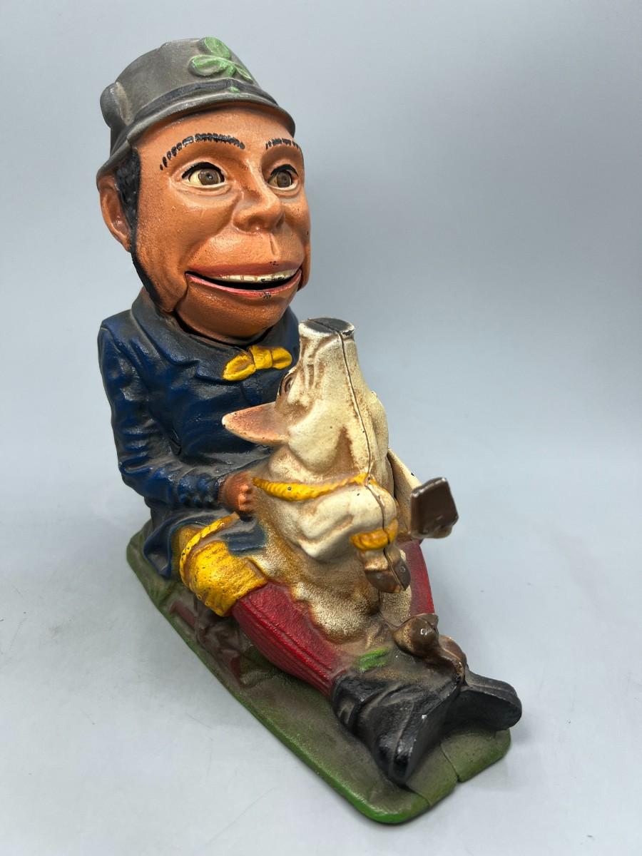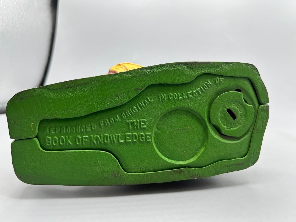 Vintage Reproduction Cast Metal Coin Bank Paddy & Pig Mechanical Book of Knowledge