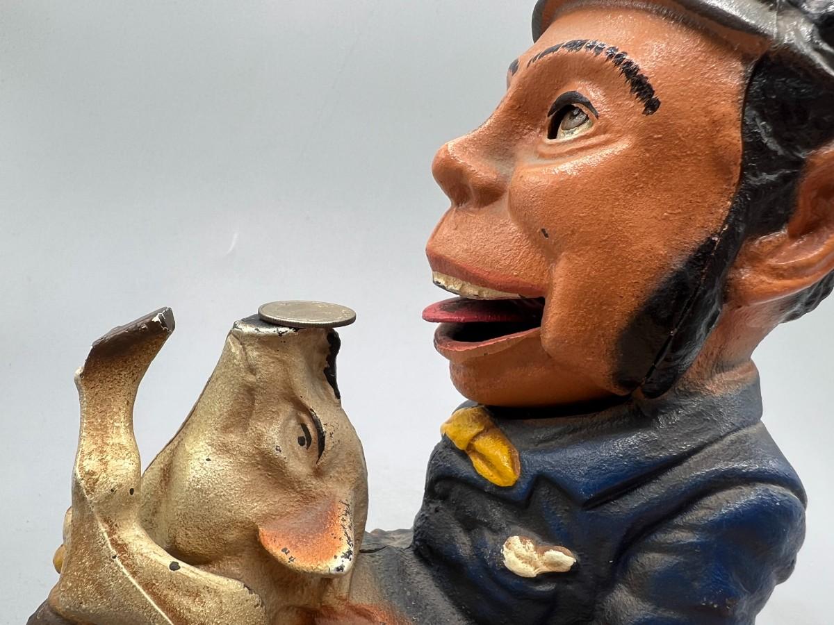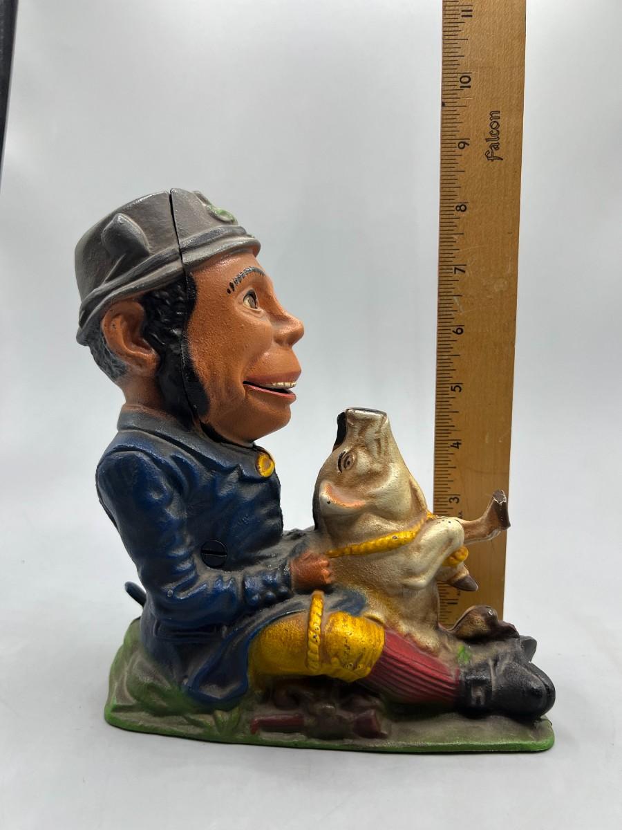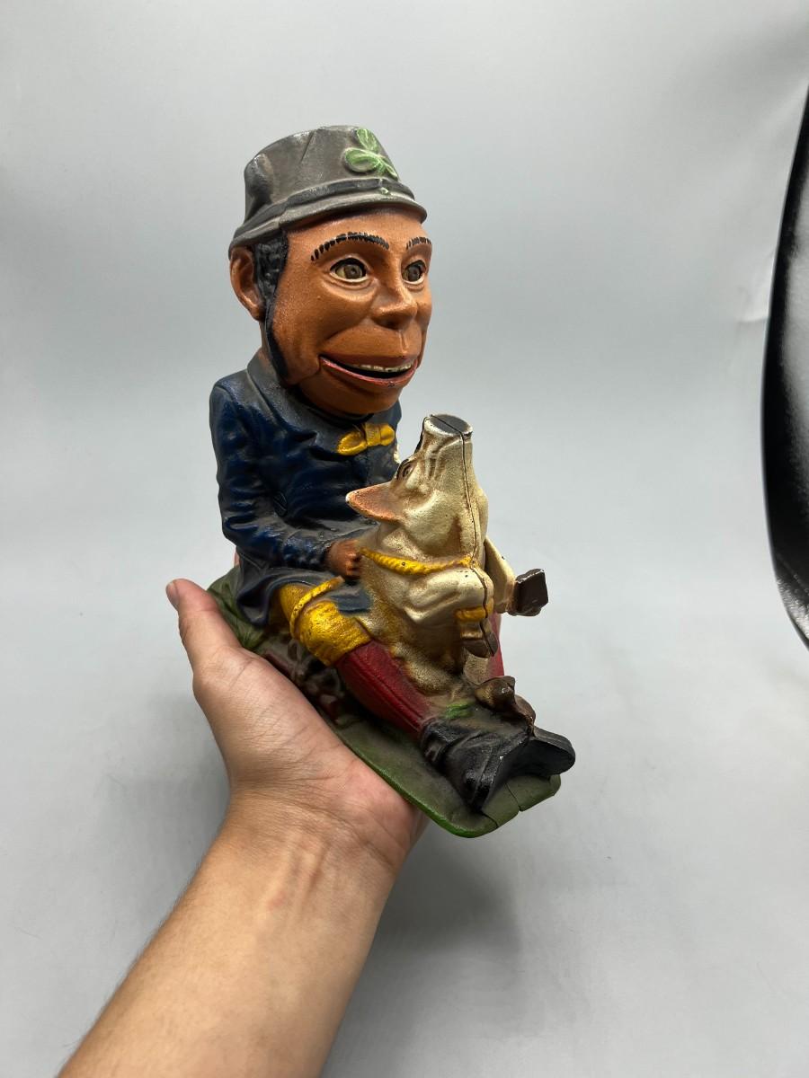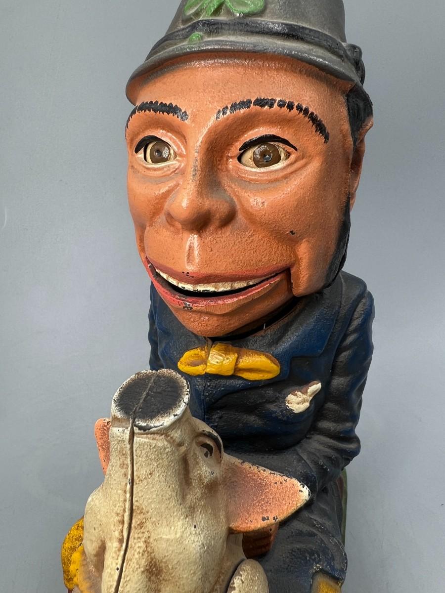 Vintage Reproduction Cast Metal Coin Bank Paddy & Pig Mechanical Book of Knowledge