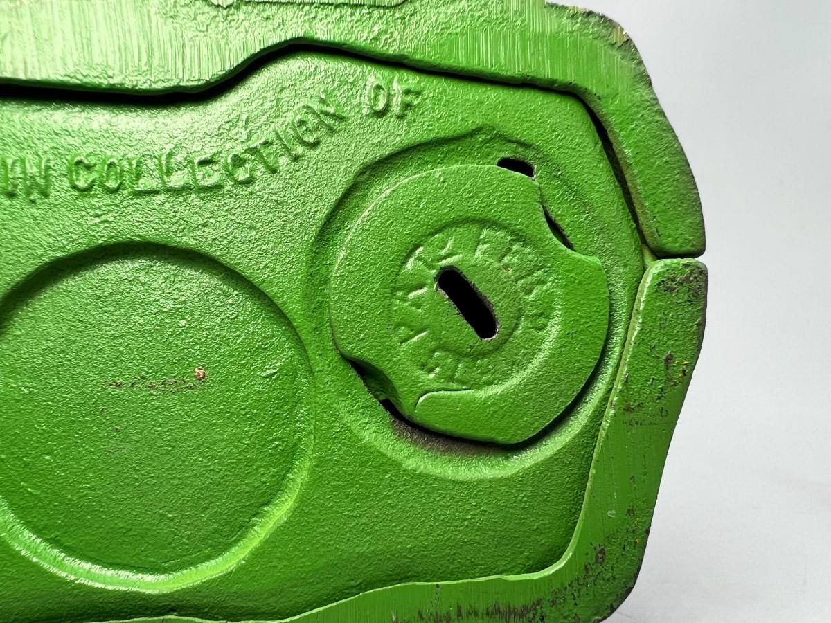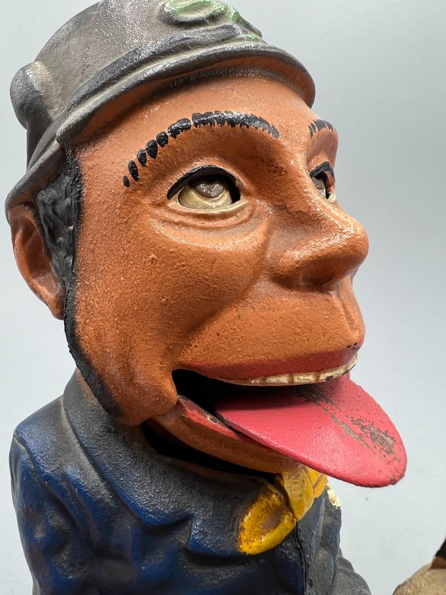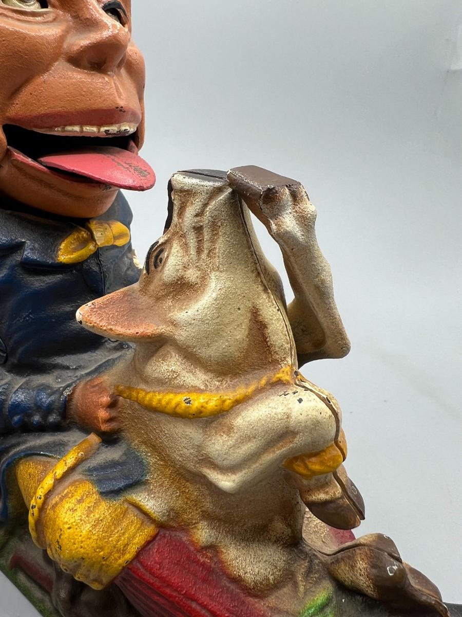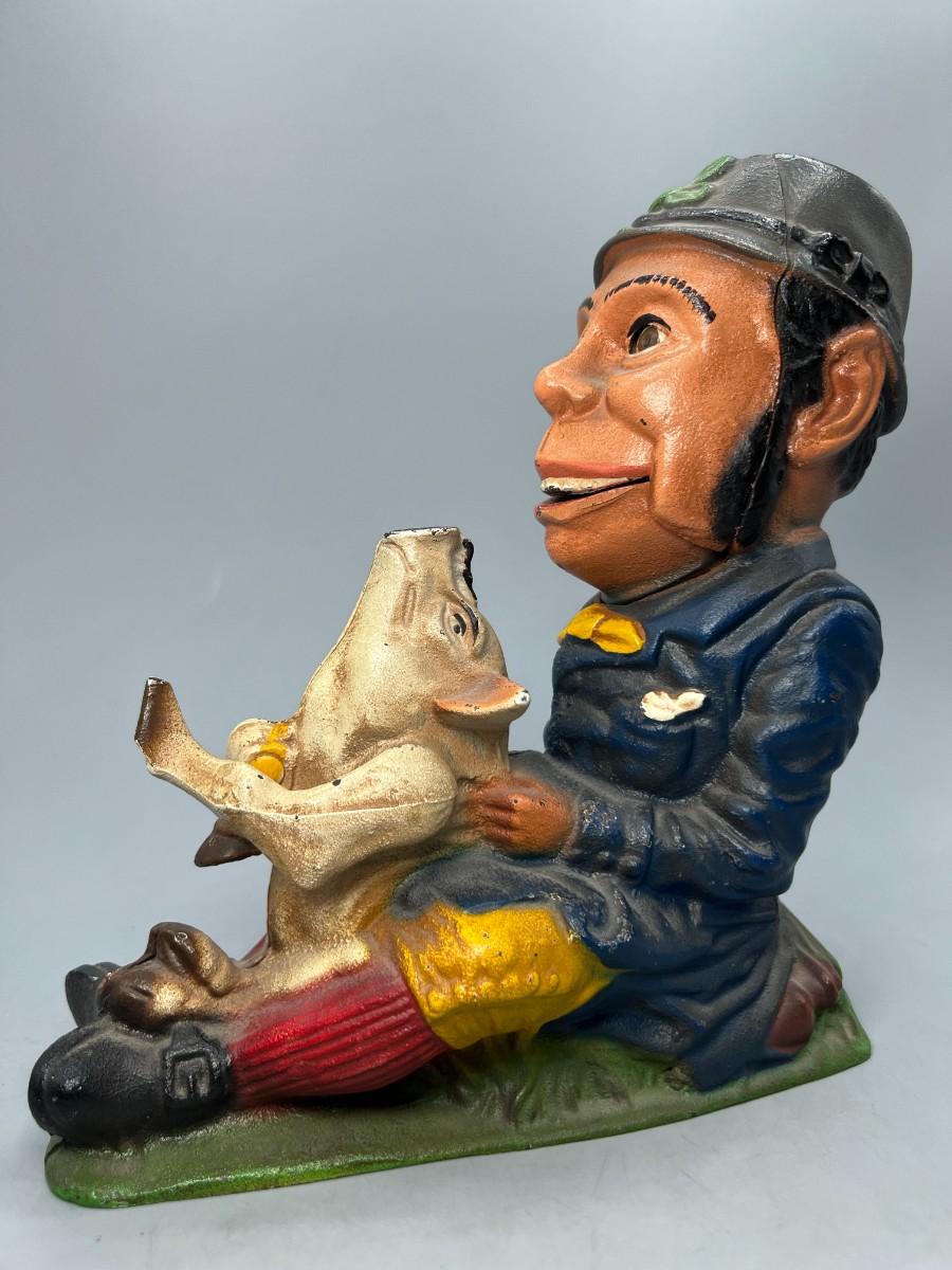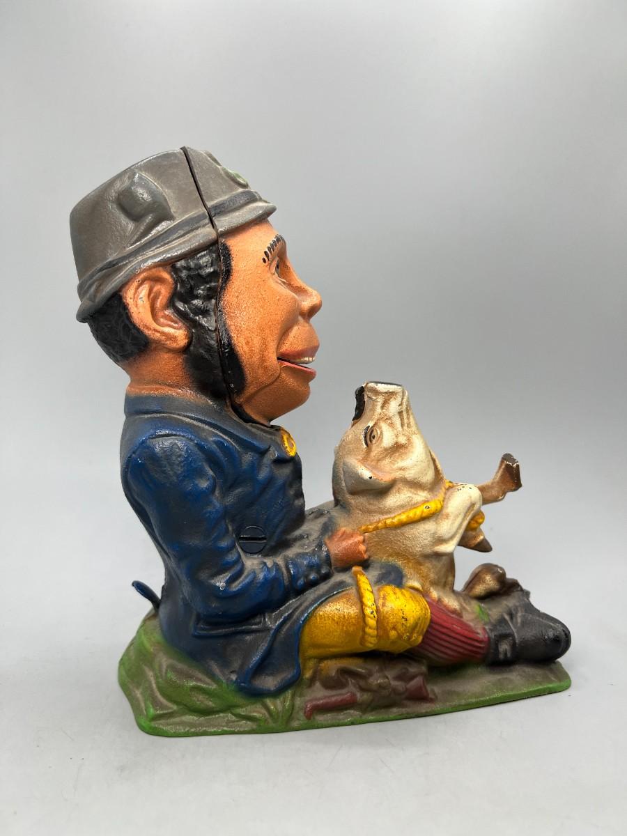 Vintage Reproduction Cast Metal Coin Bank Paddy & Pig Mechanical Book of Knowledge