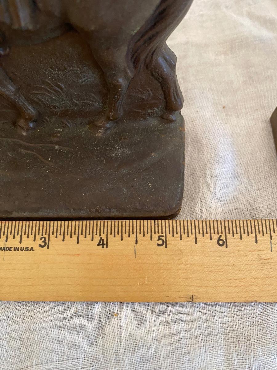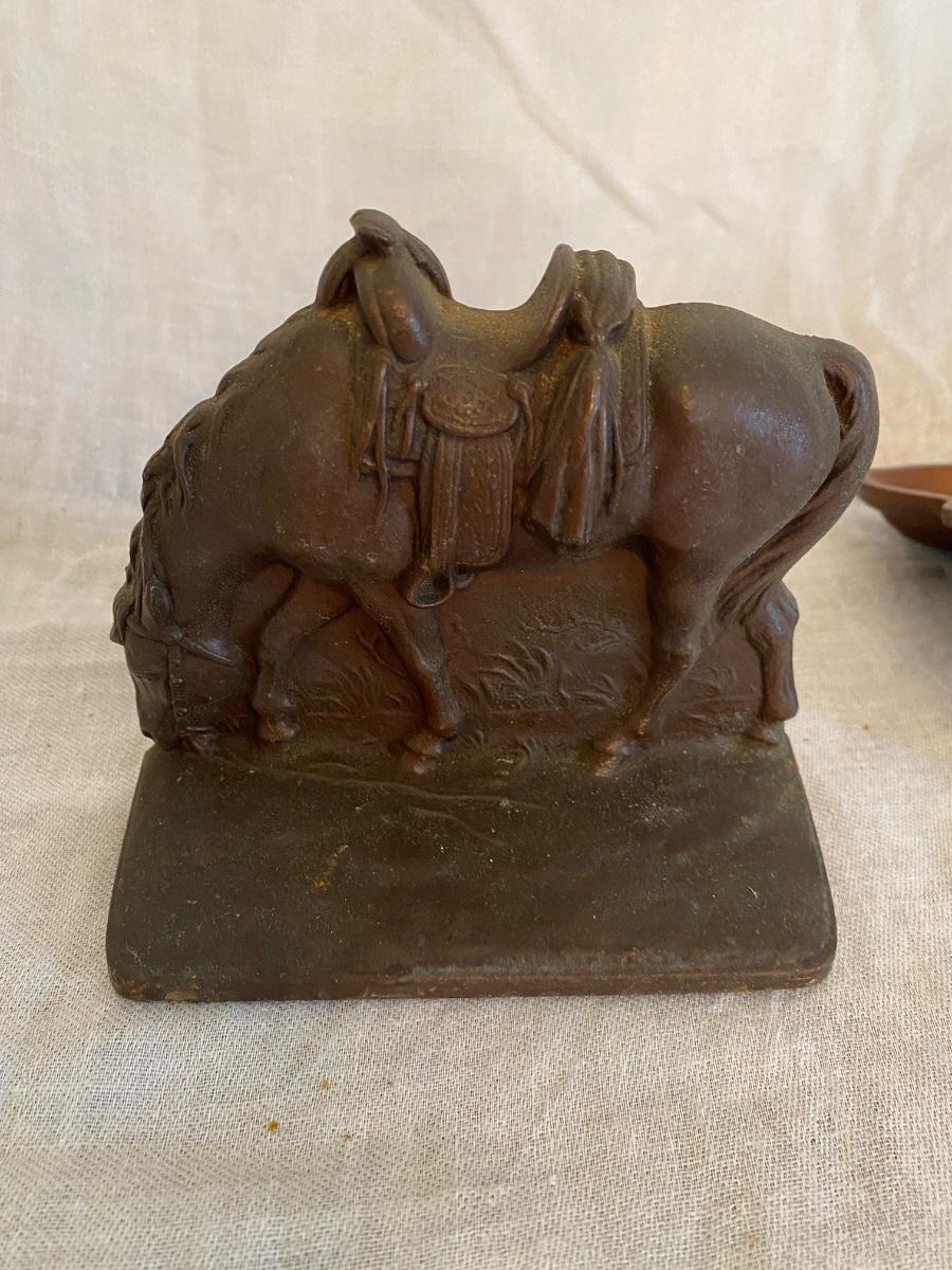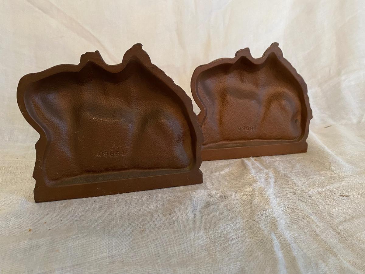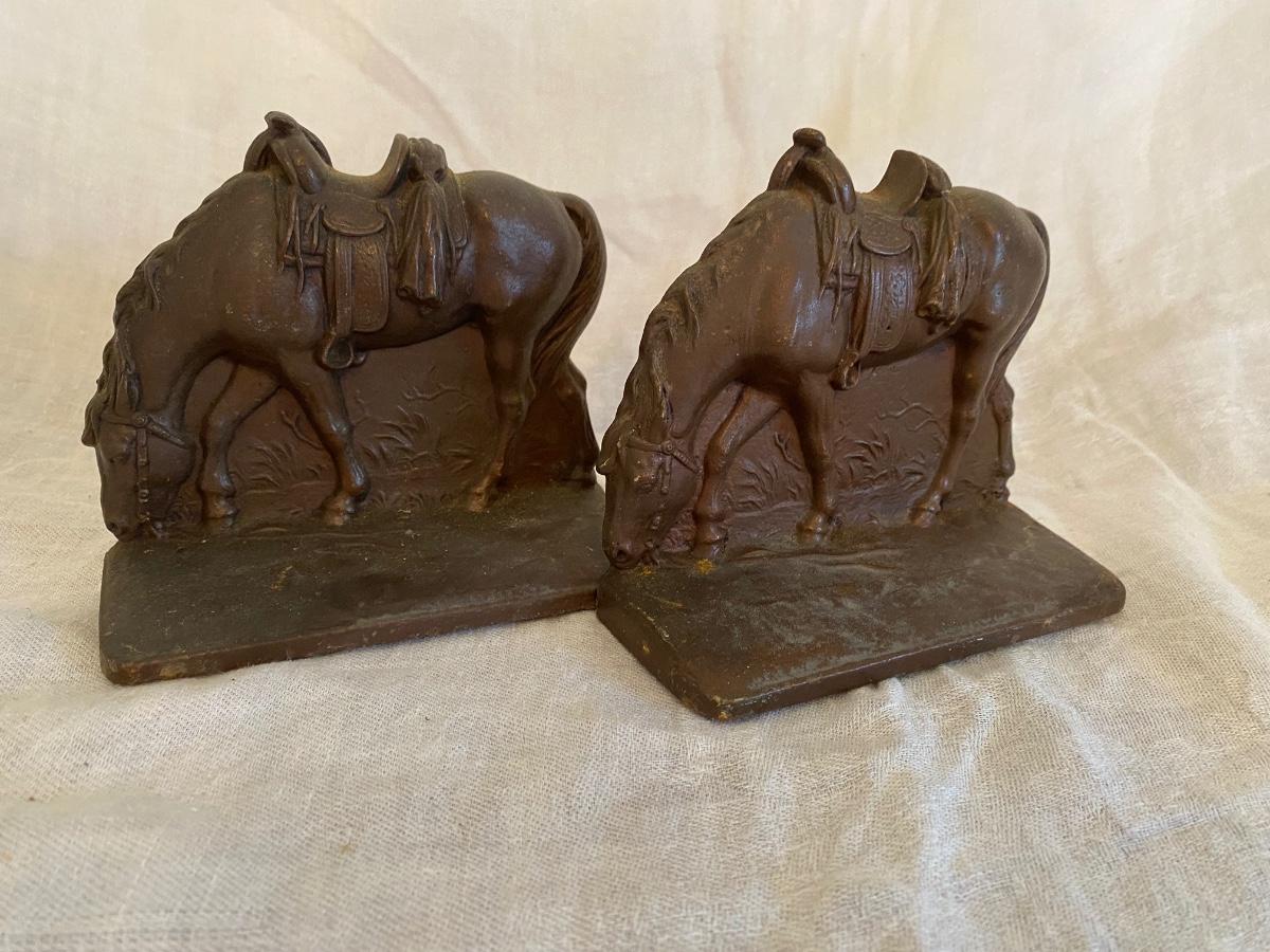 Vintage Cast Metal Grazing Horse Bookends Equestrian. They measure approximately 5.25 inches wide and 4.5 inches high. Great for any horse lover.