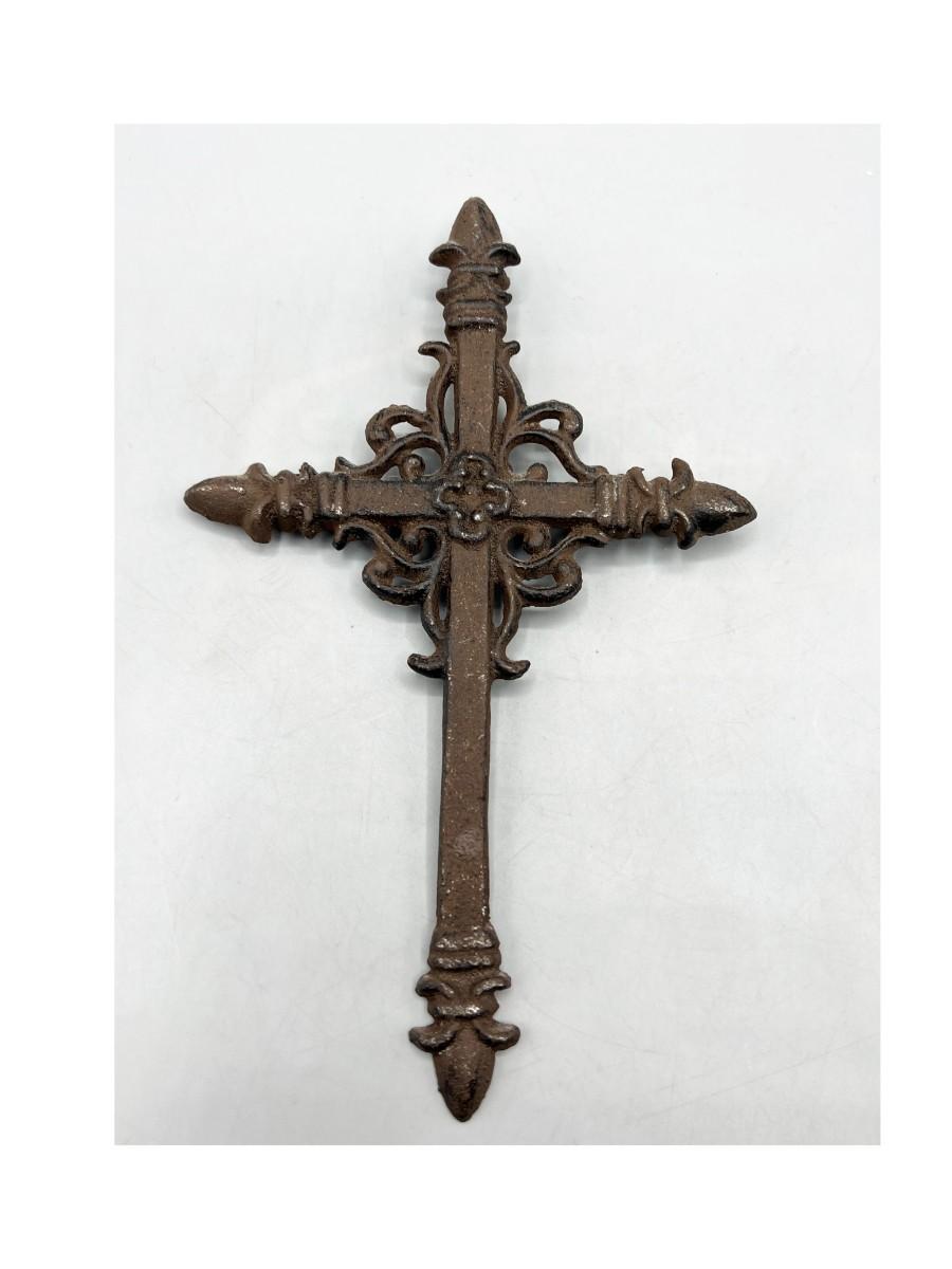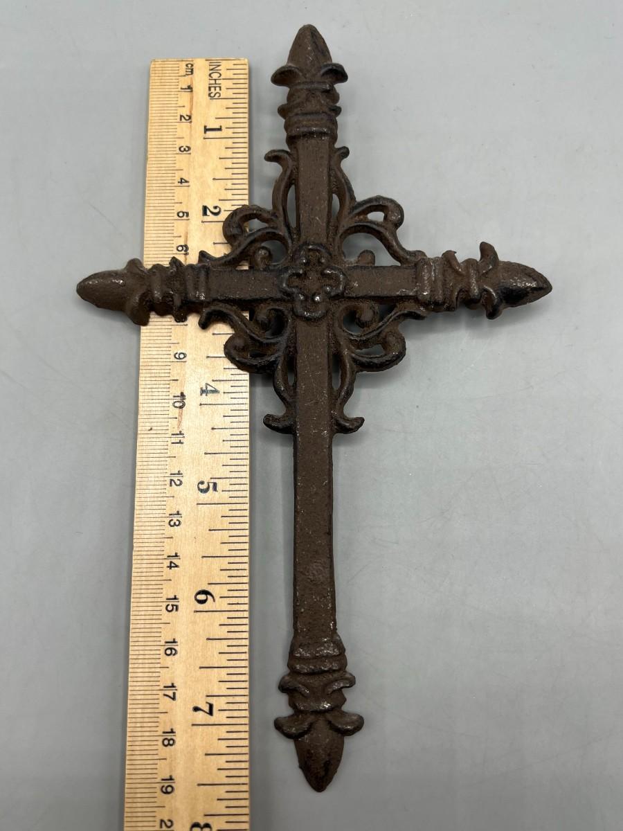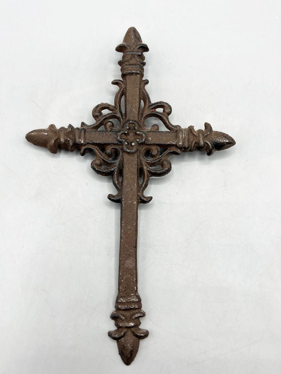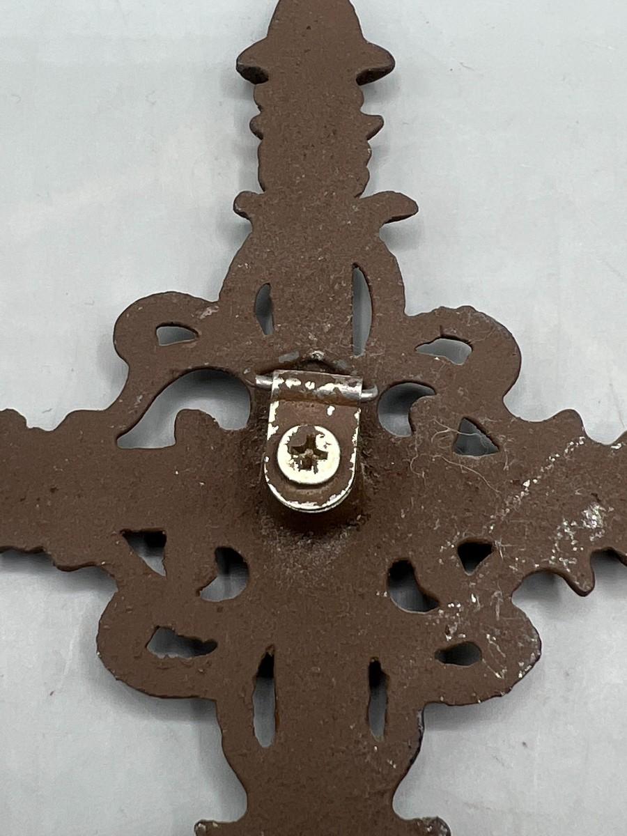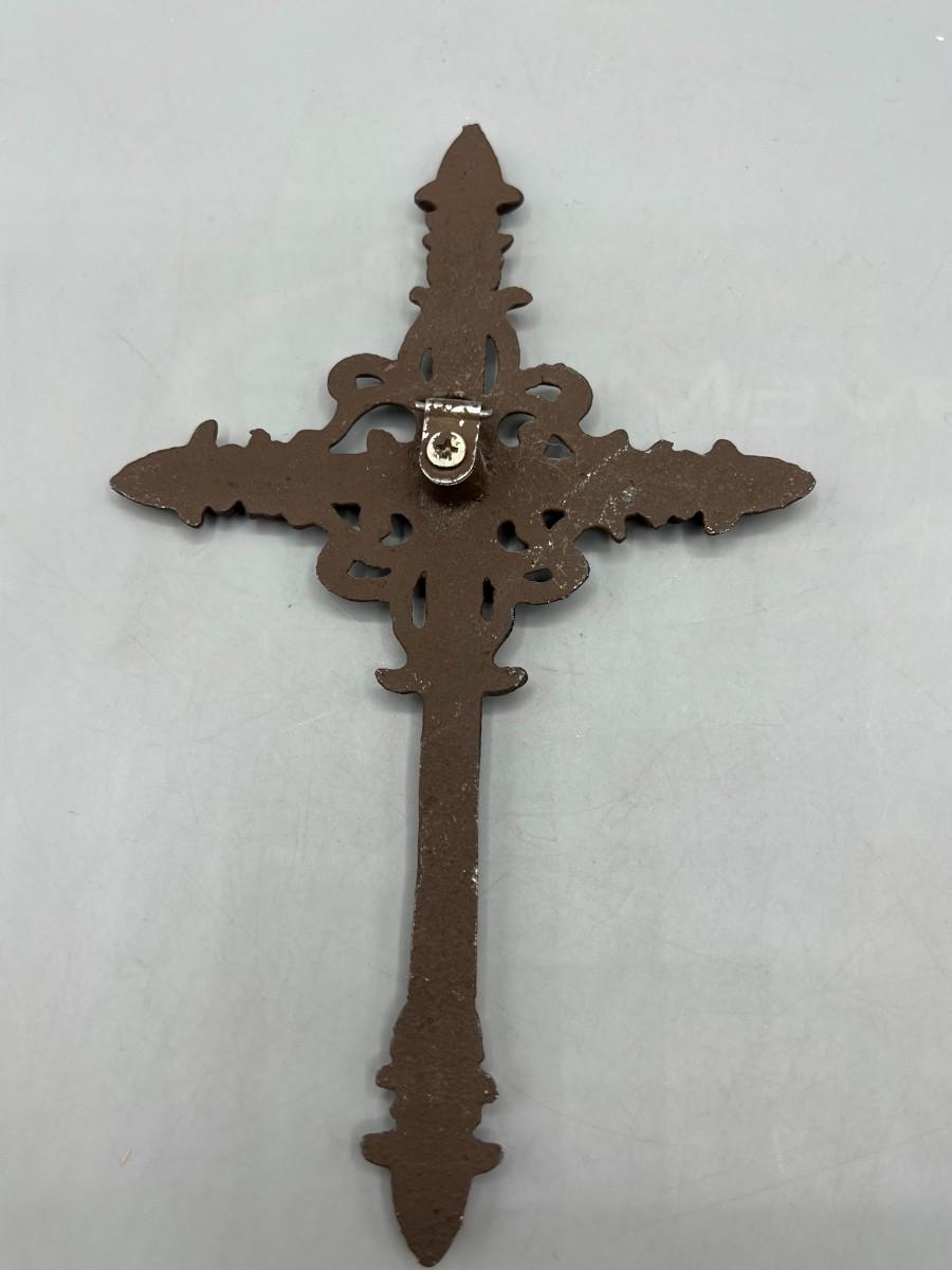 Vintage Cast Metal Hanging Wall Cross. About 7" size.