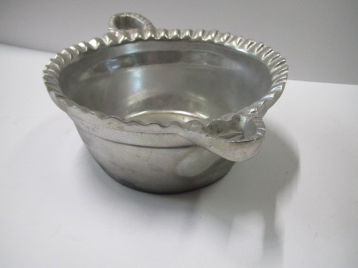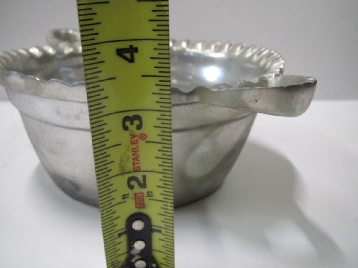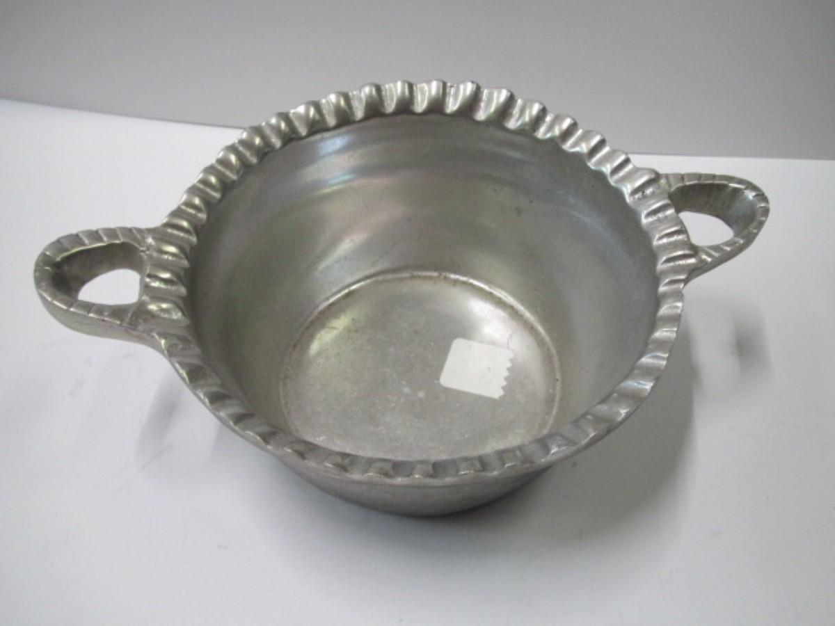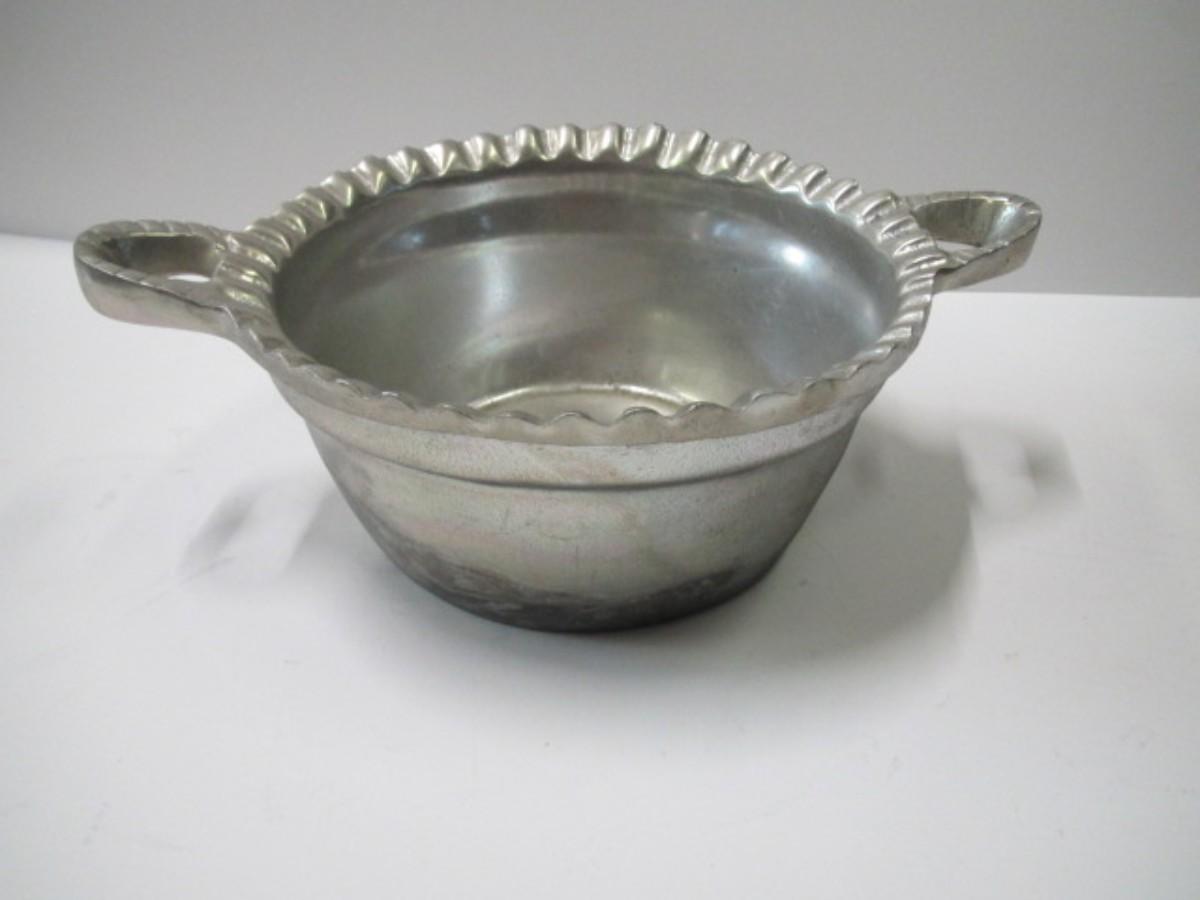 Vintage Casted Aluminum Armetale Basket Style Bowl With Handles Pie Crust Rim