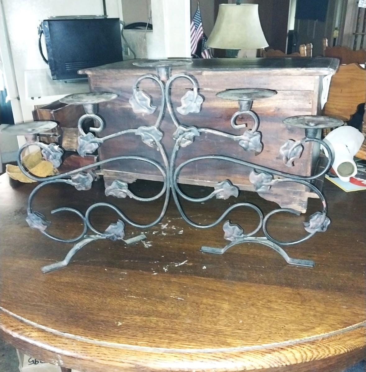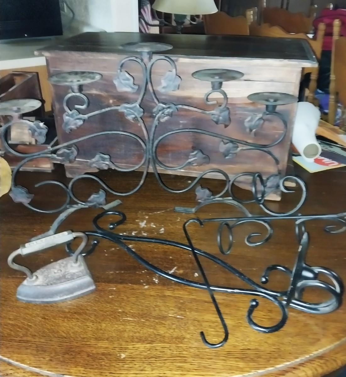 VINTAGE CASTIRON CLOTHES IRON- CANDELBRELLA-SINGLE CANDLE HOLDER