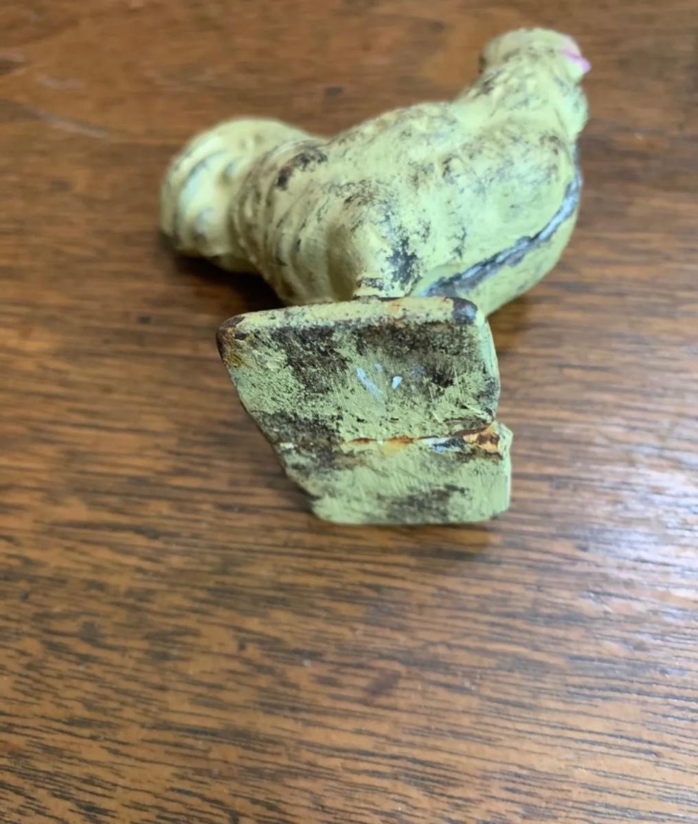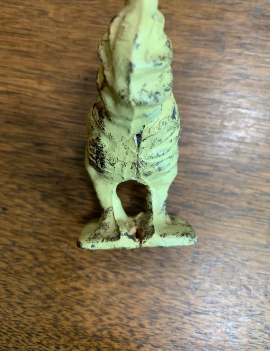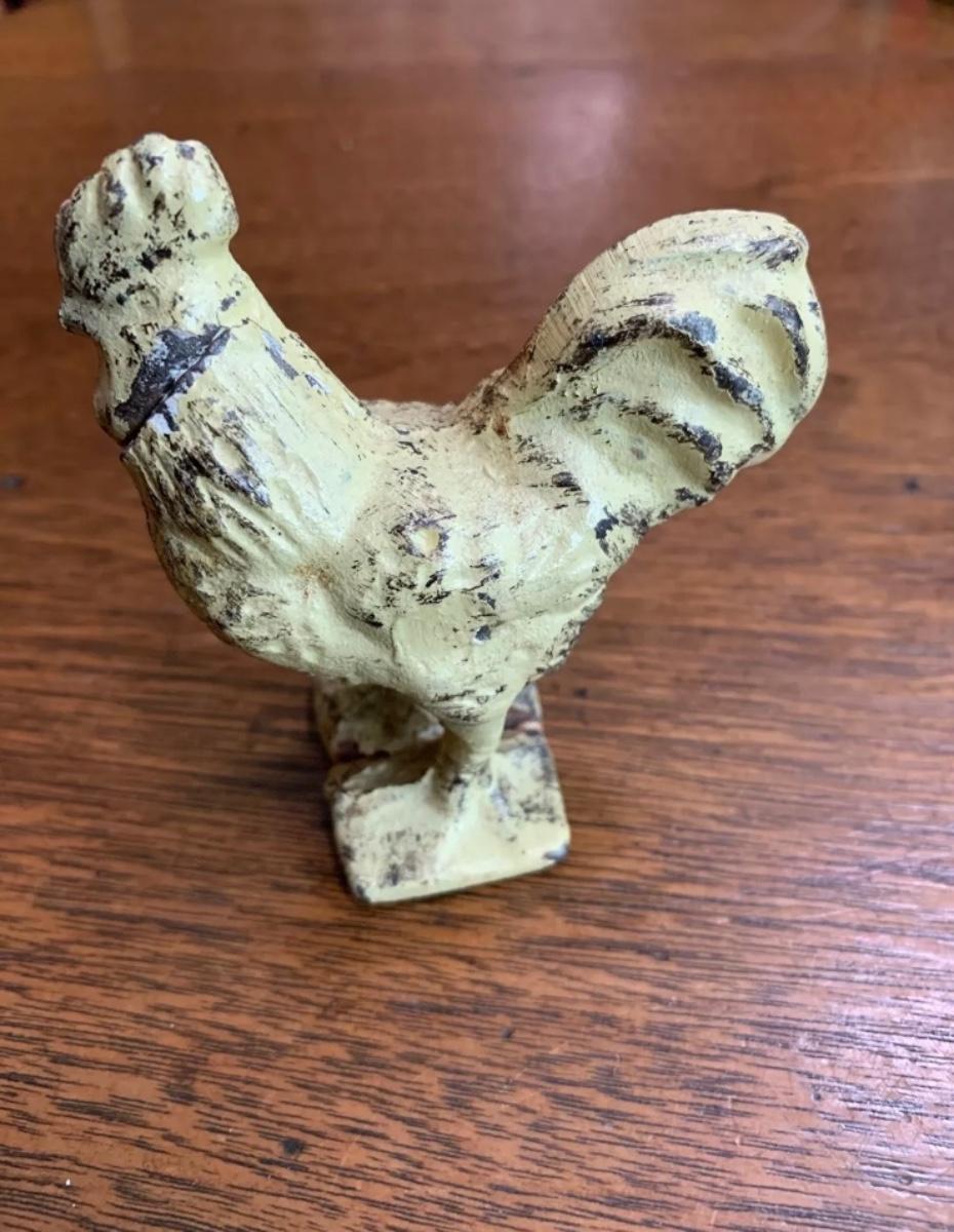 Vintage yellow rustic cast iron rooster figurine, 3 3/8” T