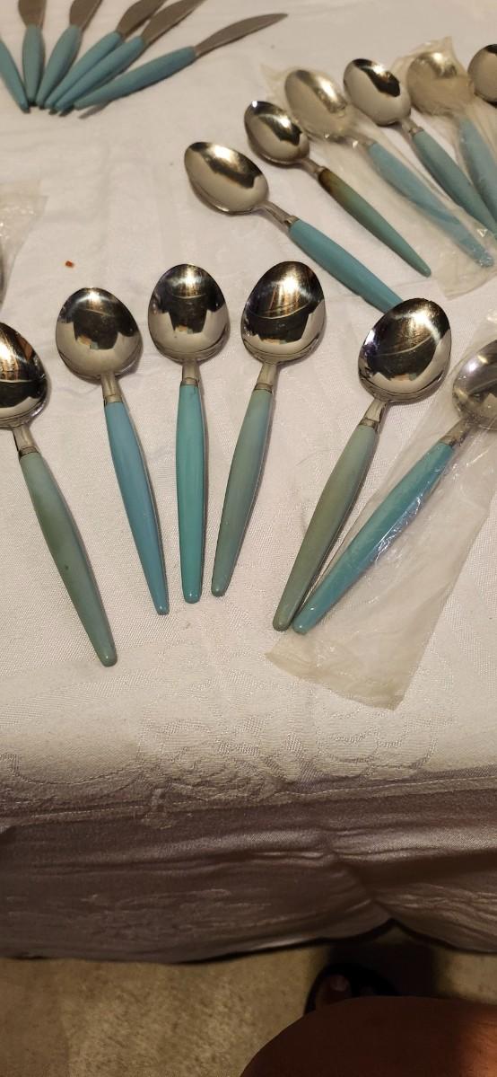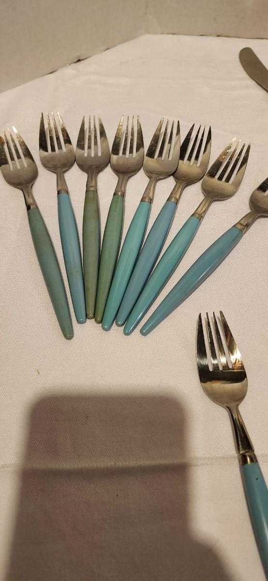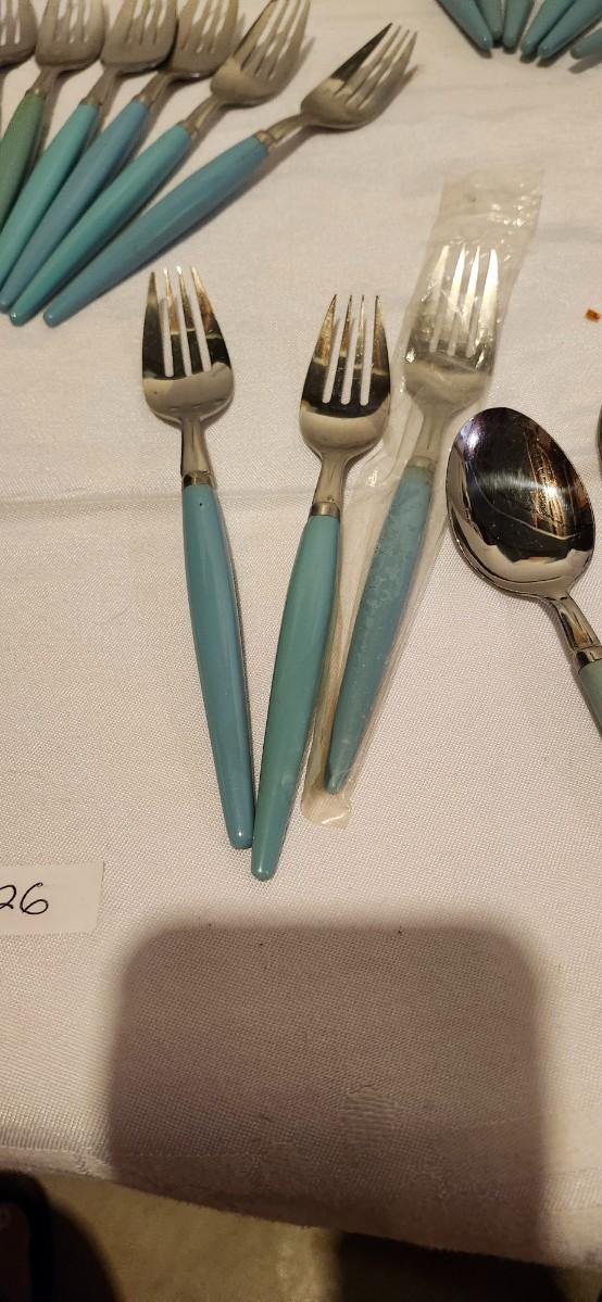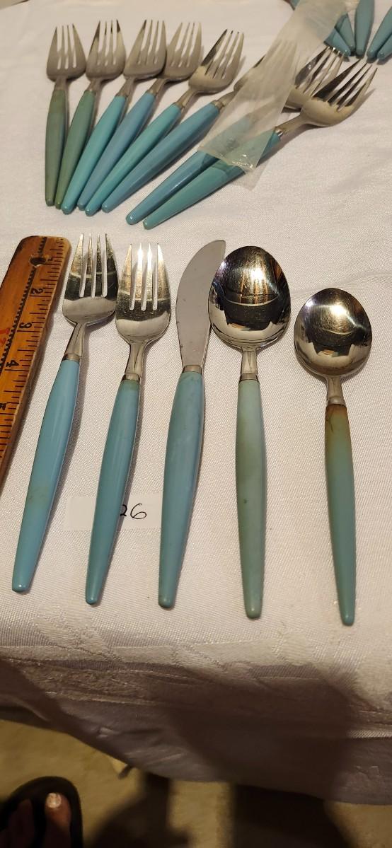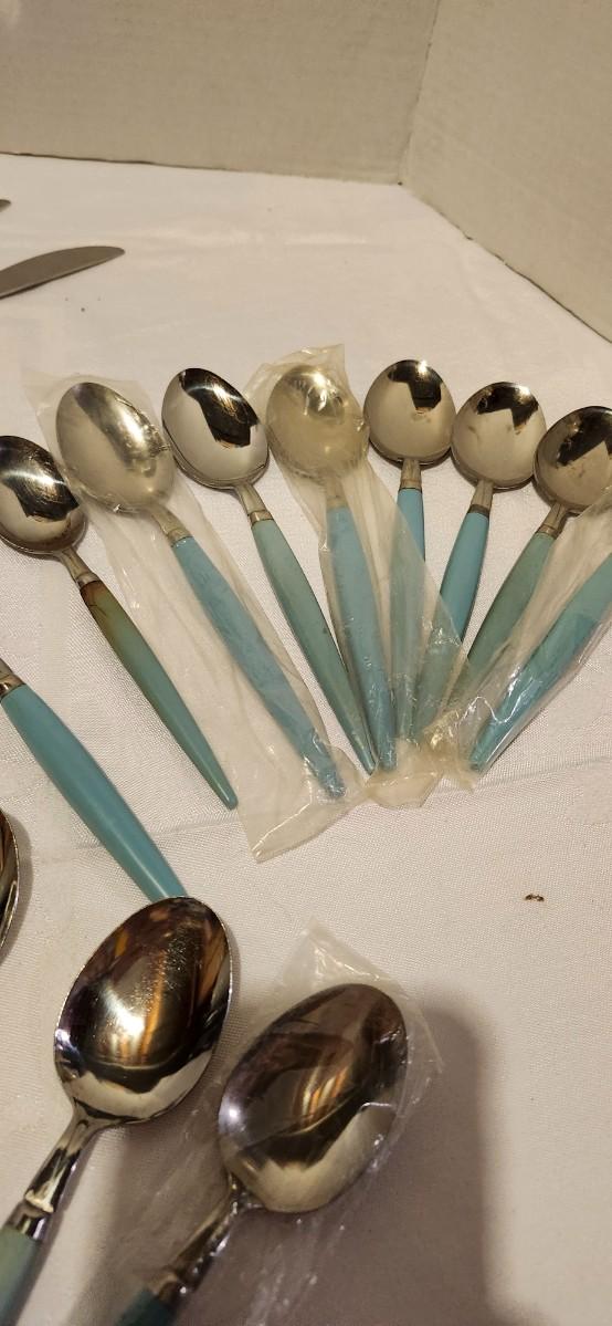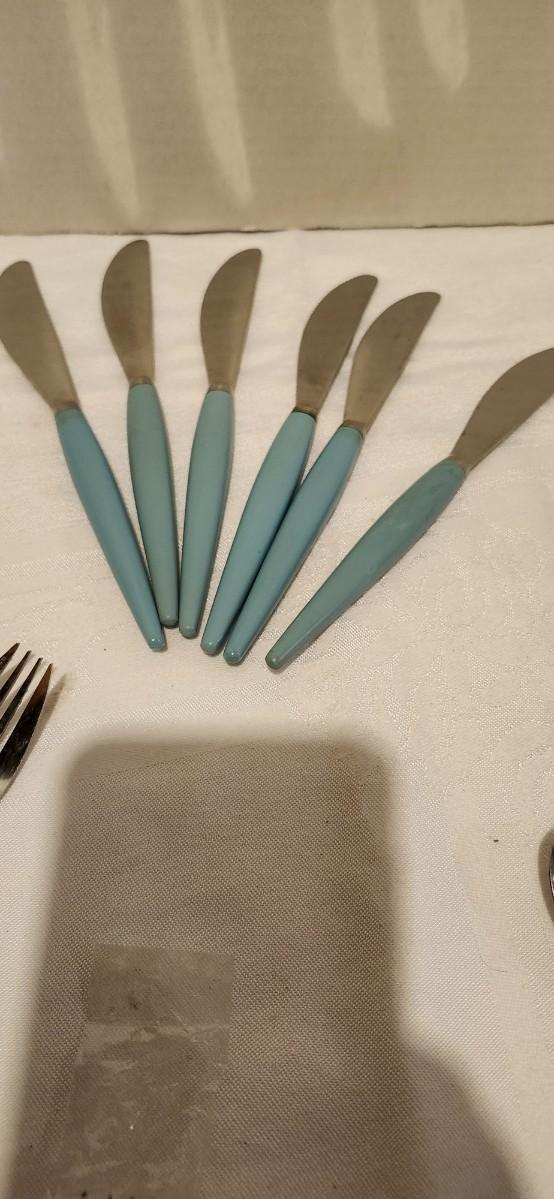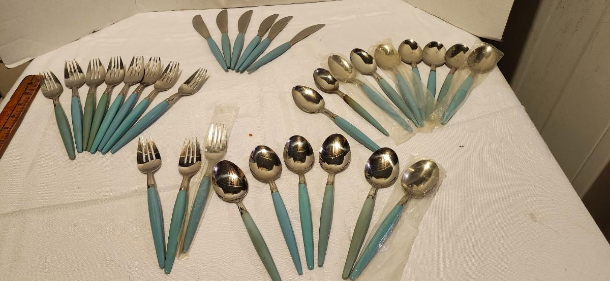 Vintage Castle Stainless Steel Japan Turquoise Handle Flatware Pieces Mixed Lot