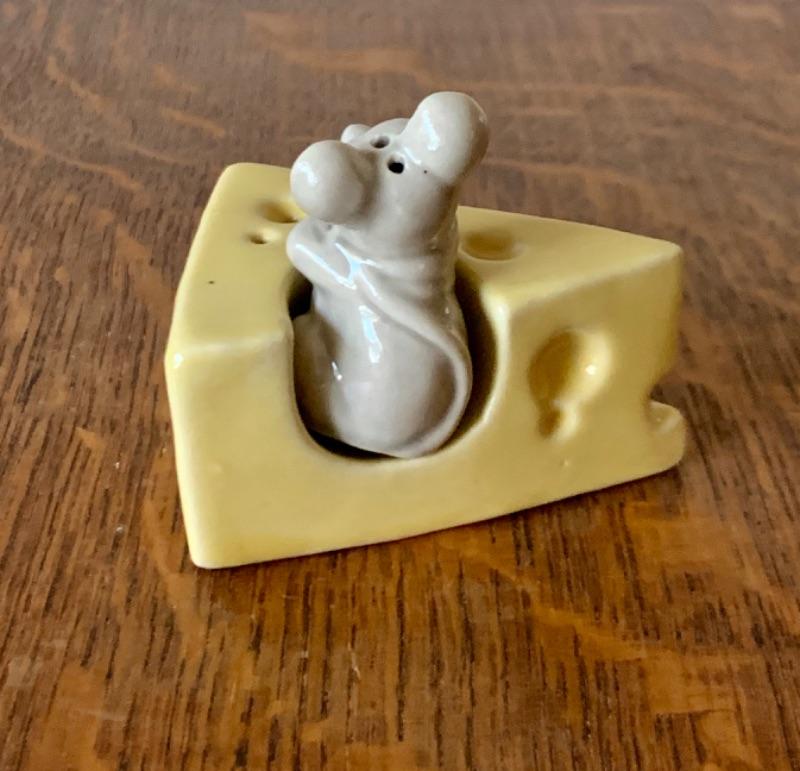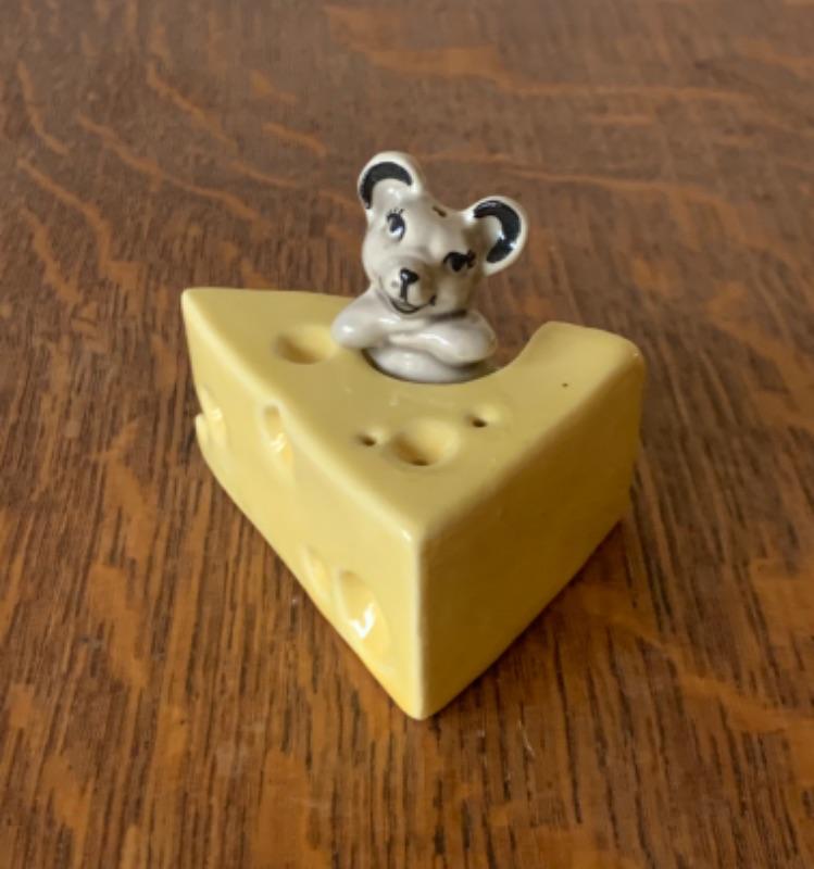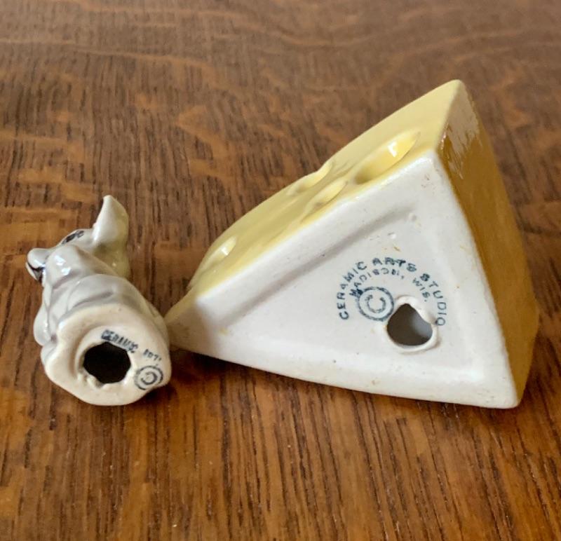 Cheese wedge with mouse, by Ceramic Arts Studio. Measures 2 1/2”. No crazing.