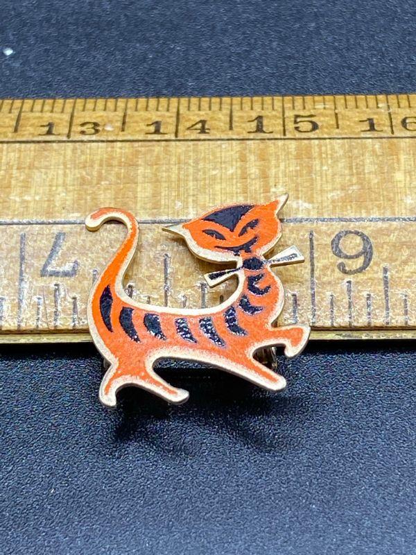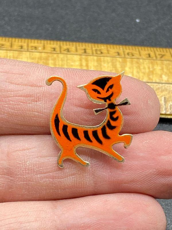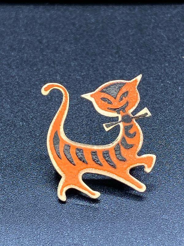 Vintage cat pin. Orange and black enamel on goldtone metal. Unbranded. Good condition.