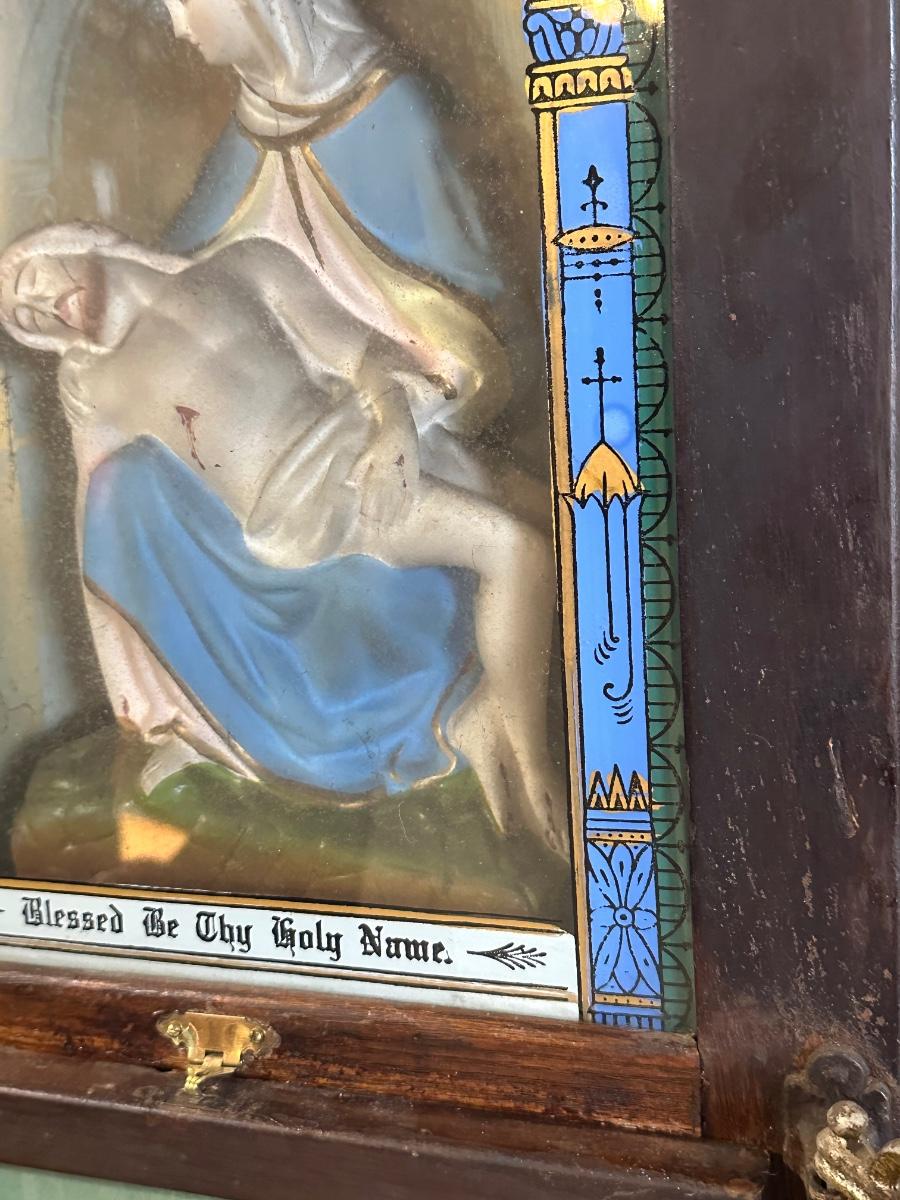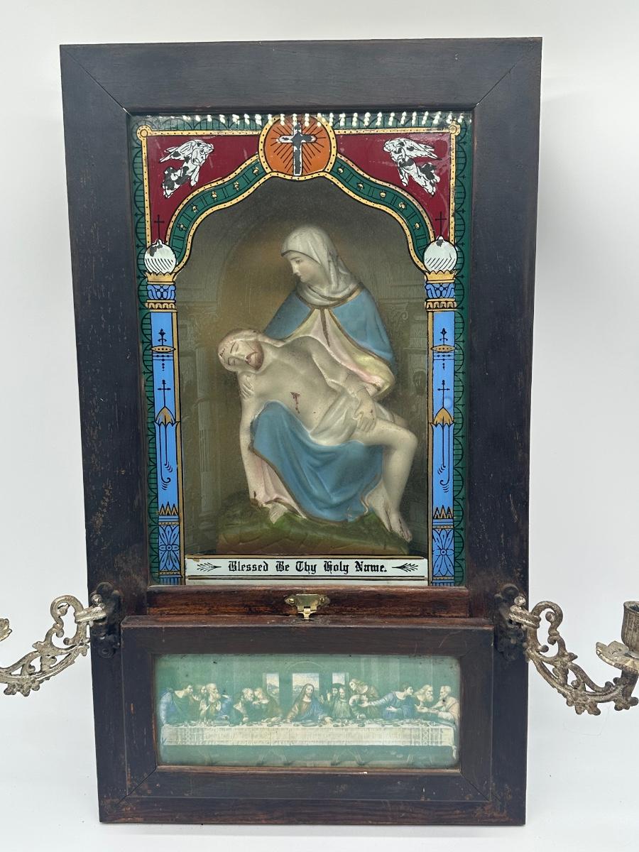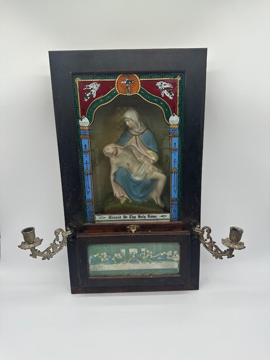 Vintage Catholic Devotional Wall Shrine – Pietà & Last Supper Shadow Box