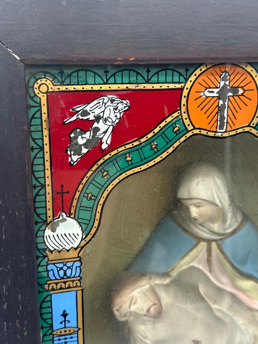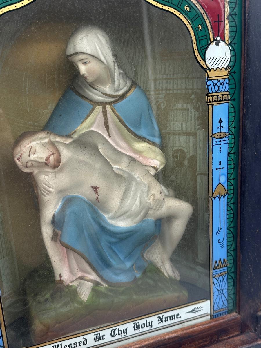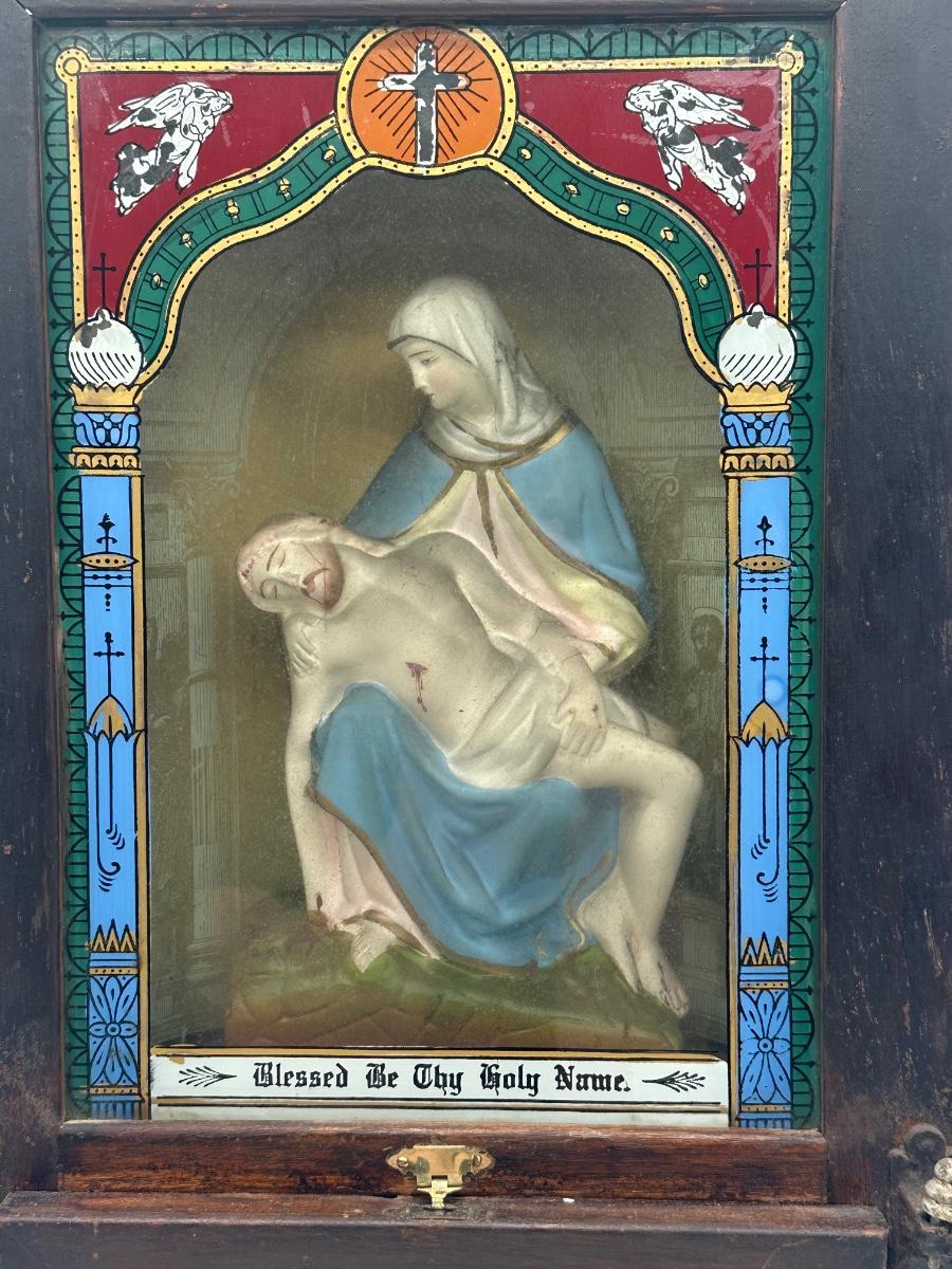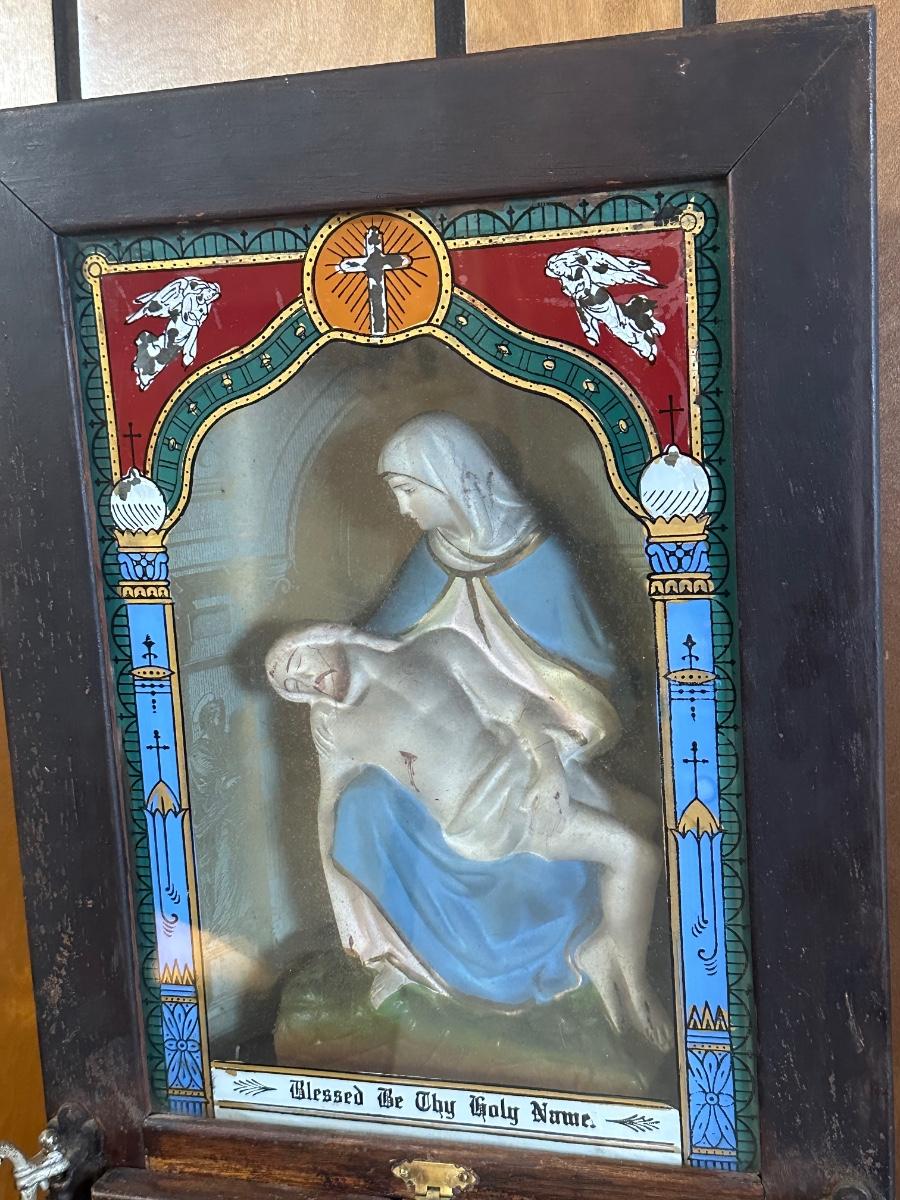 Vintage Catholic Devotional Wall Shrine – Pietà & Last Supper Shadow Box