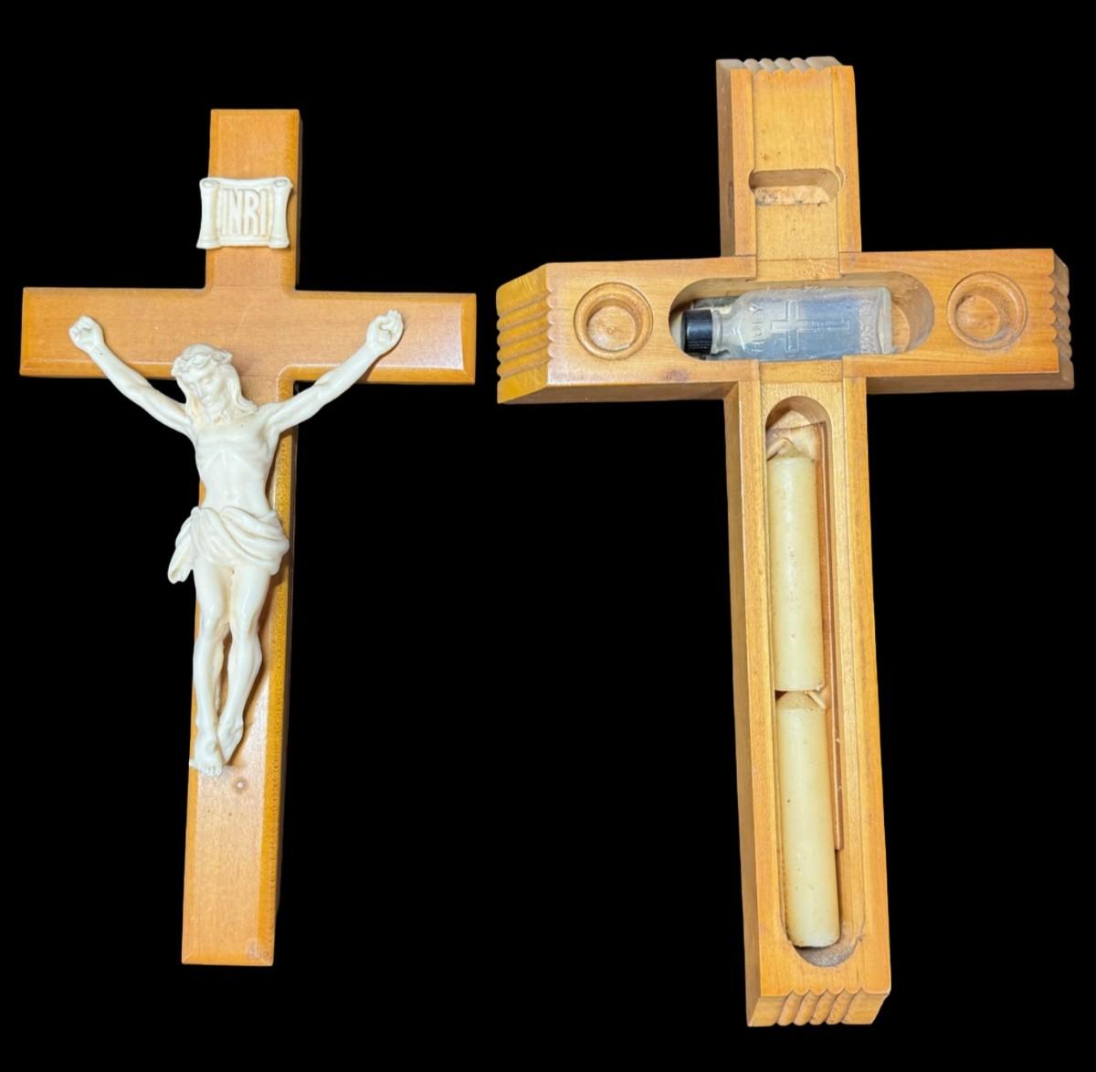Vintage Catholic Wall Crucifix/Sick Call Kit