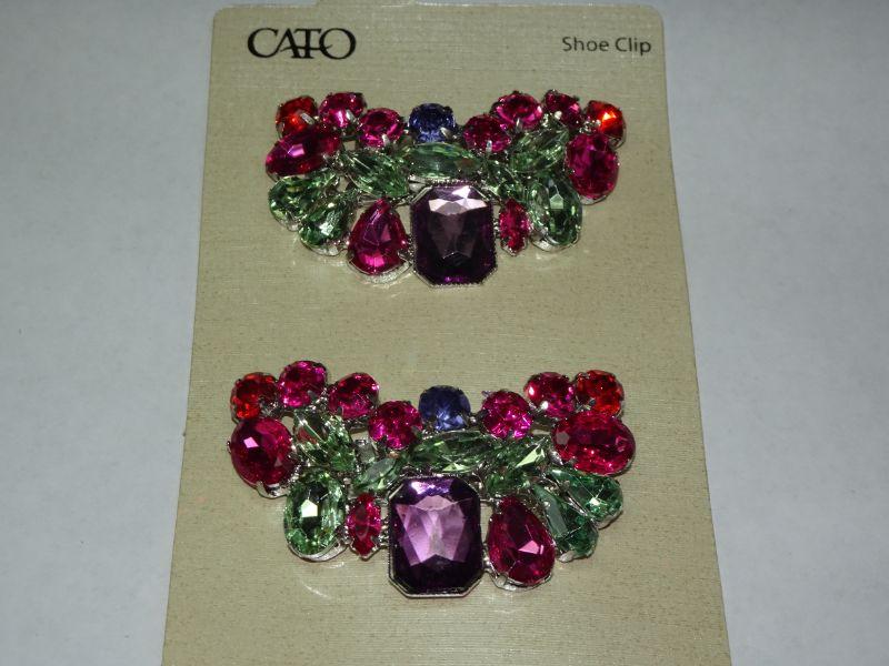 Vintage CATO Rhinestone Shoe Clips, Pinks & Greens