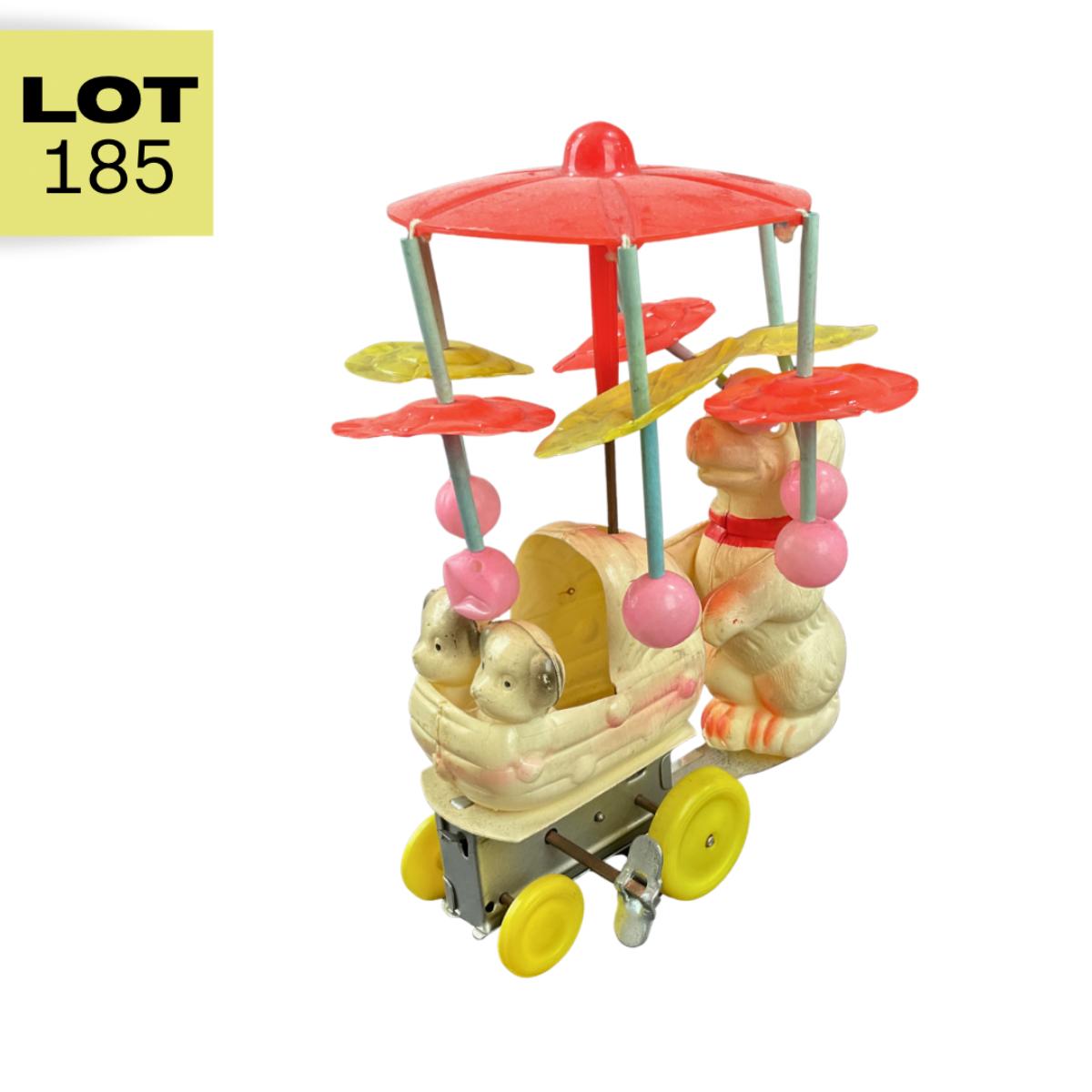 Vintage Celluloid and Tin | Poodle Pushing Carriage