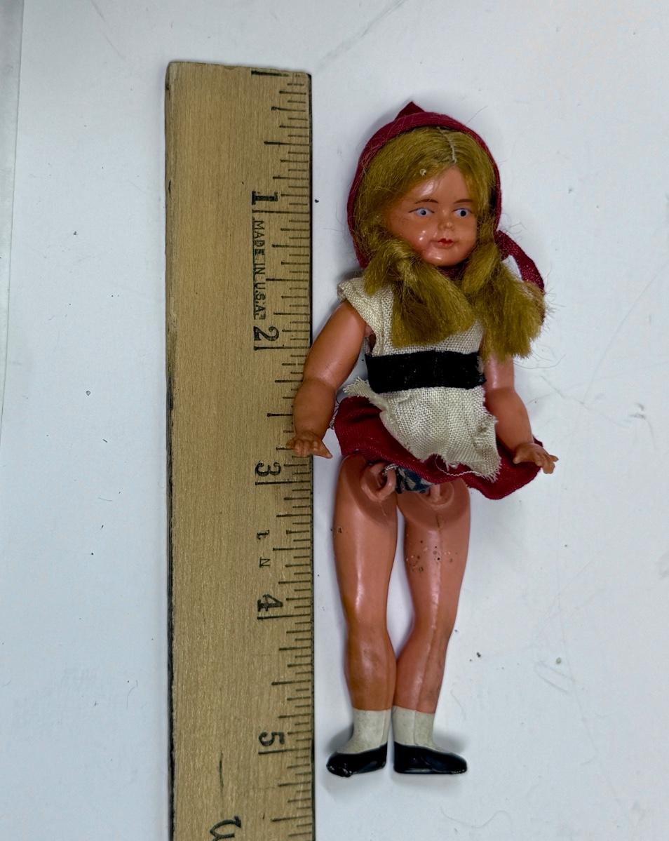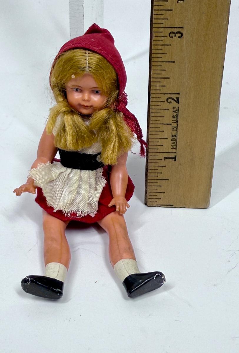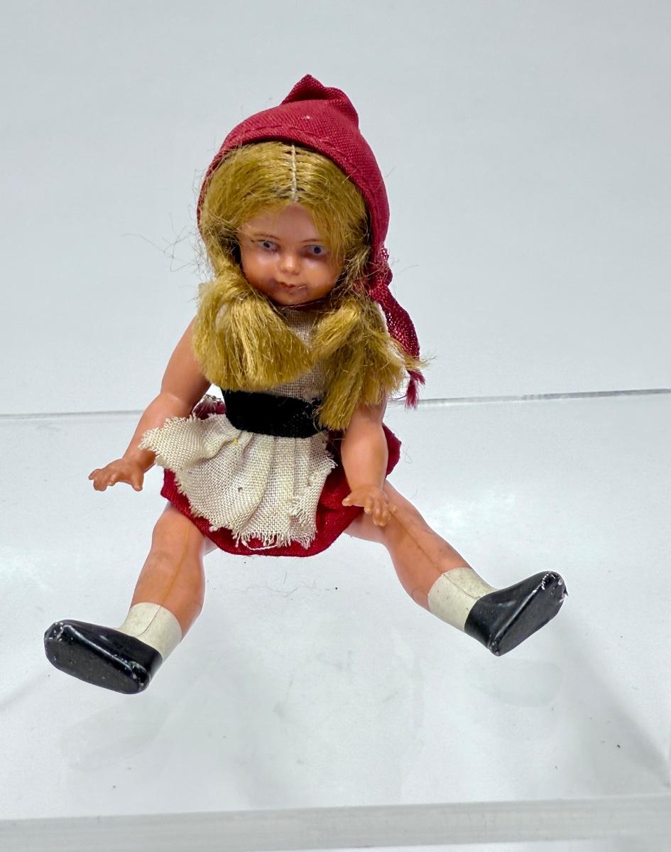 Vintage Celluloid Doll Dollhouse Little Red Riding Hood Jointed Articulated