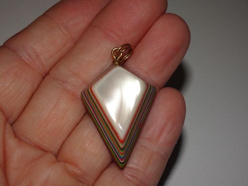 Vintage Celluloid or Resin Rainbow Layered Pendant