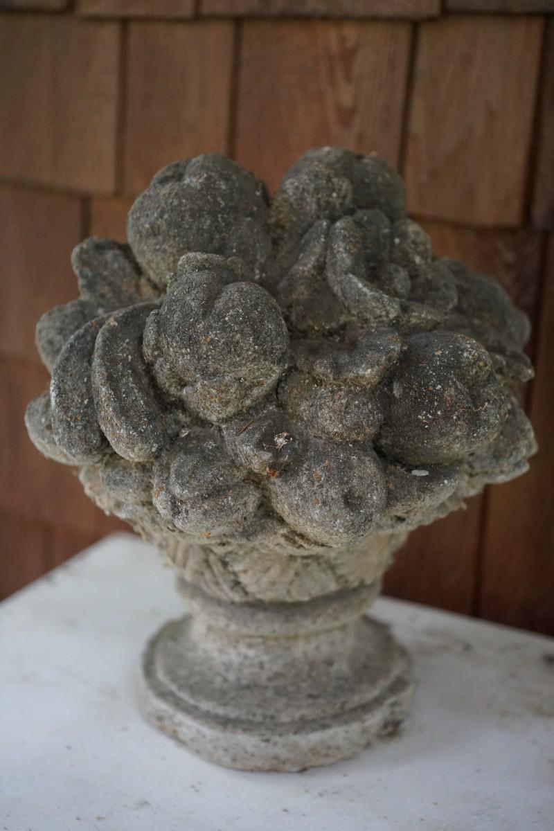 VINTAGE CEMENT GARDEN DECOR OF BASKET OF FRUIT