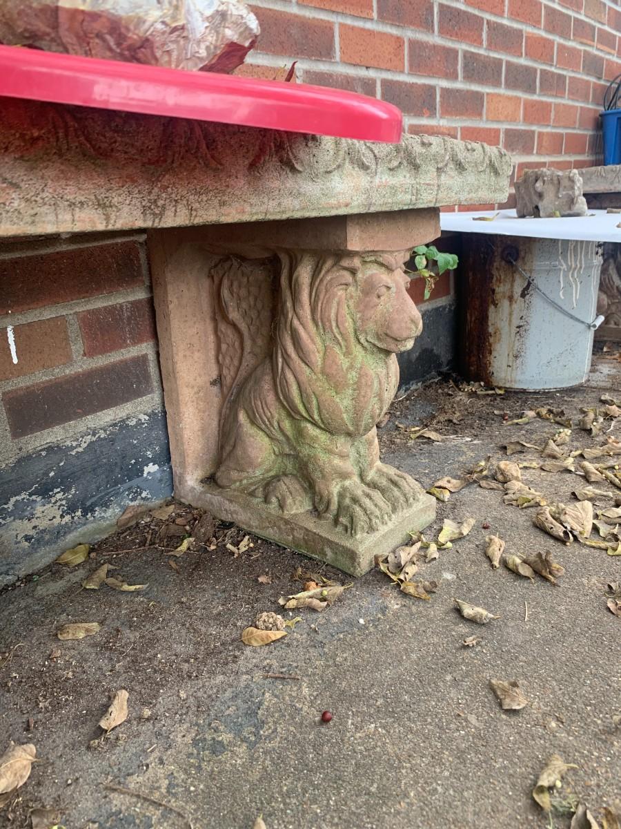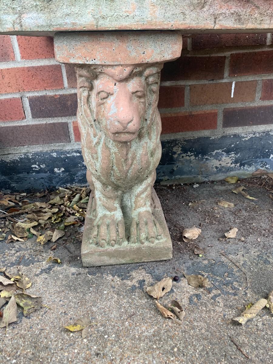 This is a really nice vintage cement bench with lion legs. the bench is in very good vintage condition.