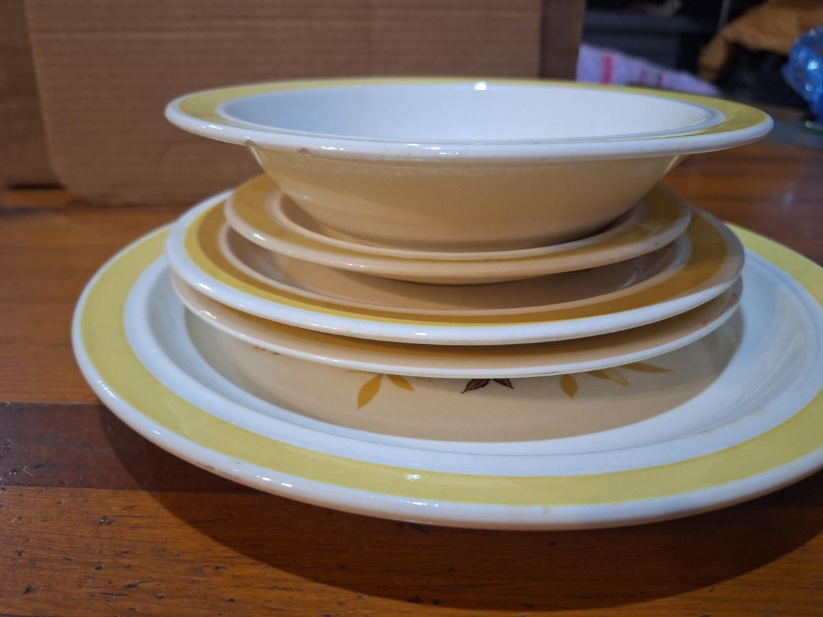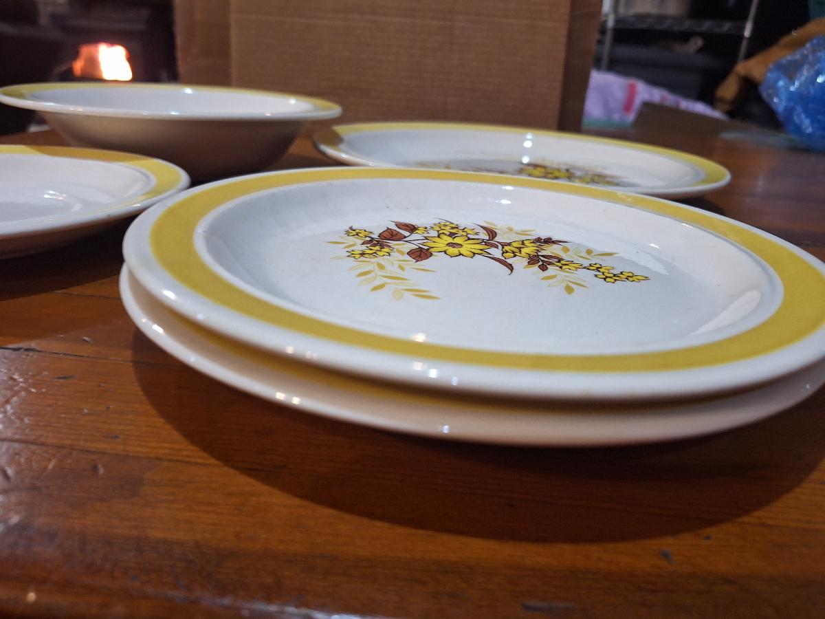 vintage cera stone plates, similar to mikasa but only marked USA on the back.