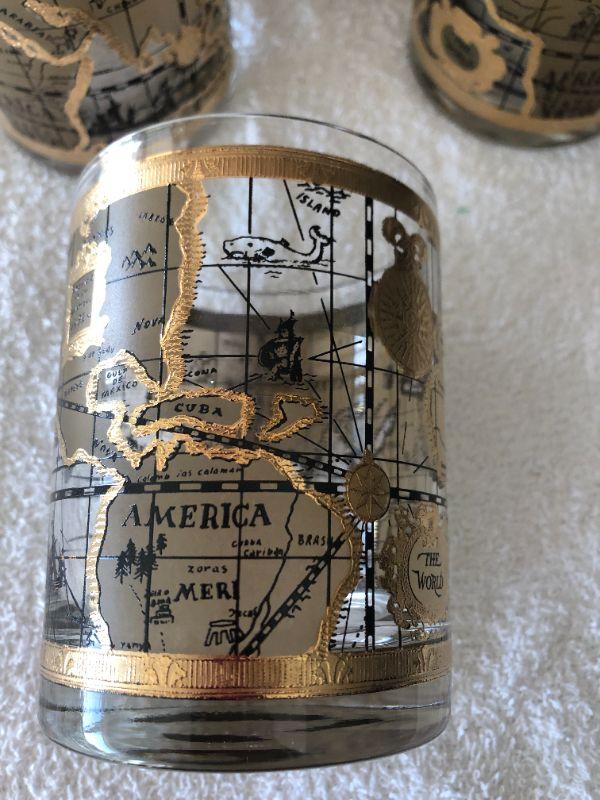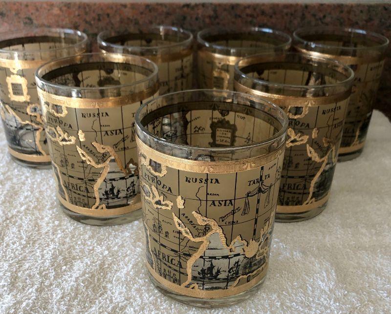 Vintage Cera World Map Old Fashioned 7 Glasses YD# 022-0187