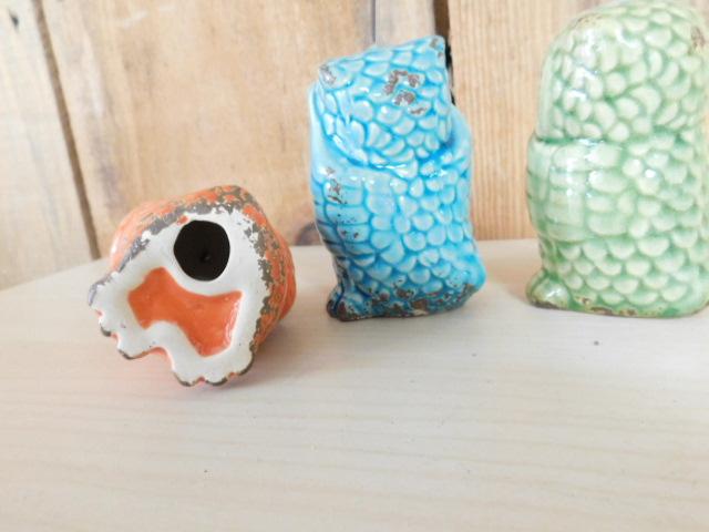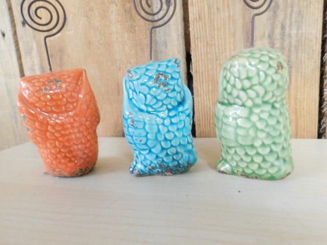 Vintage Ceramic 3 Wise Owls See No, Hear No, and Speak No Evil 6" they have wear to the finish as shown but does not detract from what they are.