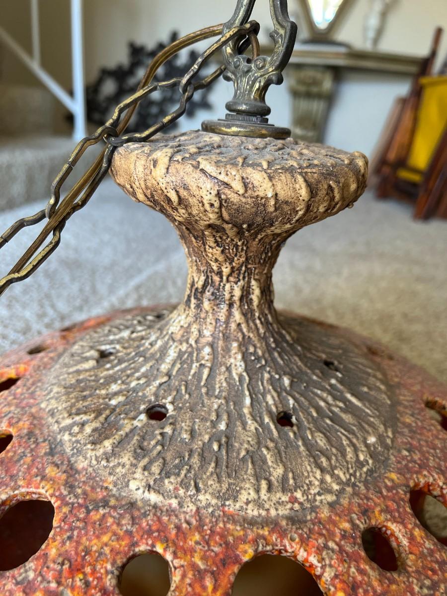 Vintage Ceramic Art Orange Stemmed Textured Design Swag Hanging Chain Lamp