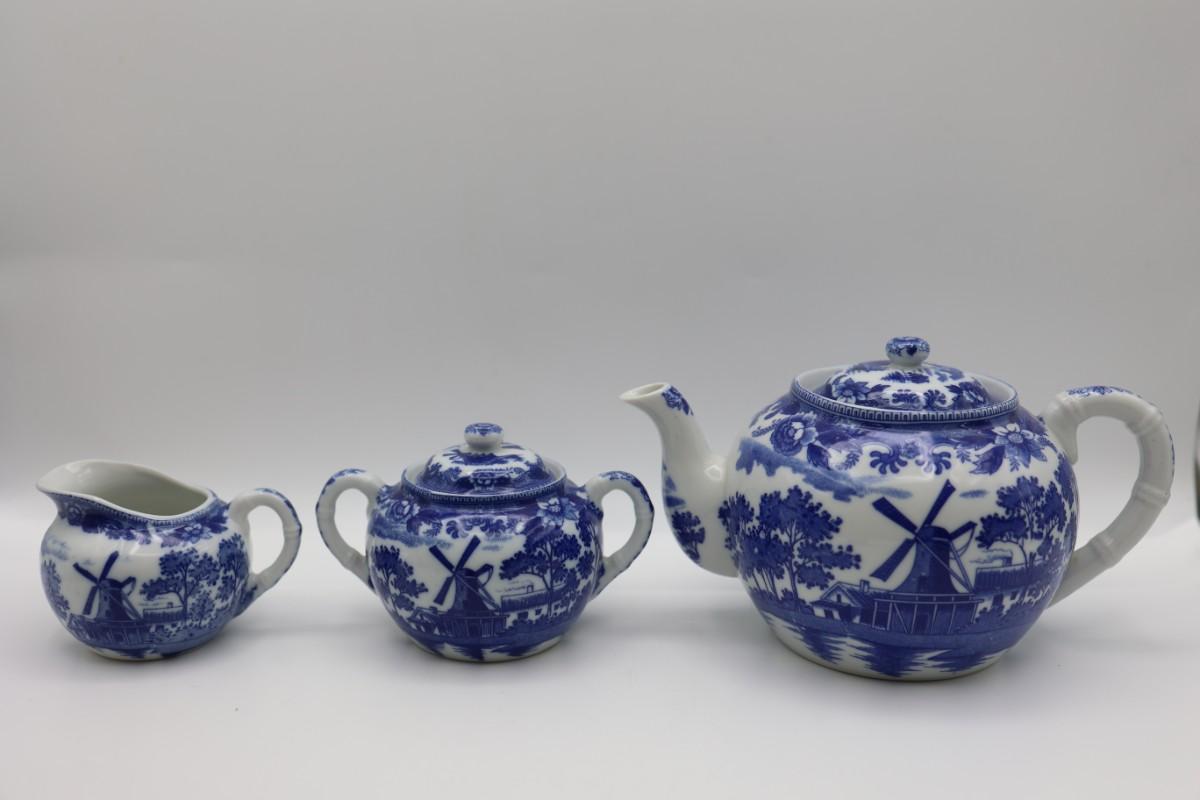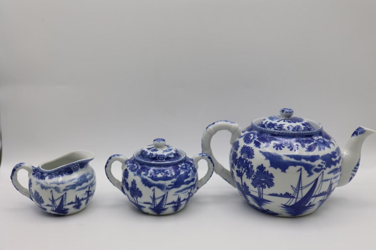 Vintage Asian Ceramic Hand Painted Teapot, Sugar and Creamer