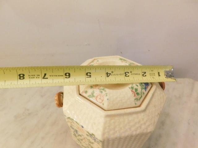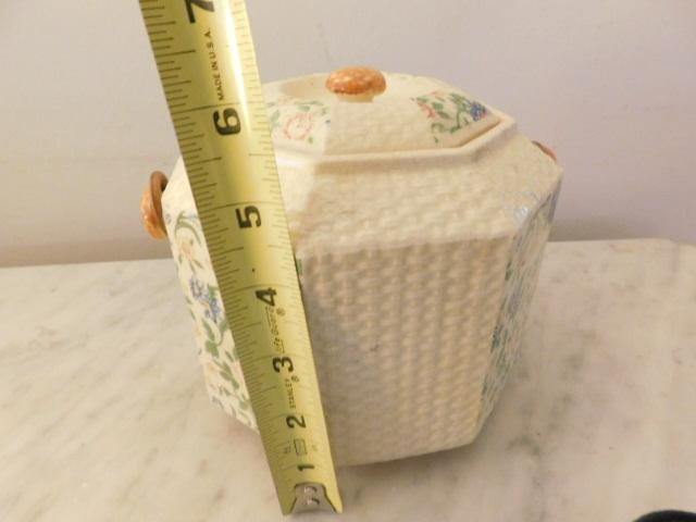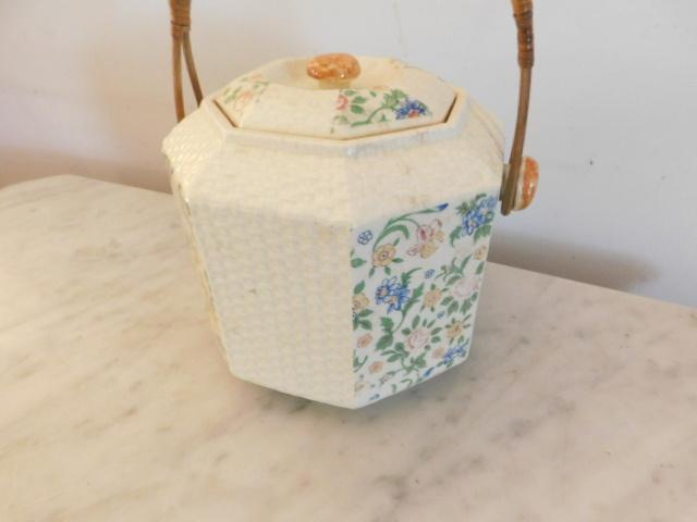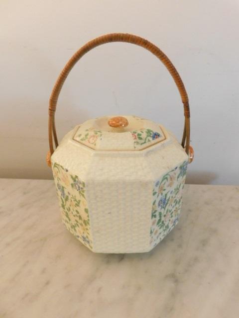 Vintage Ceramic Biscuit Jar with Reed Handle