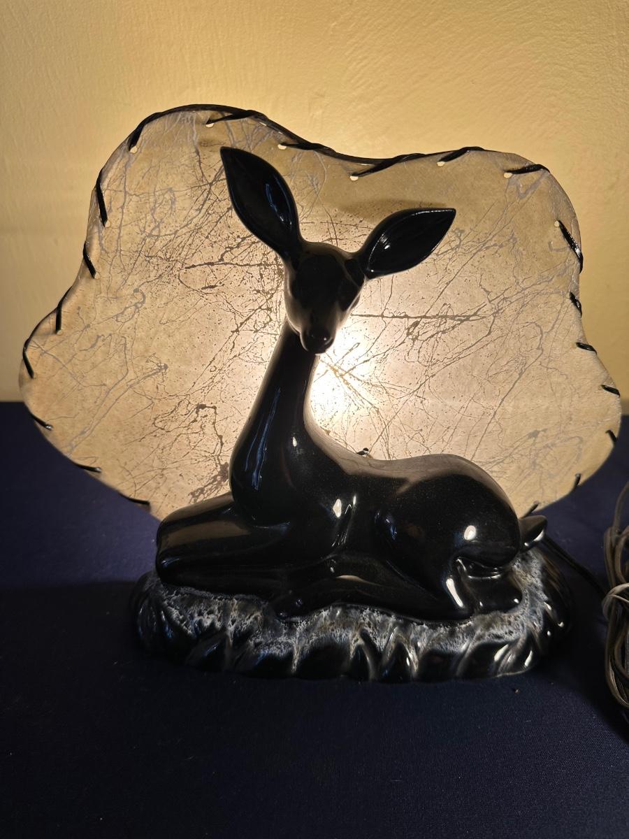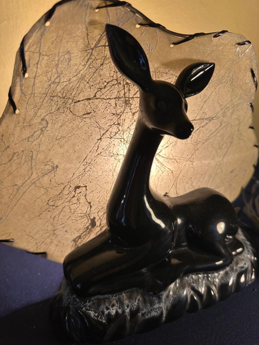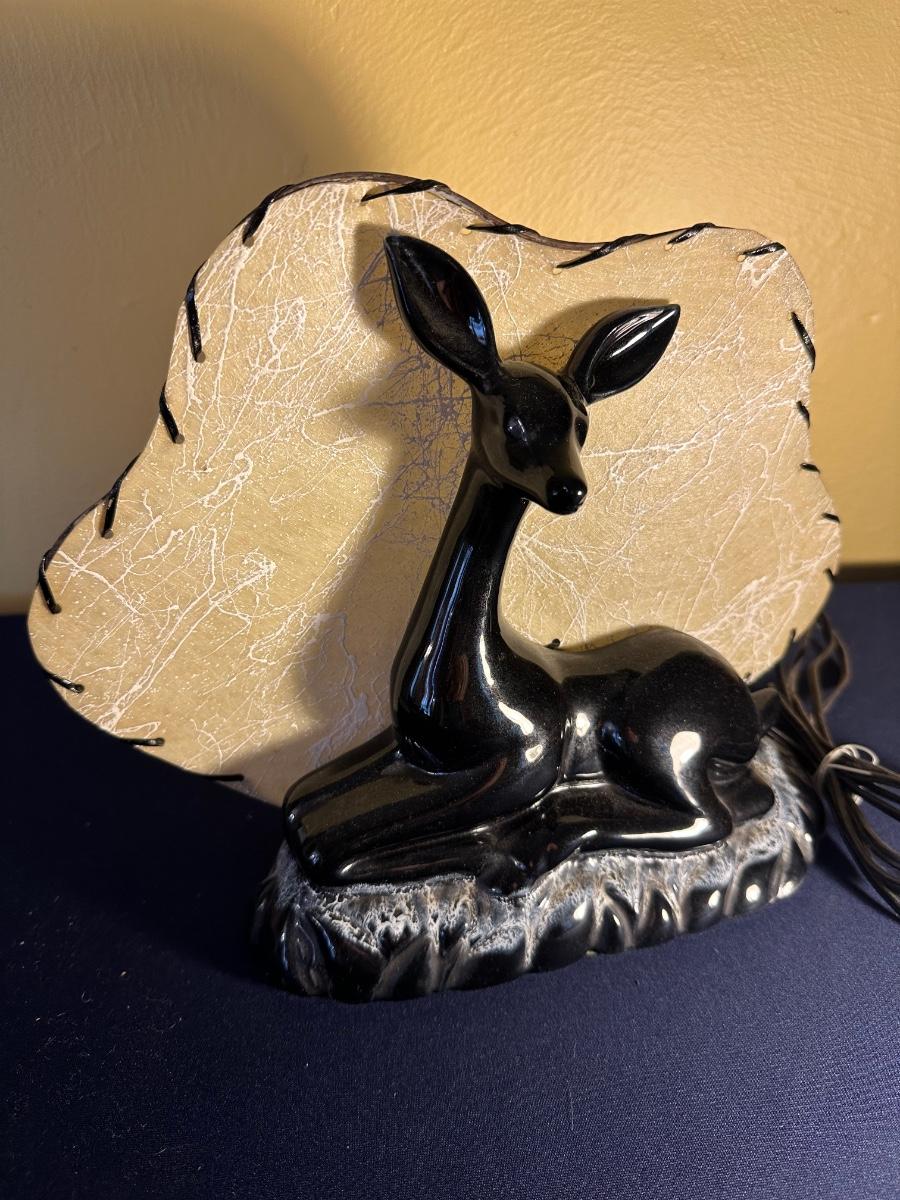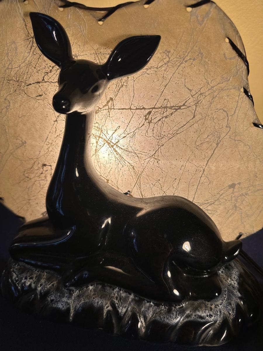 VINTAGE CERAMIC BLACK FAWN TV LAMP