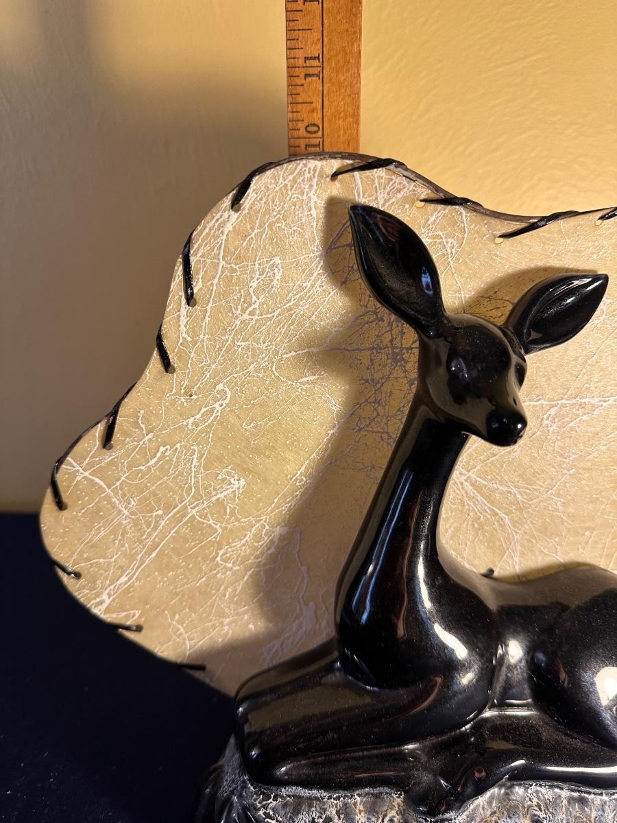 VINTAGE CERAMIC BLACK FAWN TV LAMP WORKING 11" WIDE 10" TALL