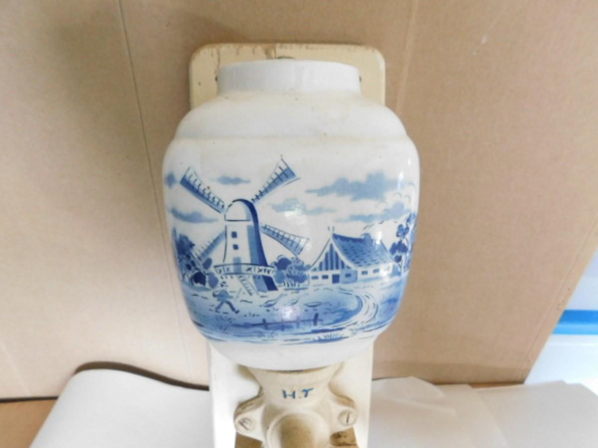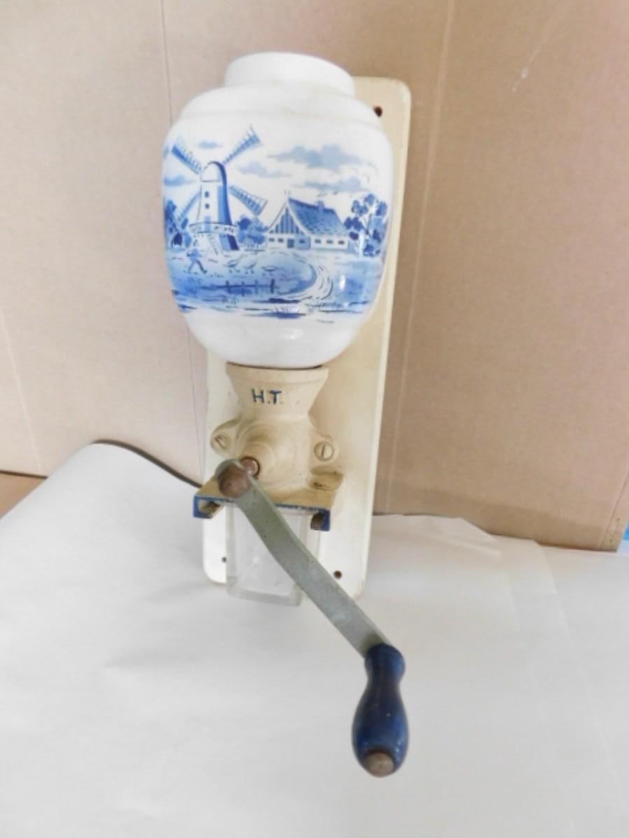 Vintage Ceramic Blue and White Trosser Coffee Grinder