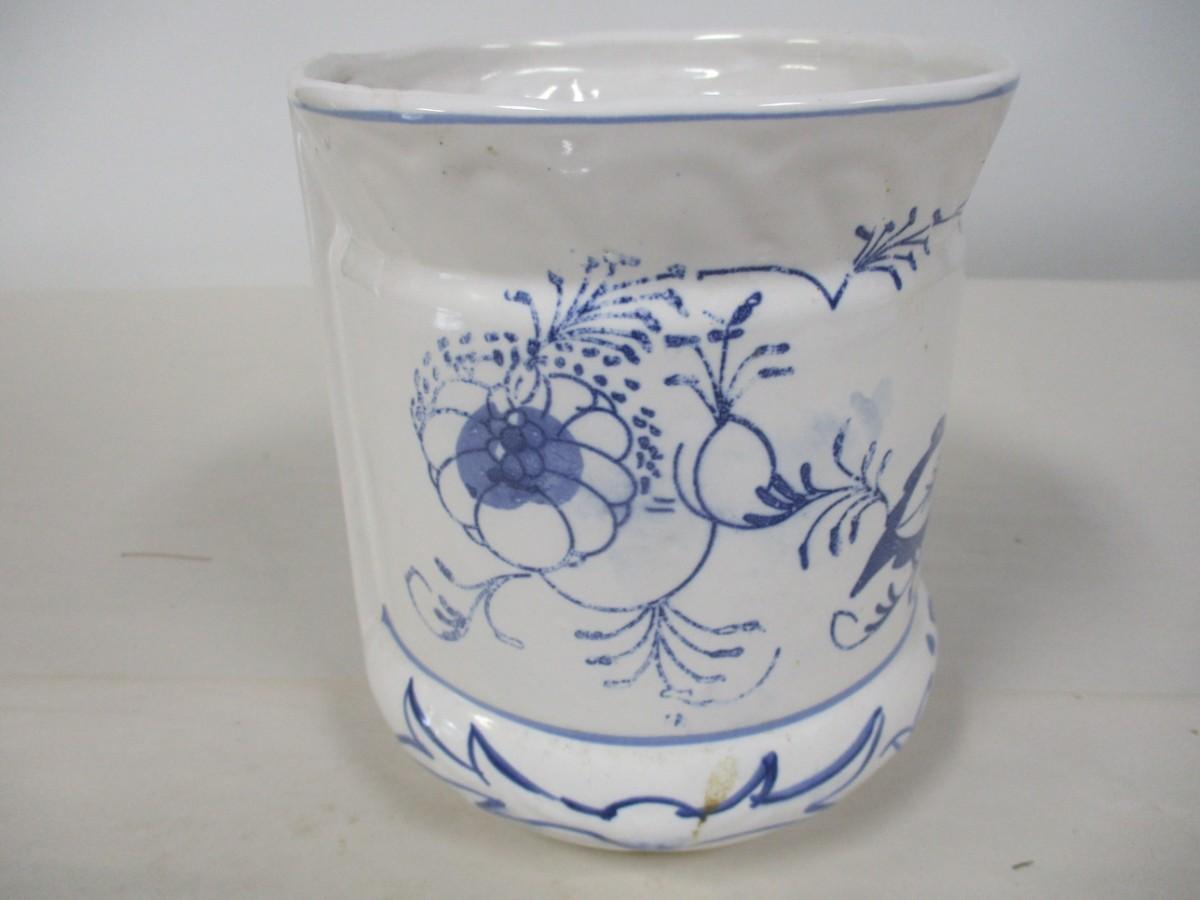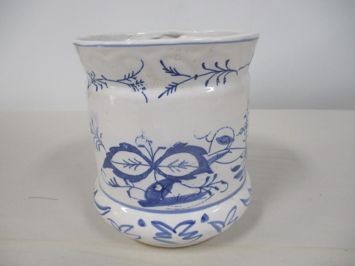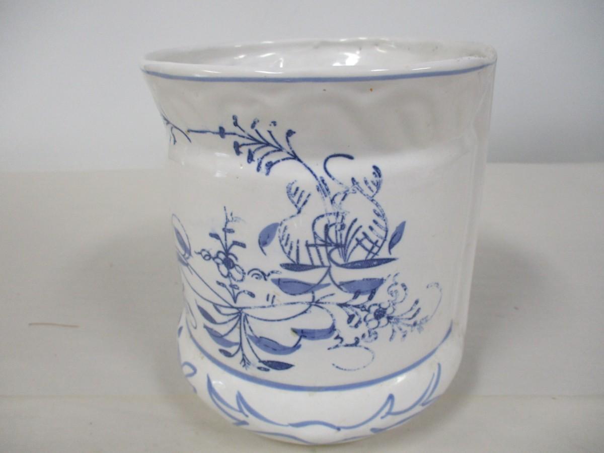 Vintage Ceramic Blue Onion Salt Box Holder Storage