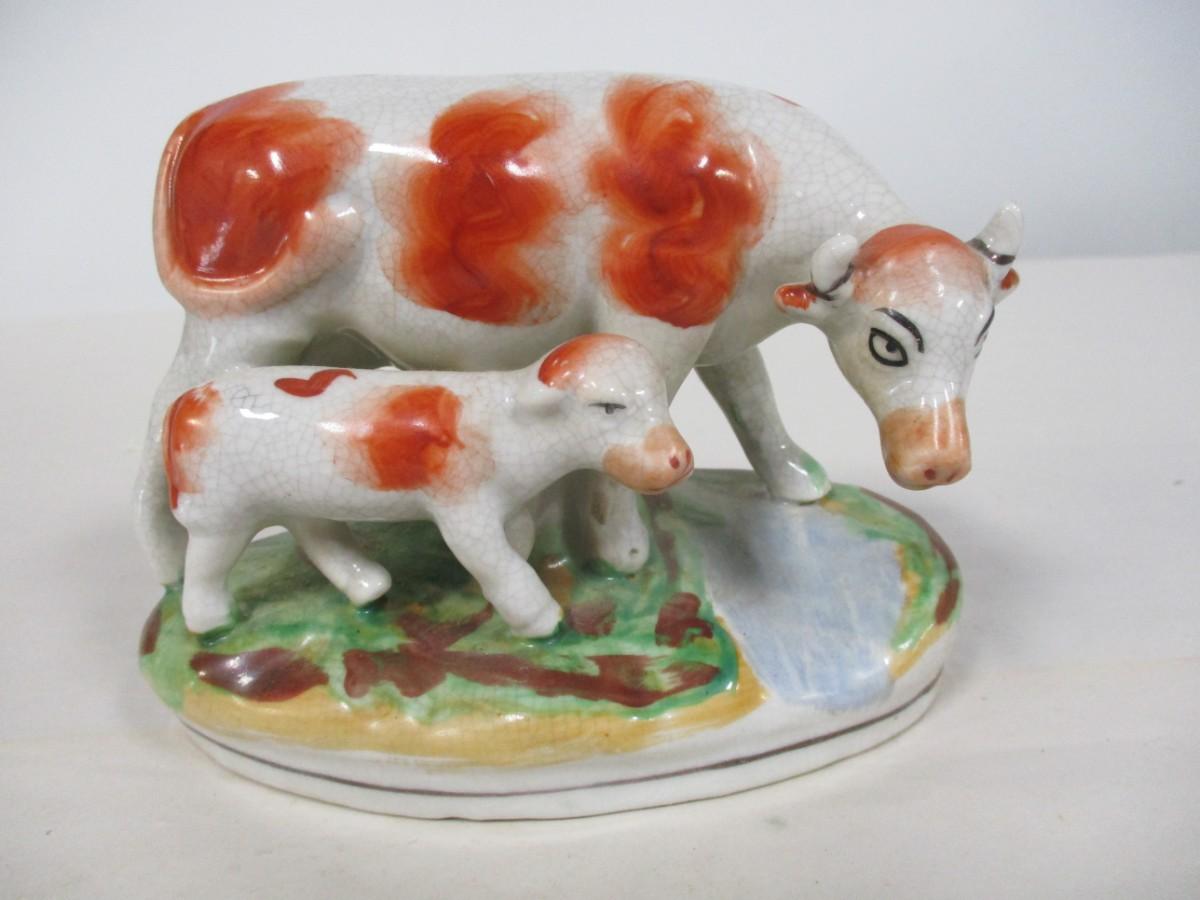 Vintage Staffordshire Design Ceramic Brown and White Cow with Calf Choice A