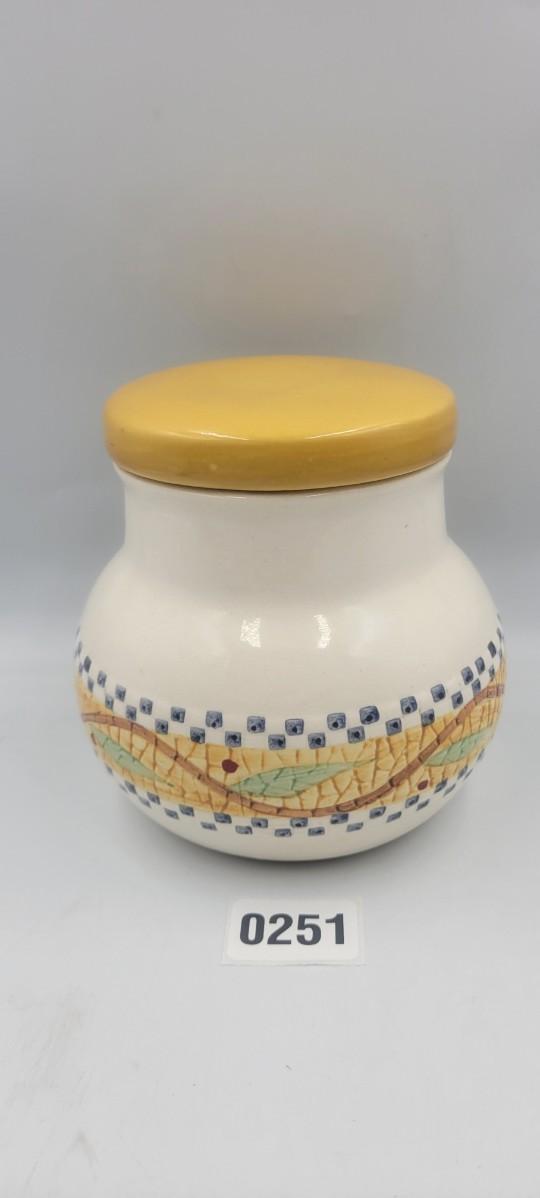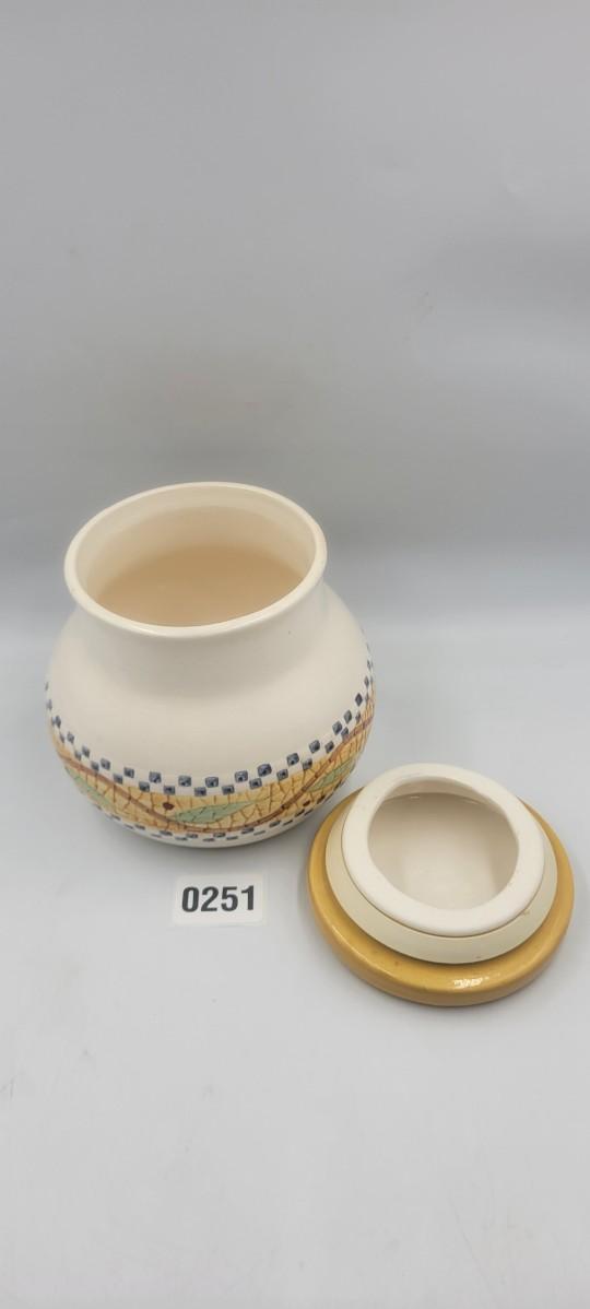 This Canister has no cracks, no chips, no breaks shown. There is crazing seen under glaze throughout.
