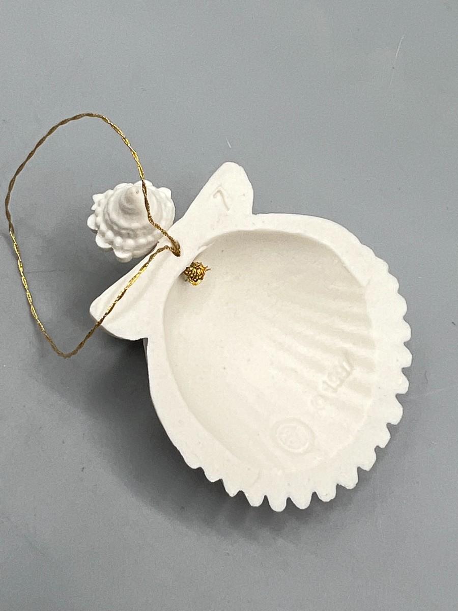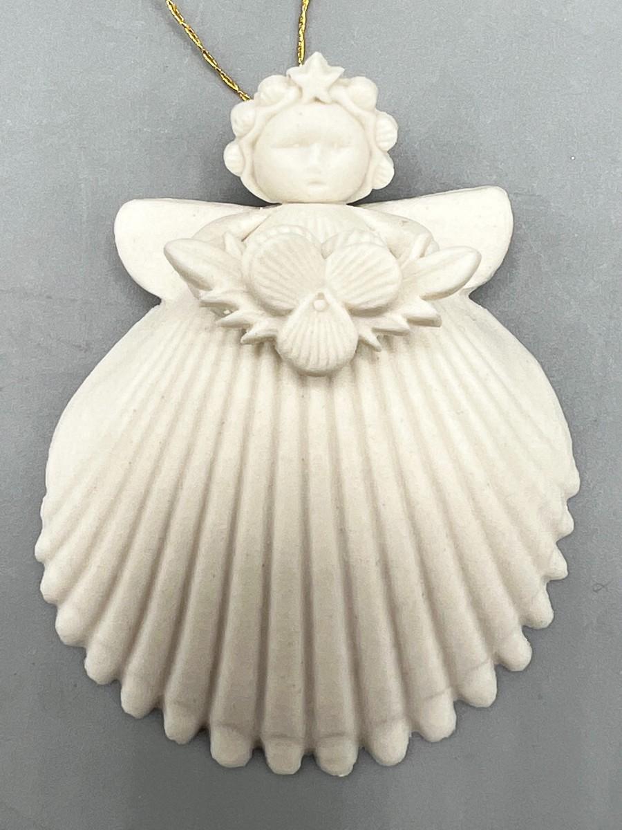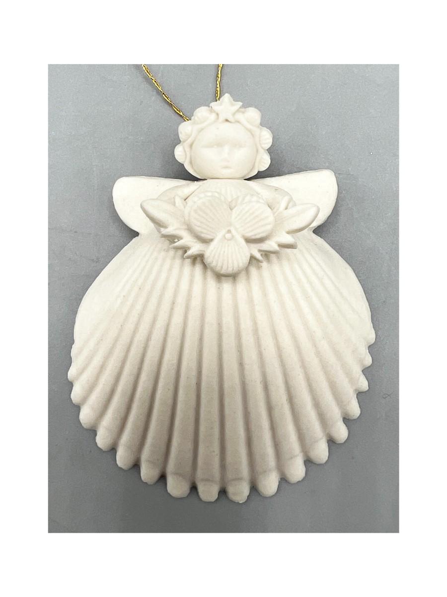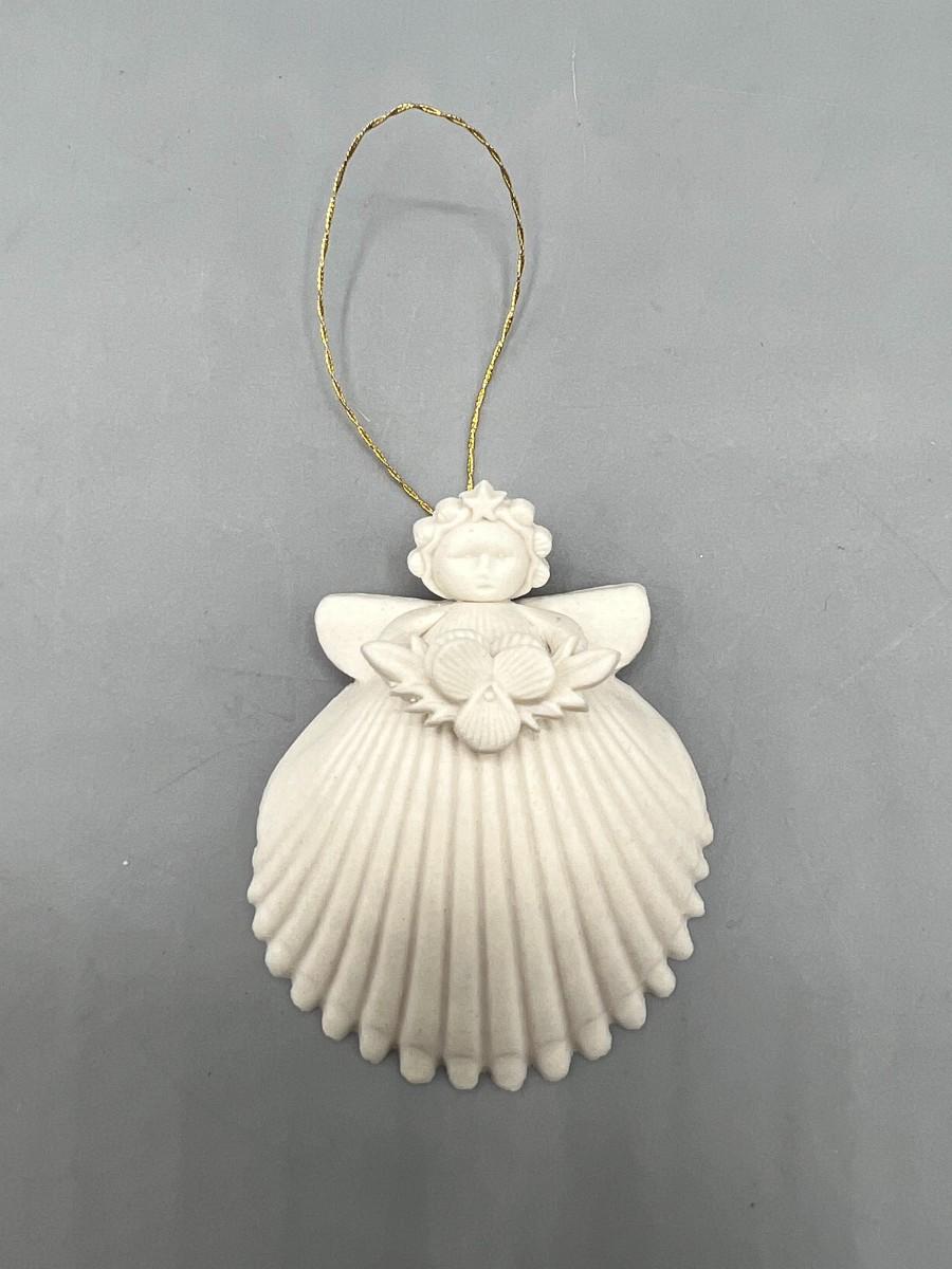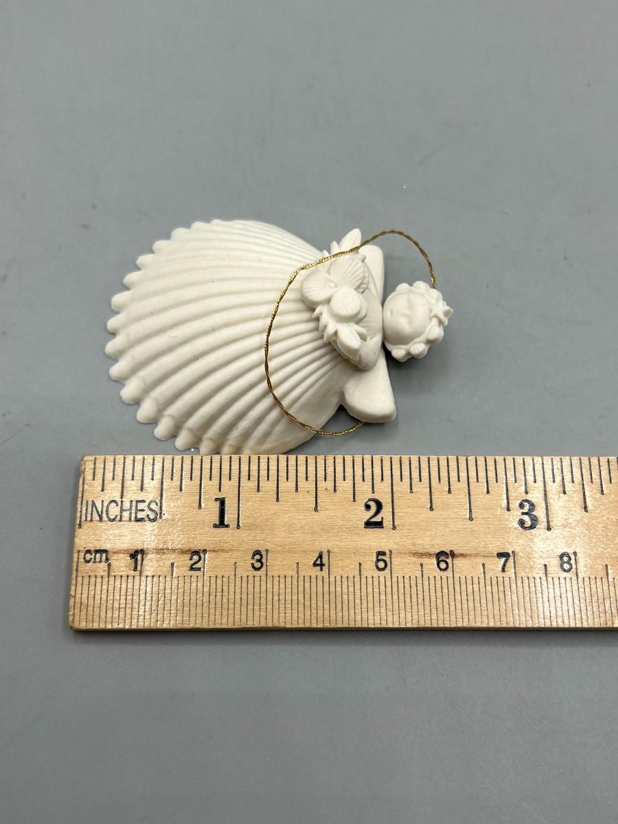 Vintage Ceramic Cherub Angel Seashell Holiday Christmas Ornament