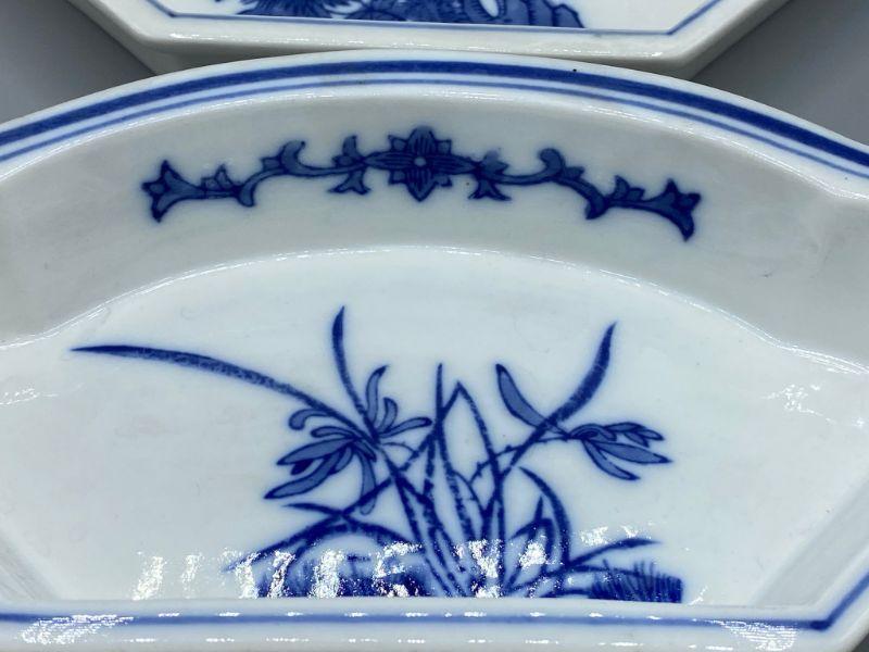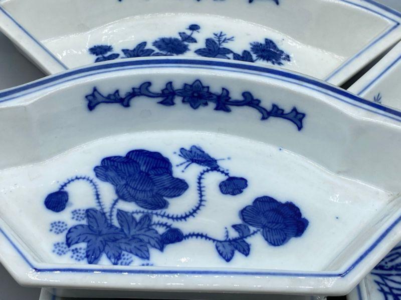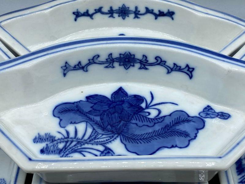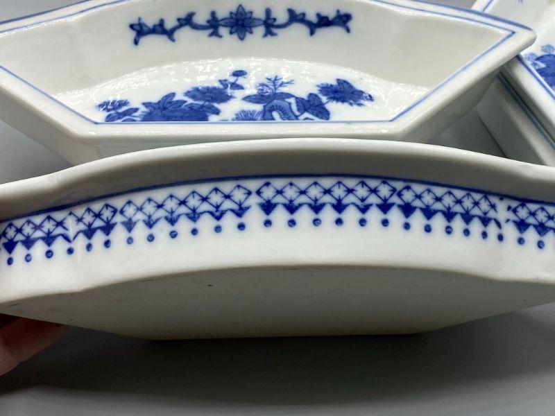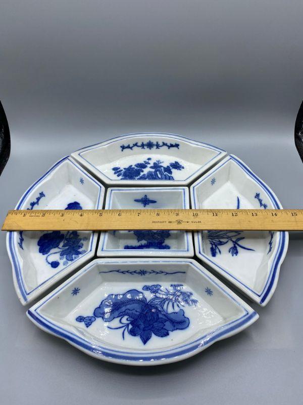 Vintage Ceramic Chinese Blue Flower Vegetable Relish Dip Tray Set