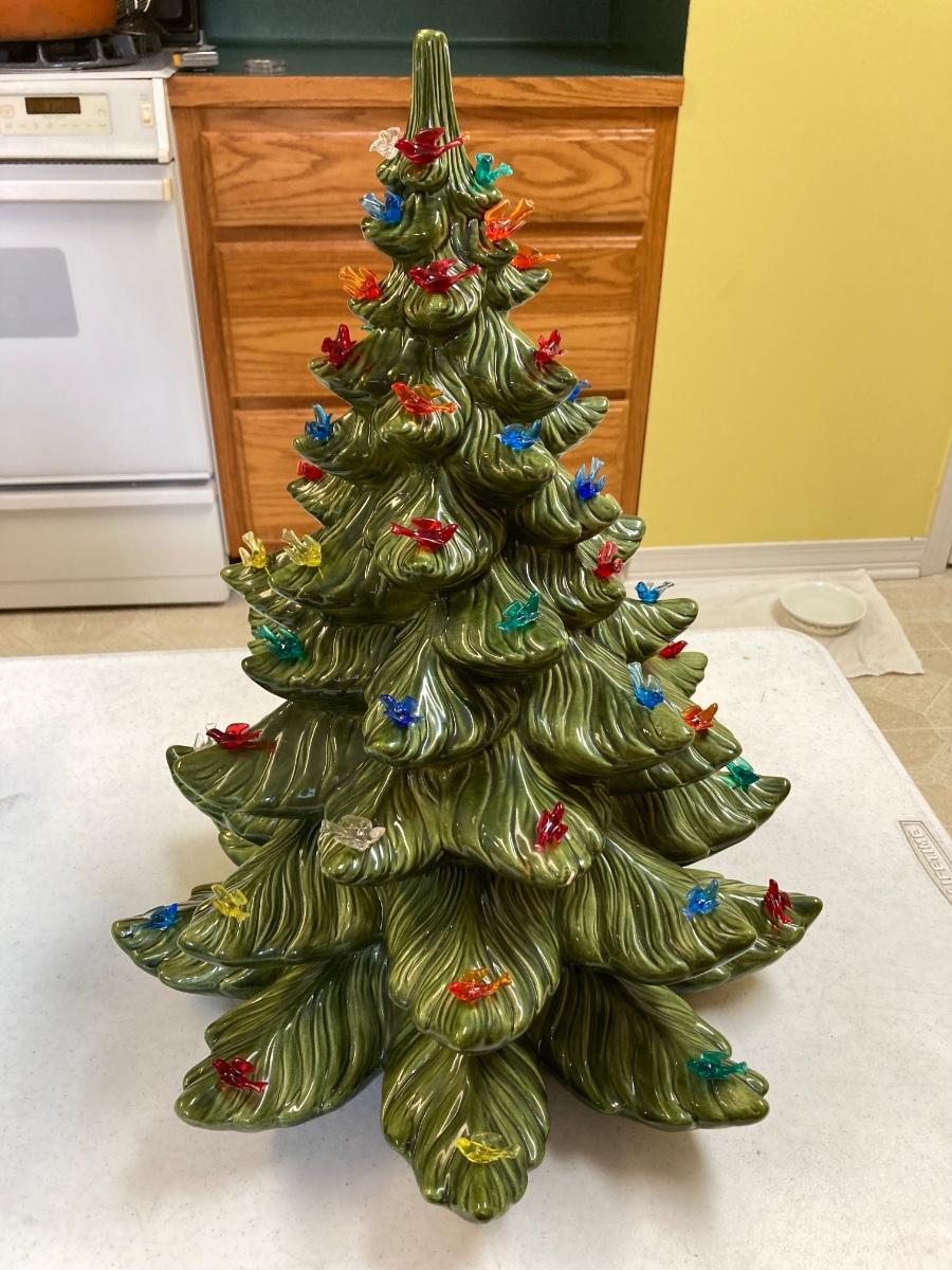Vintage Ceramic Christmas Tree 20” tall NO BASE. Green with birds