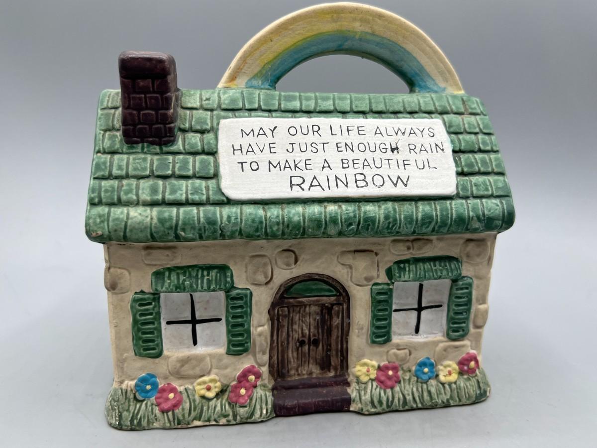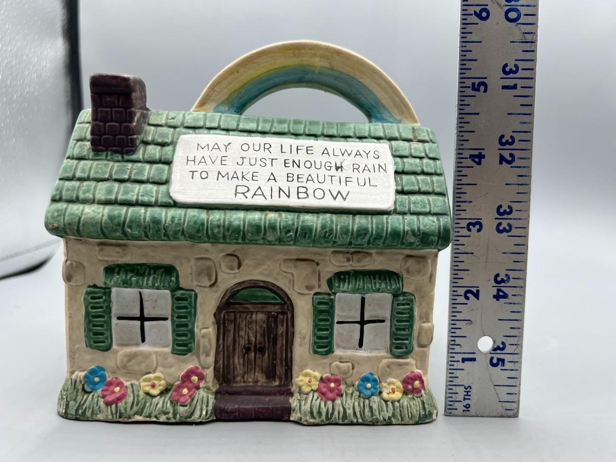 Vintage Ceramic Clay Hand Painted Cottage House Affirmation Figurine Decor