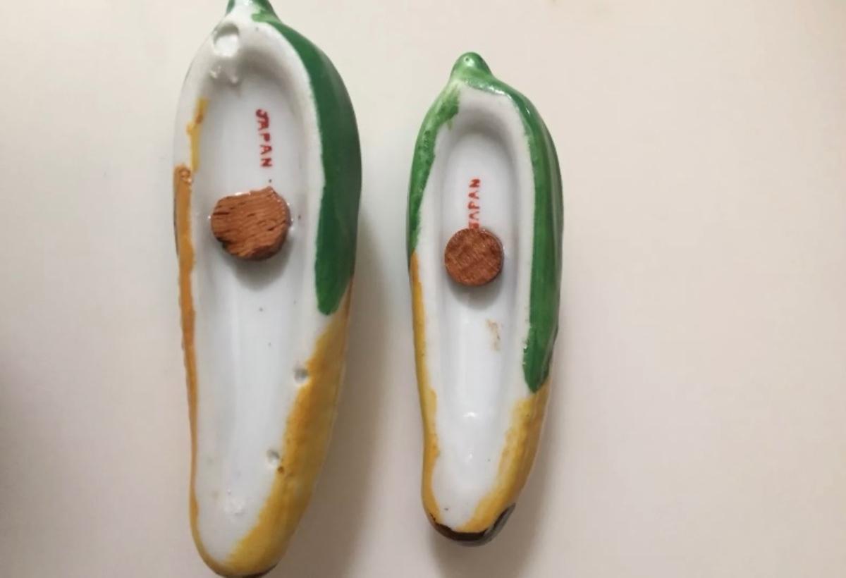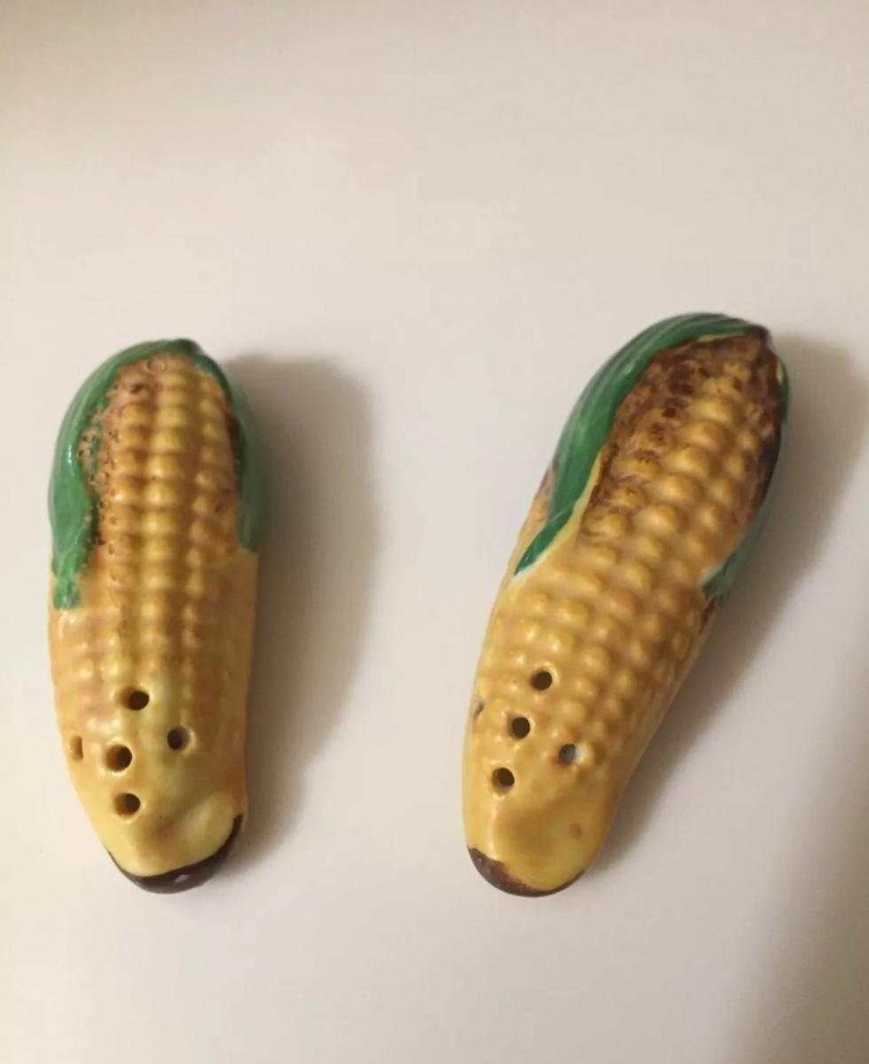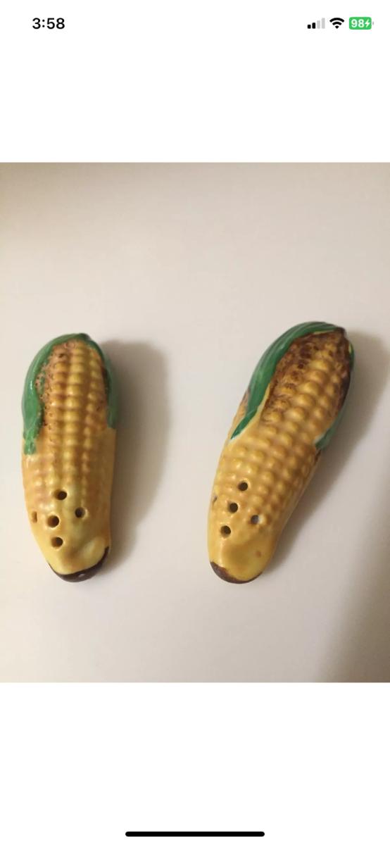 Vintage ceramic corn on the cob salt & pepper shaker set 1”W x 3-1/4L.