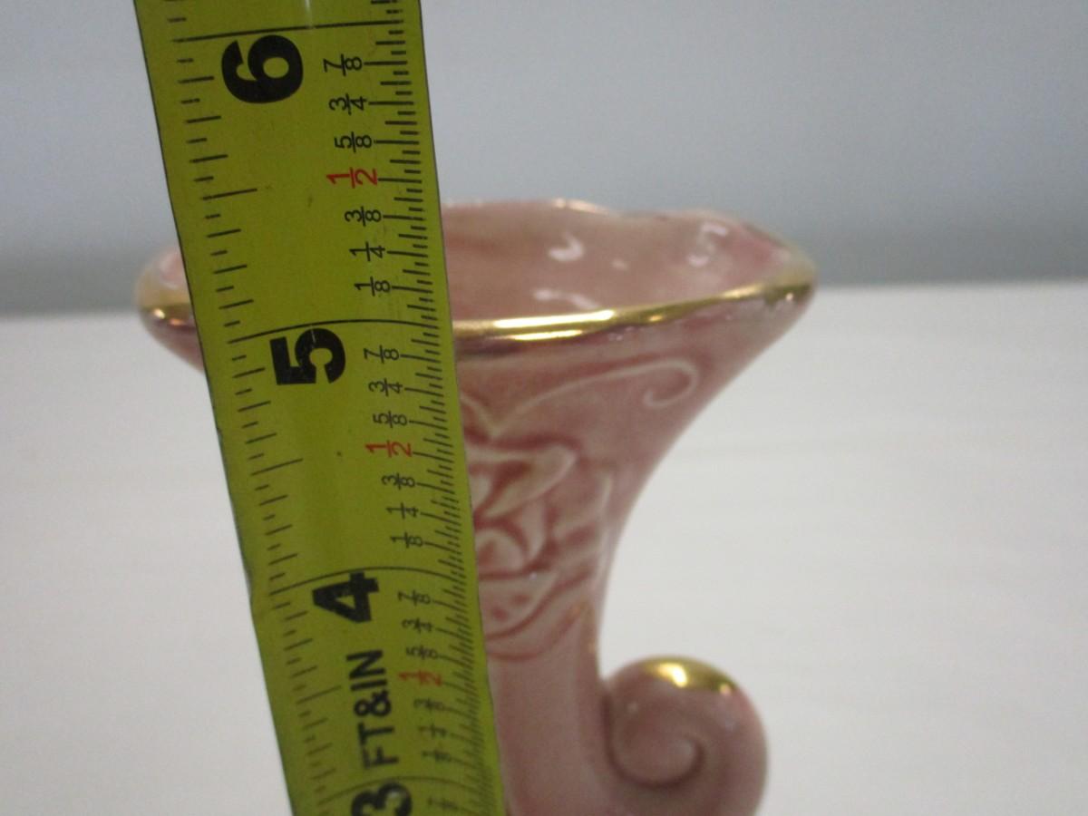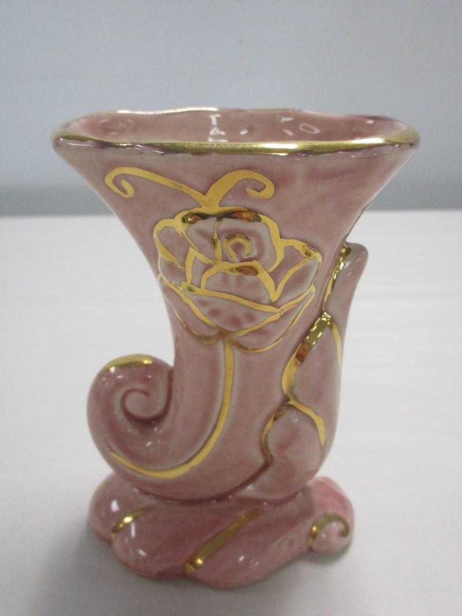 Vintage Ceramic Cornucopia Vase W/22K Gold Trim
