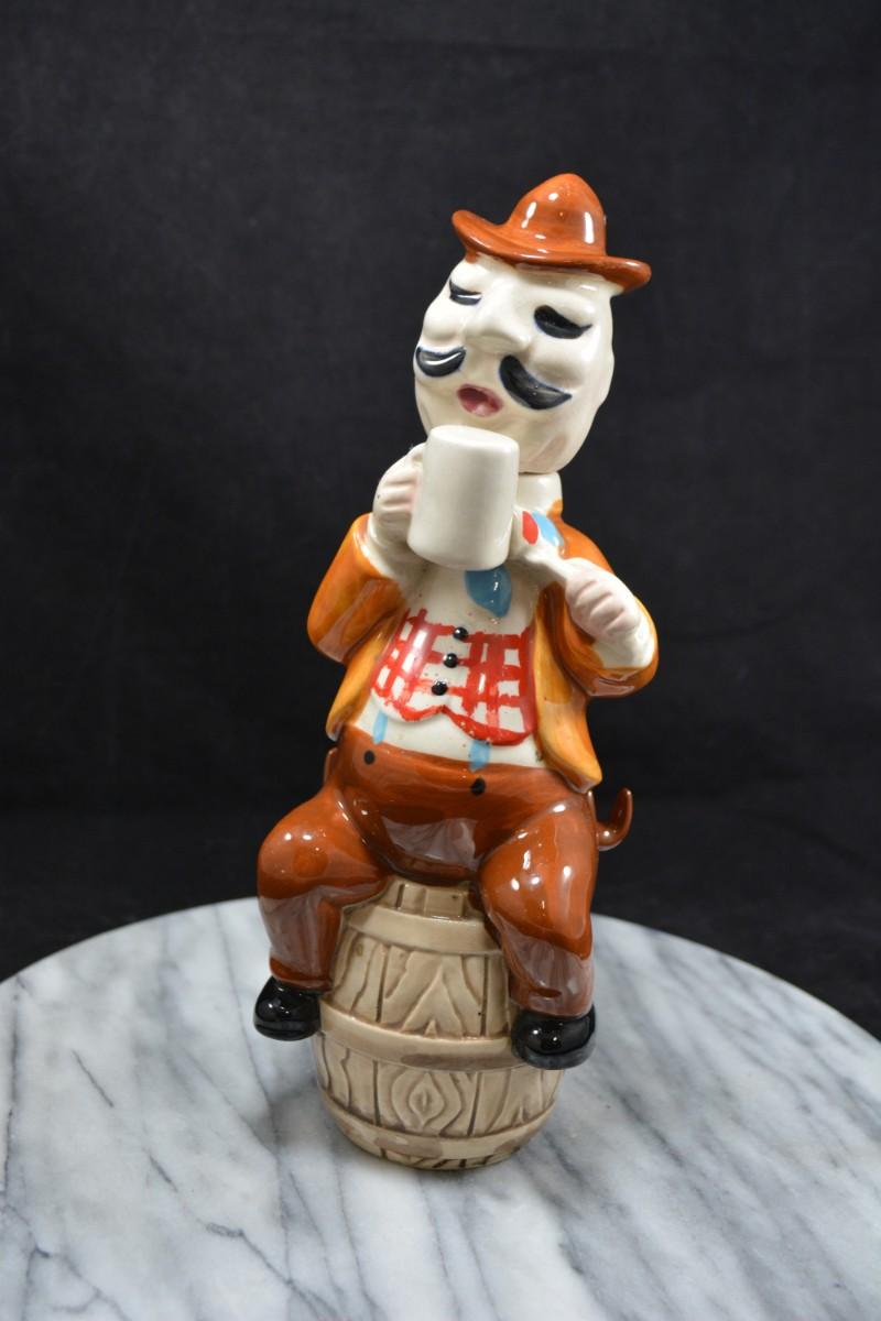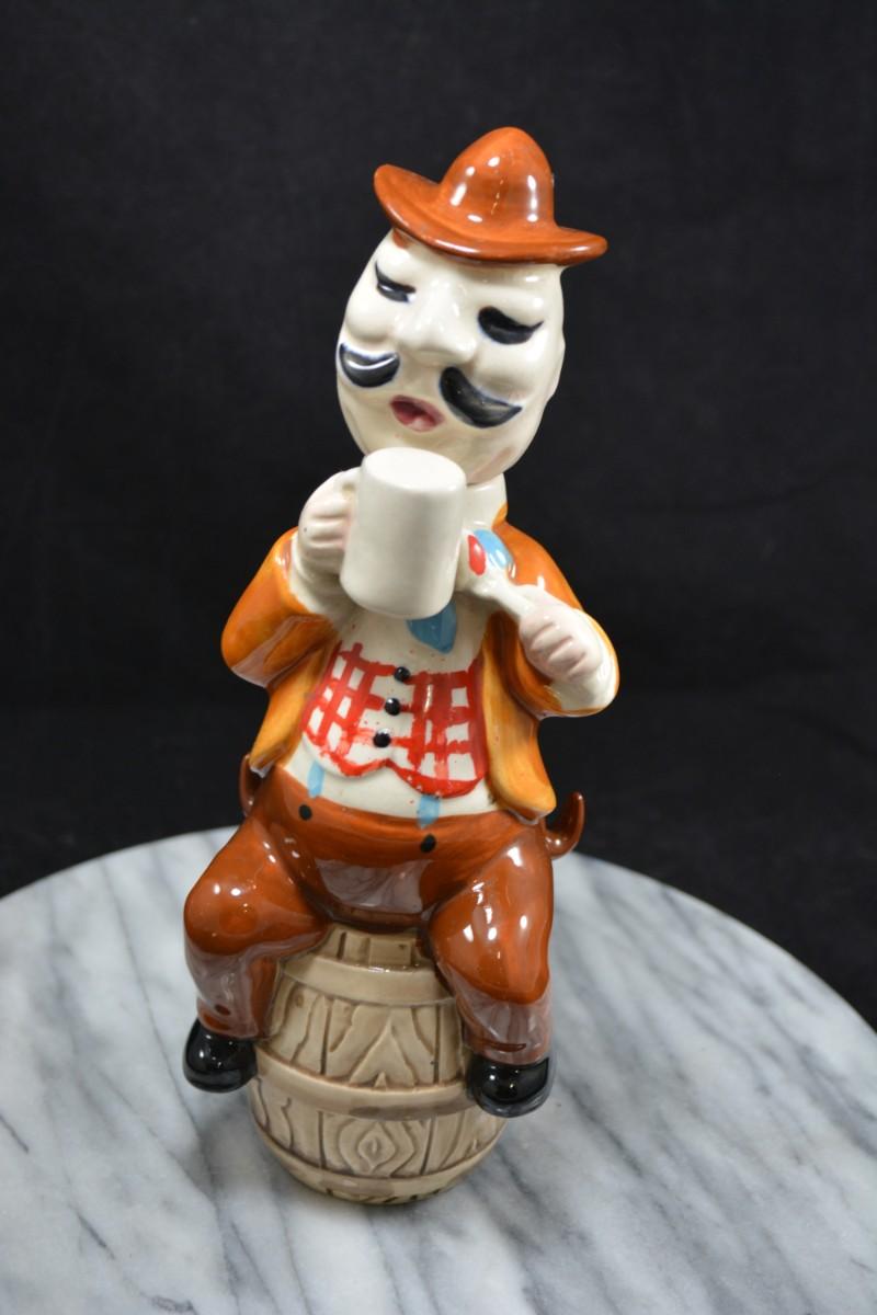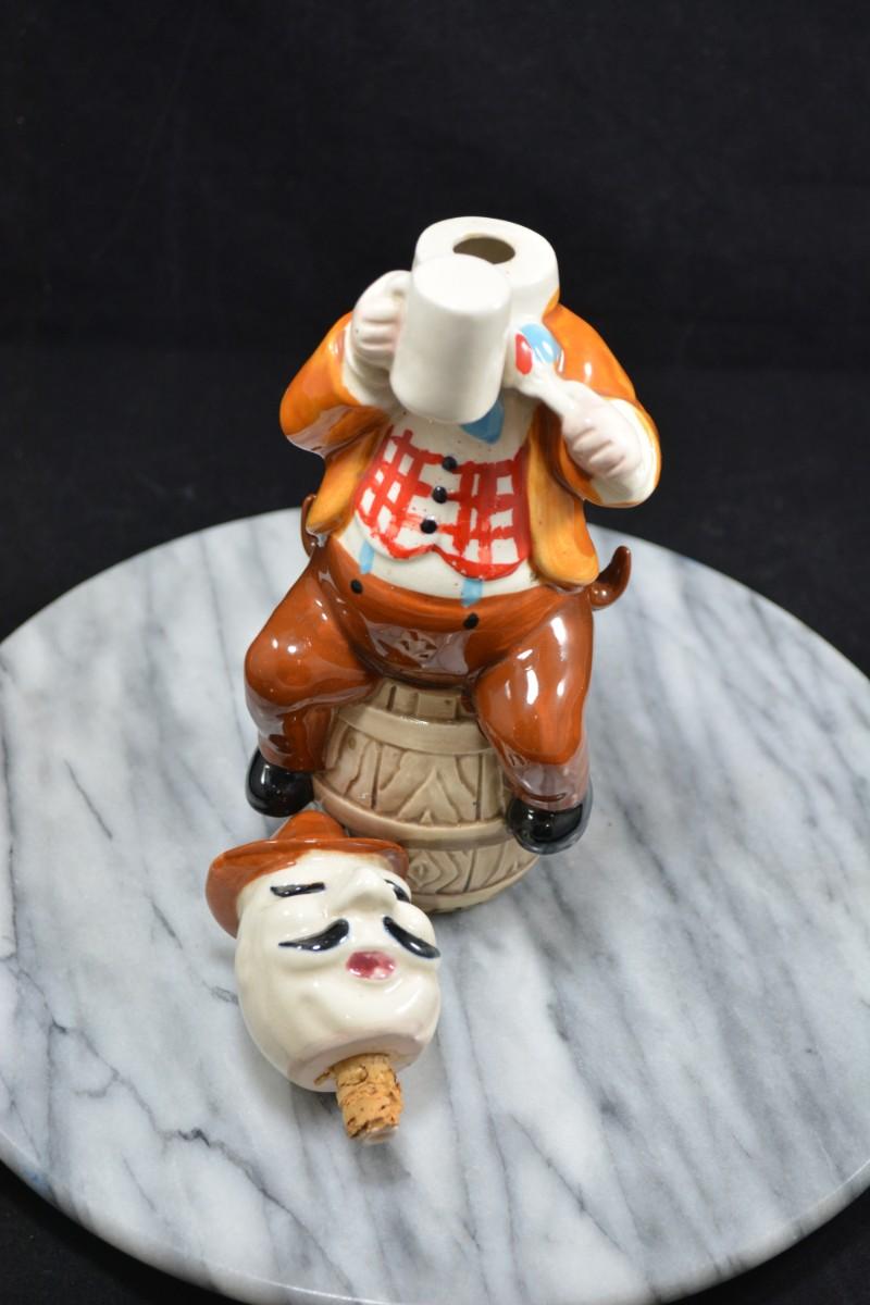 Vintage Ceramic Decanter, Missing Cups 10” Tall