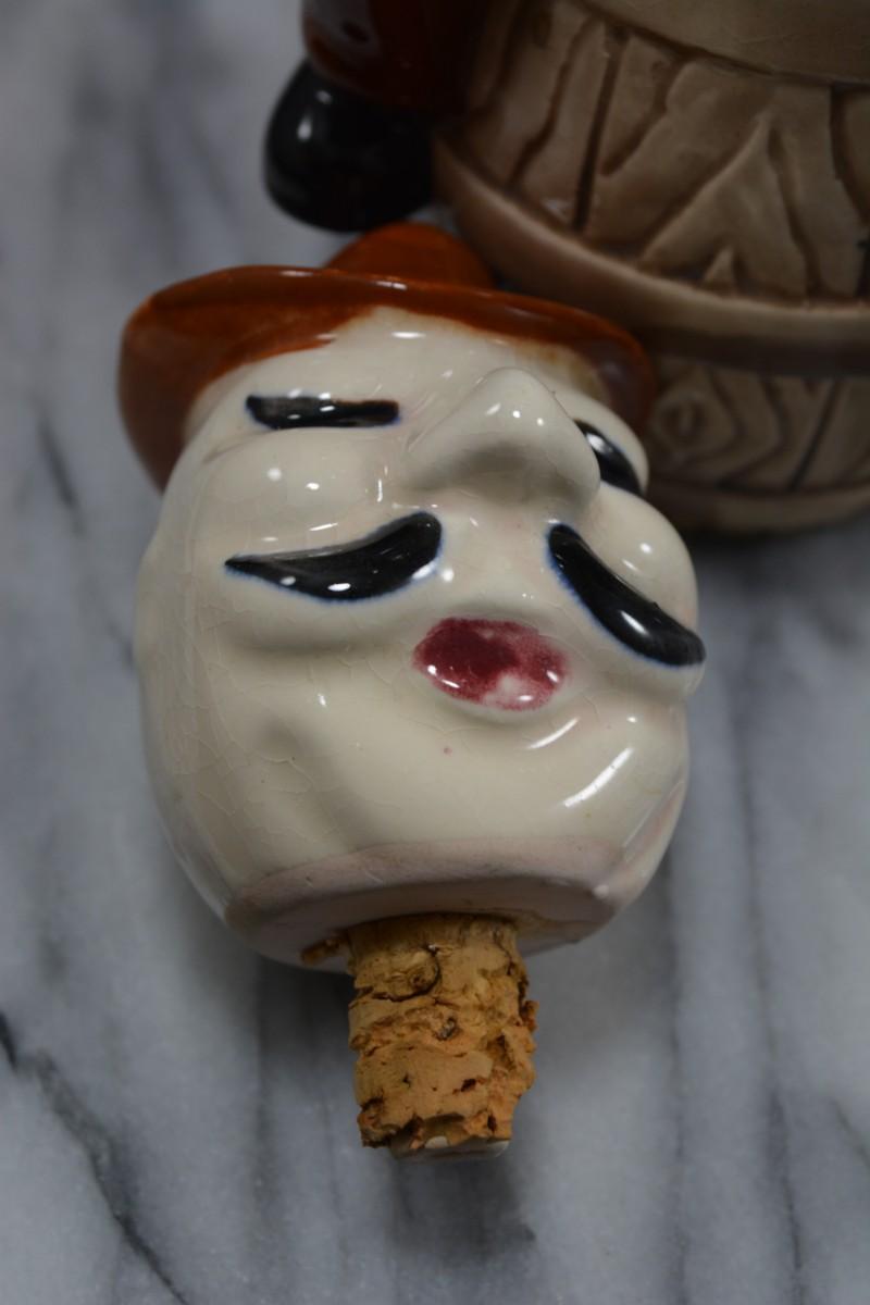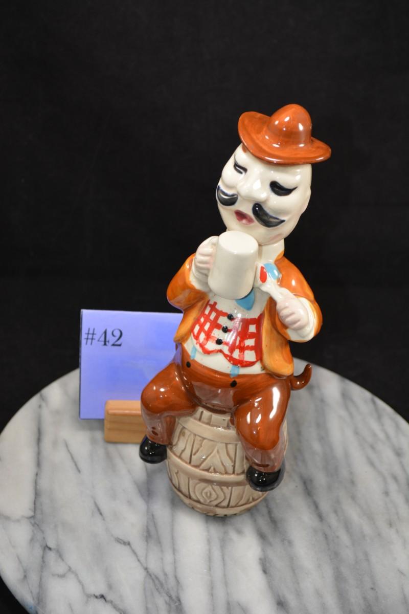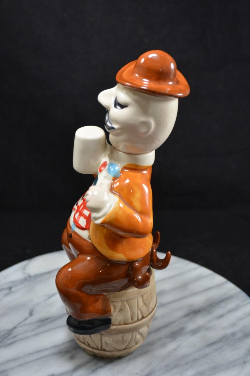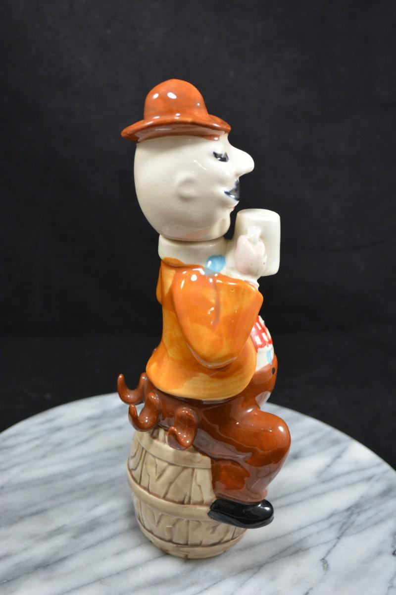 Vintage Ceramic Decanter, Missing Cups 10” Tall