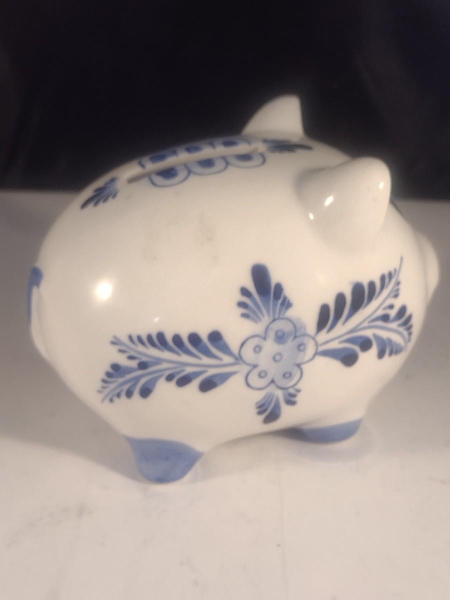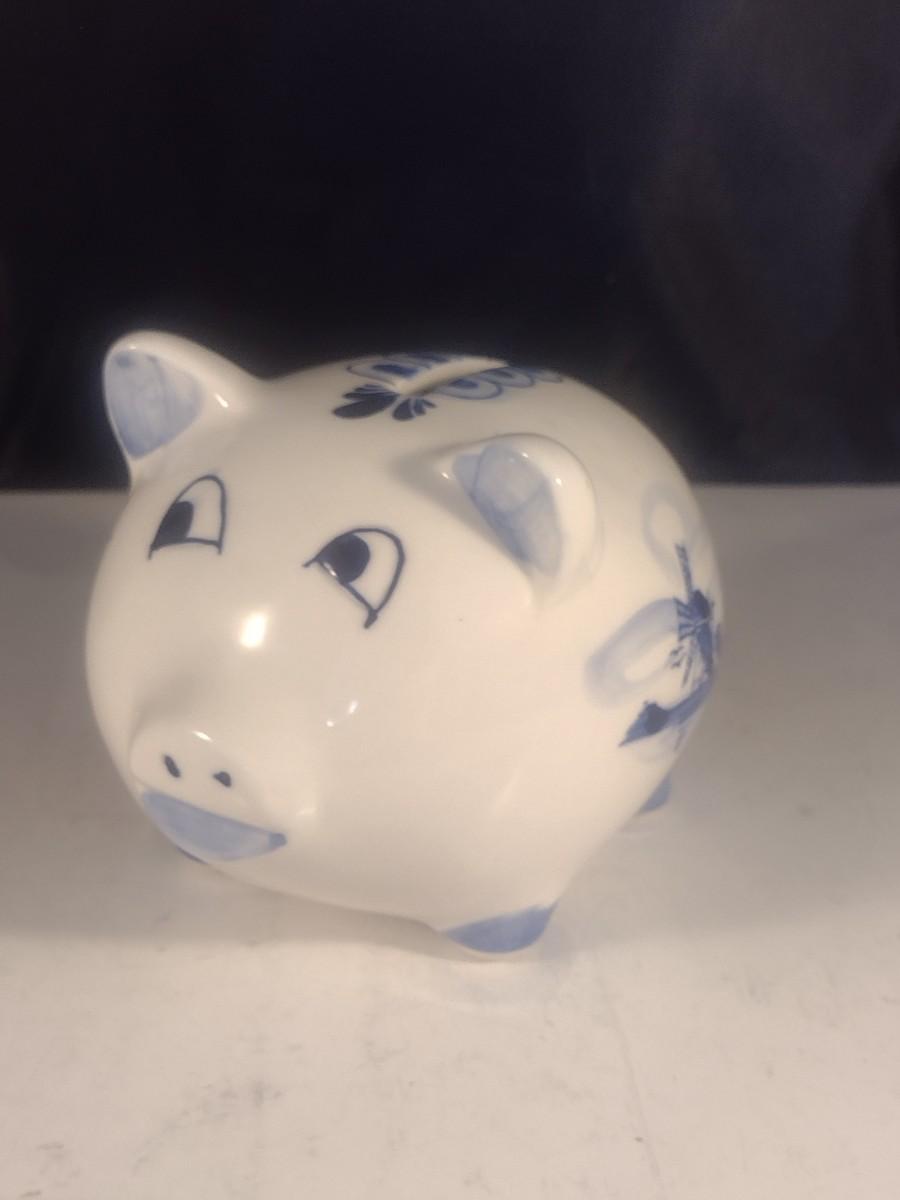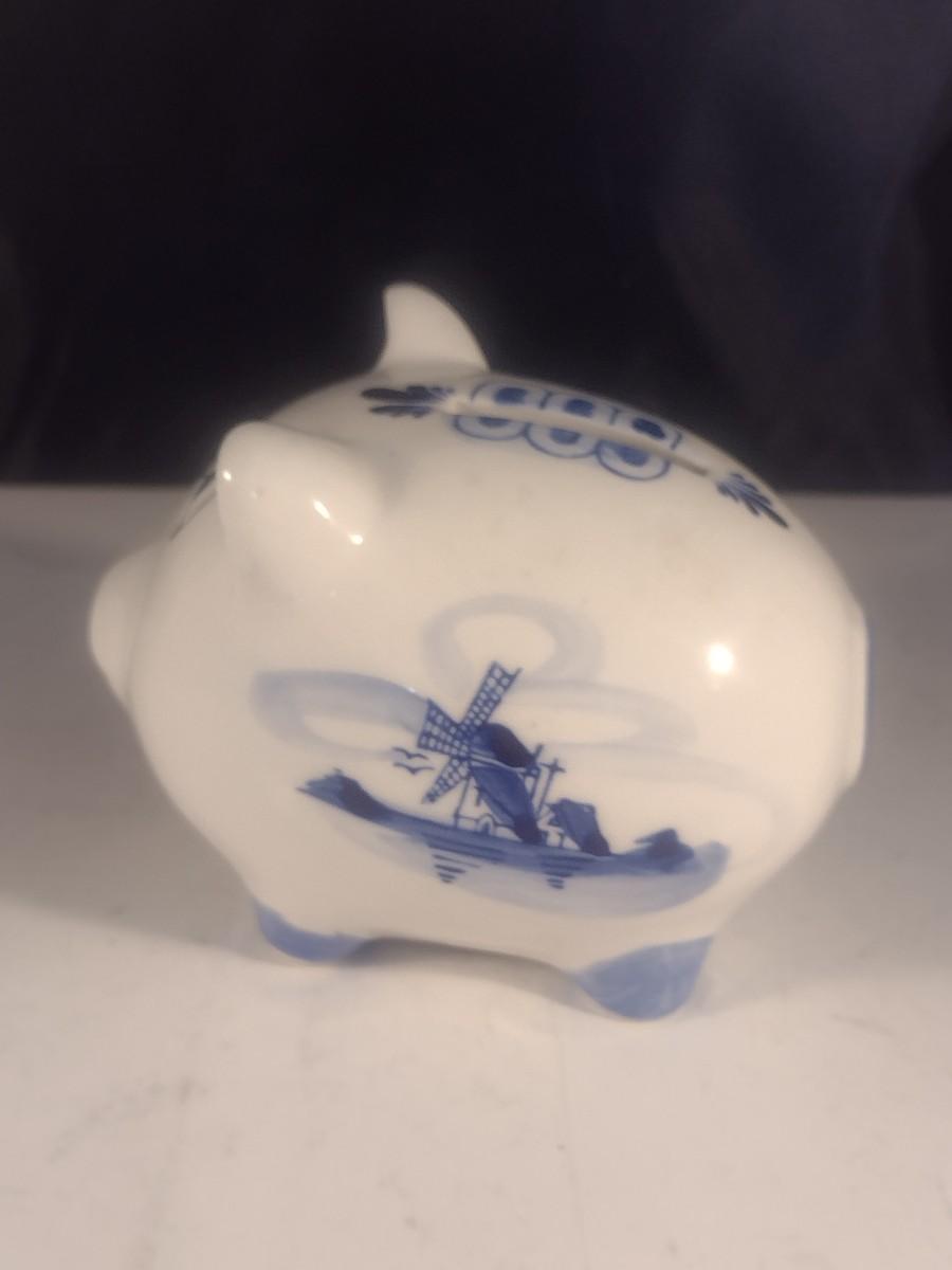 Vintage Ceramic Delft Blue Holland Hand-Painted Piggy Bank