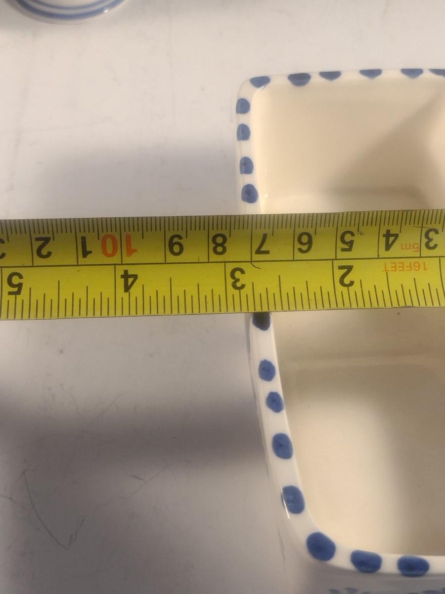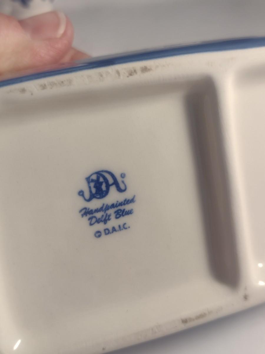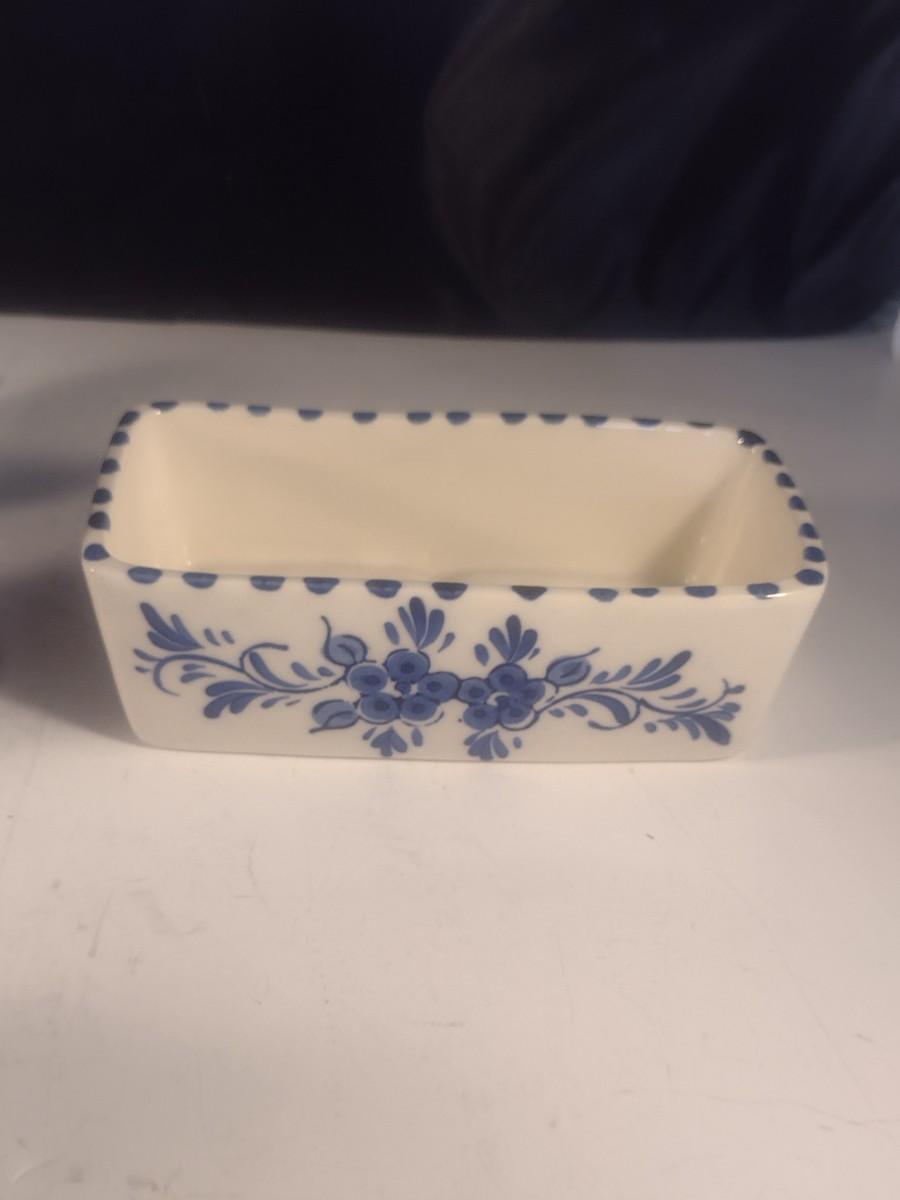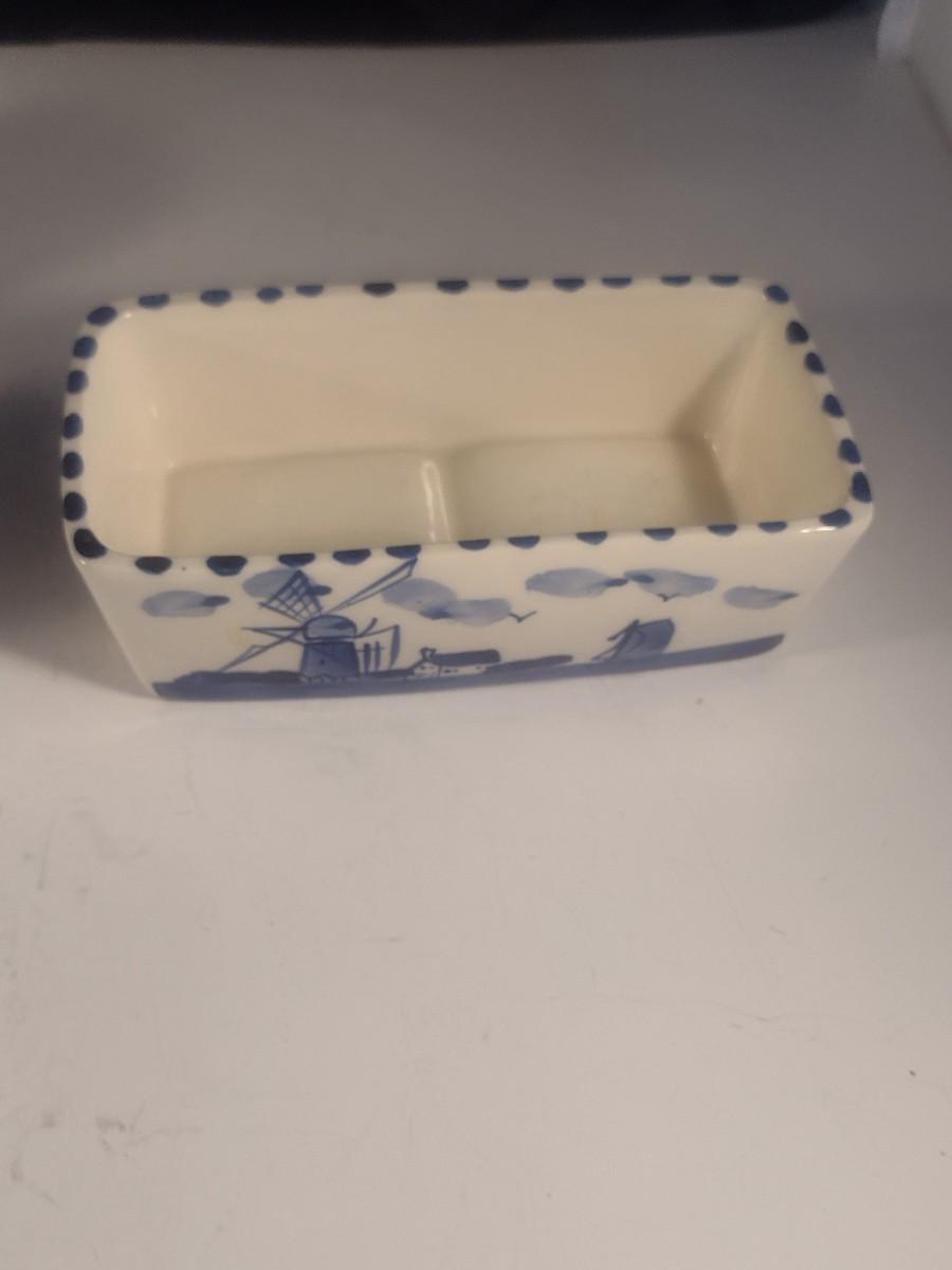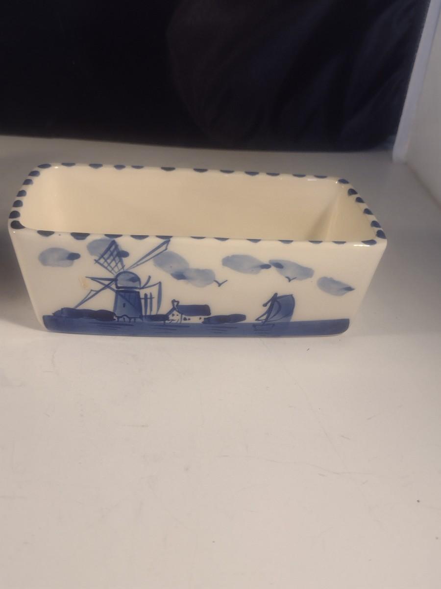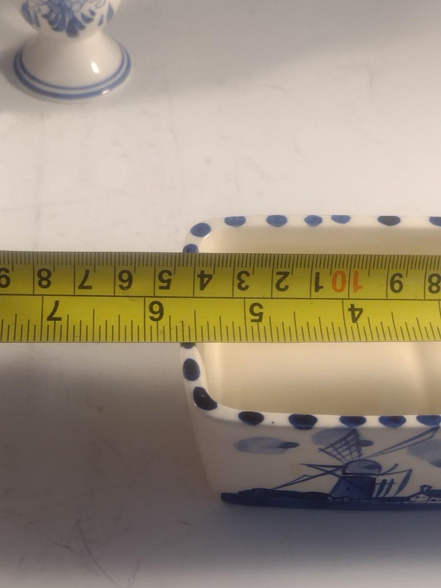 Vintage Ceramic Delft Blue Holland Hand-Painted Egg Cups and Caddy