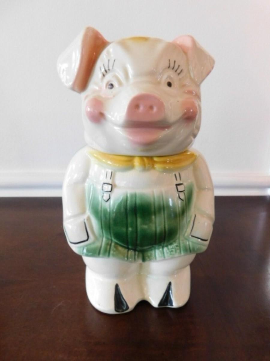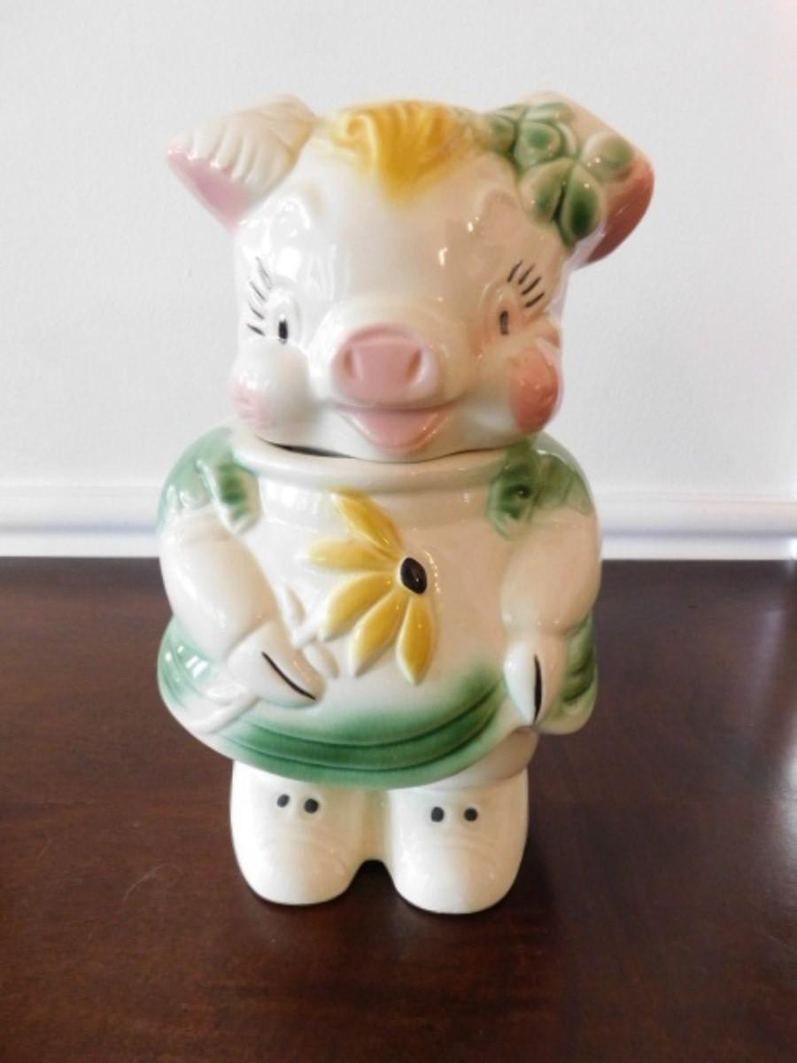 Vintage Ceramic Double Face Pig Cookie Jar