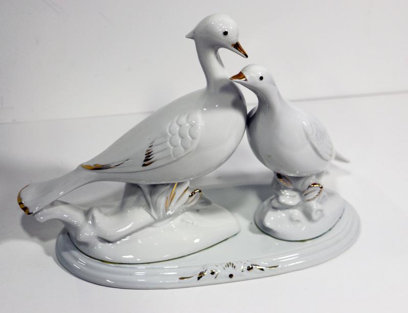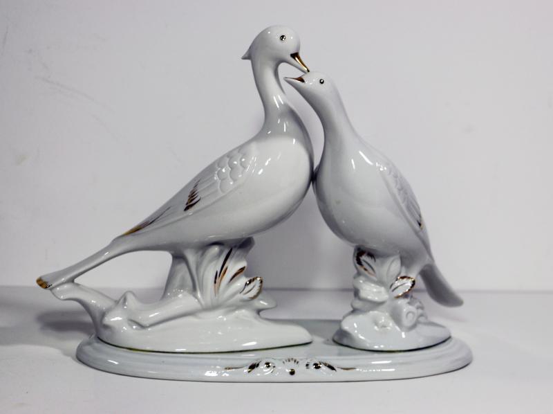 Vintage Ceramic Doves Statue - Tarzia Porcelain Firenze Italy