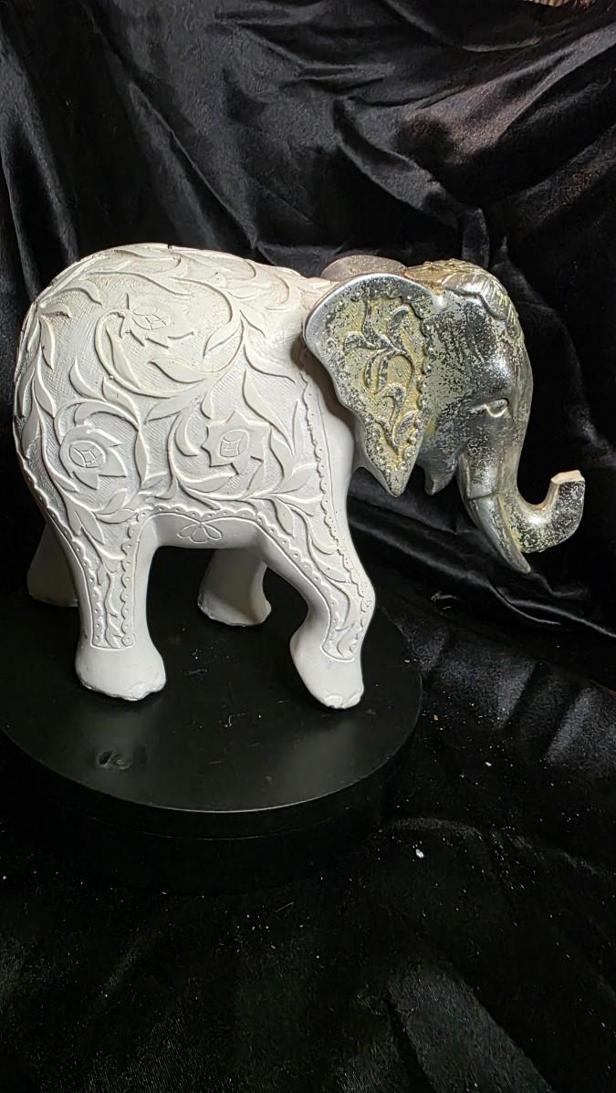 Vintage Elephant Figurine - Floral Engraved Lucky Trunk Up Decor