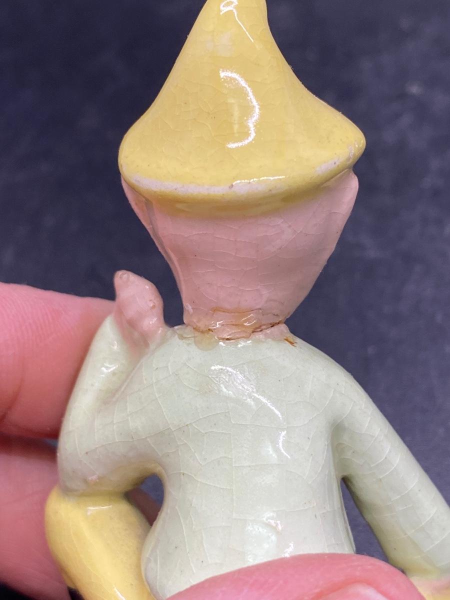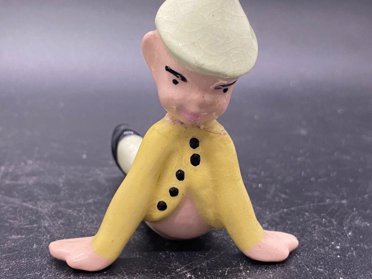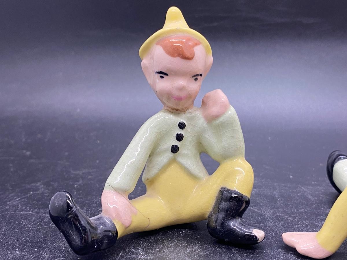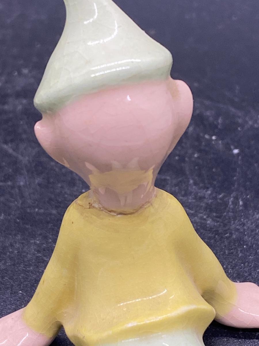 Pair of vintage elf figurines. Both have been damaged and repaired. Display nicely. See photos on conditions. Small, about 3" size.