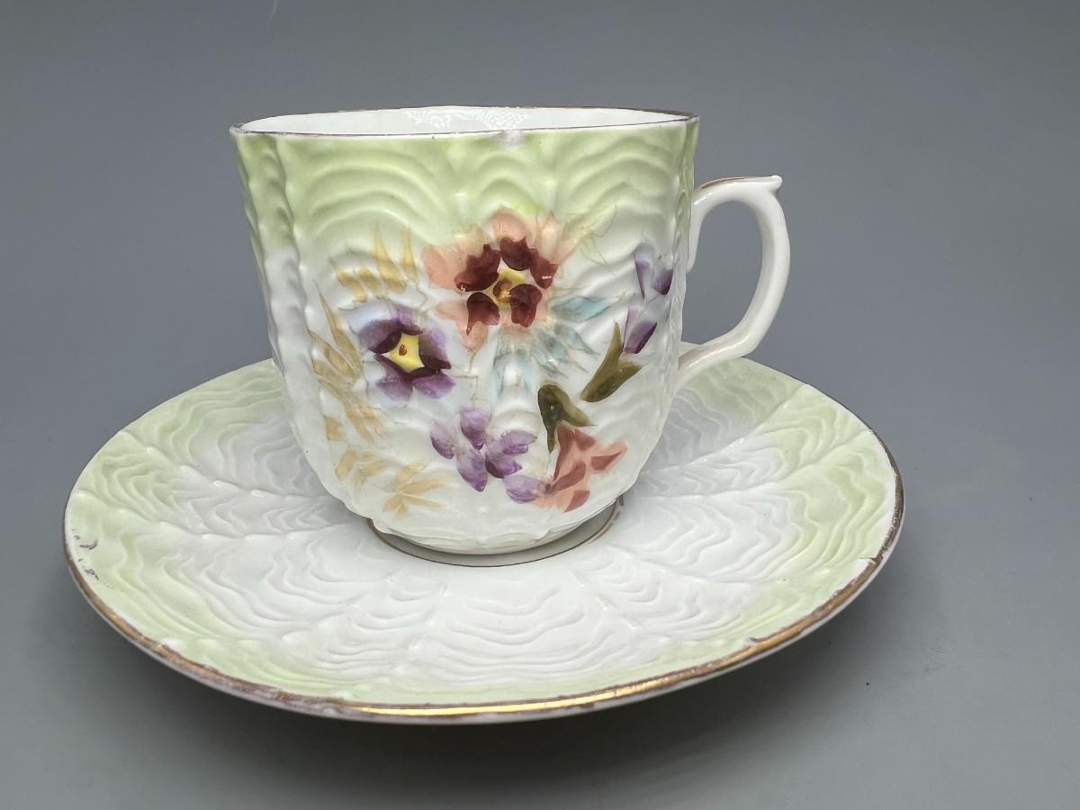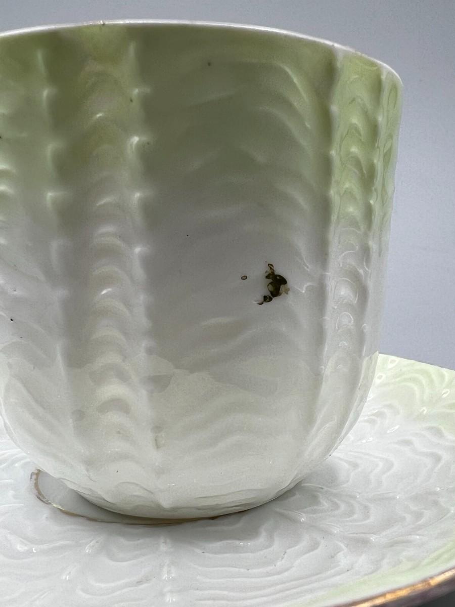 There are no makers mark on either the cup or saucer, there is also a small color scuff pictured above.