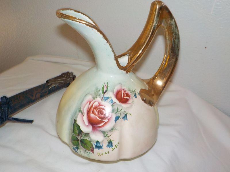 " Vintage Ceramic Hand Made Pitcher by Ruby Bogie".
