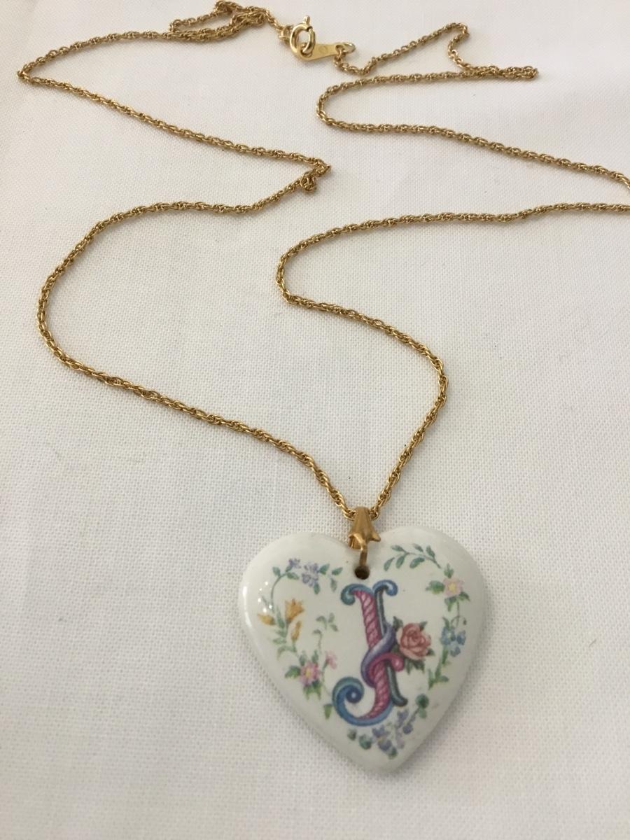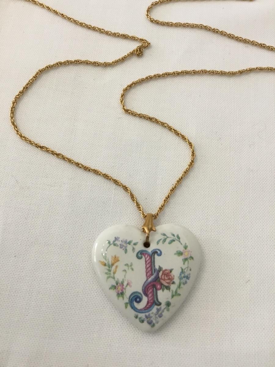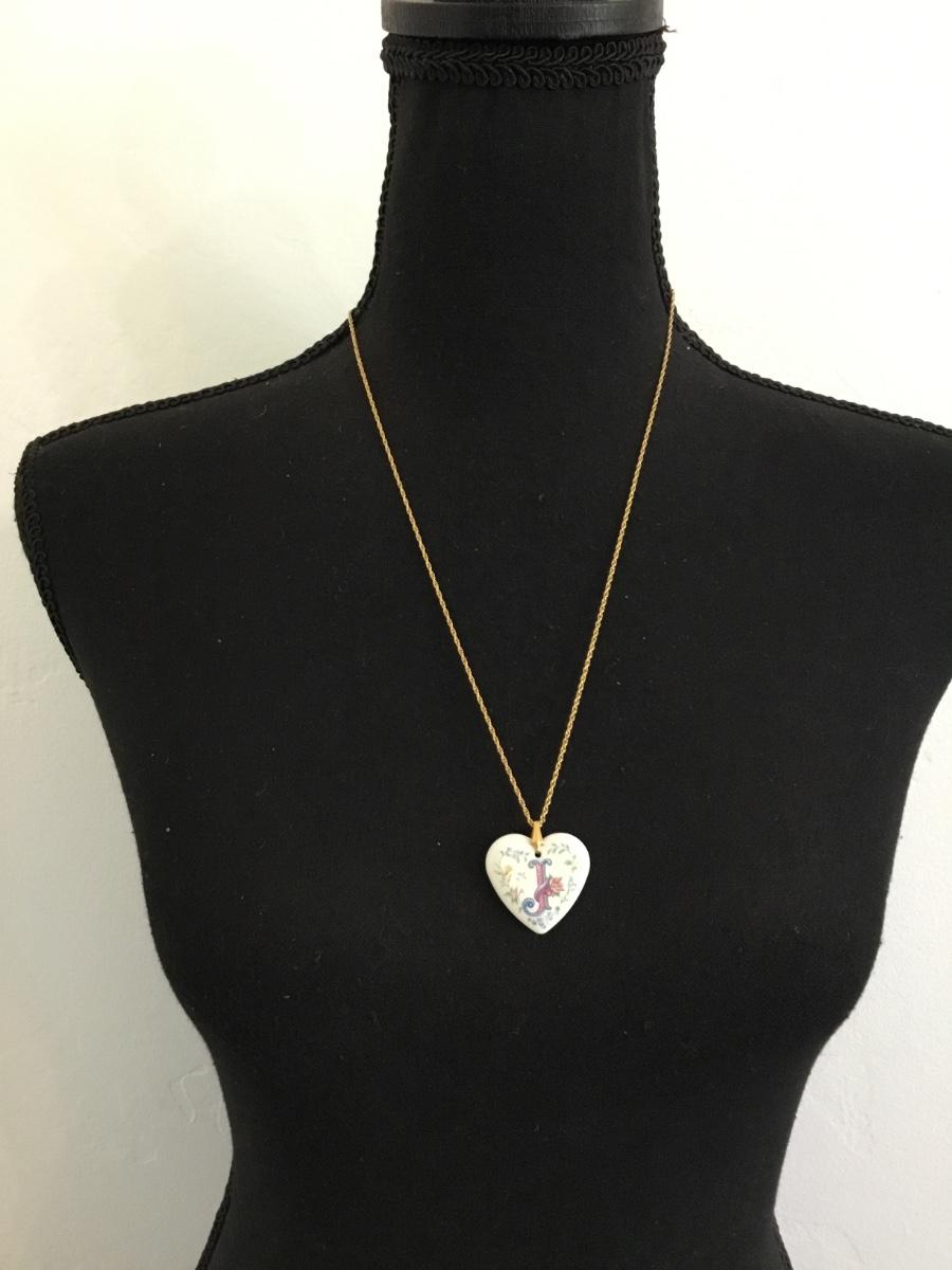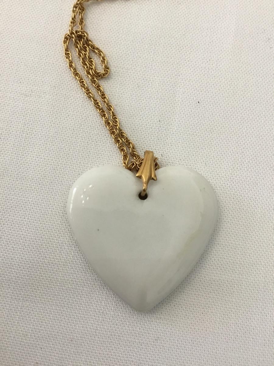 Vintage ceramic heart, gold tone, chain necklace