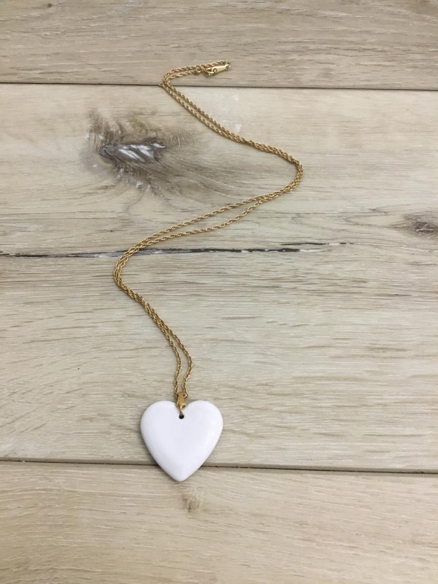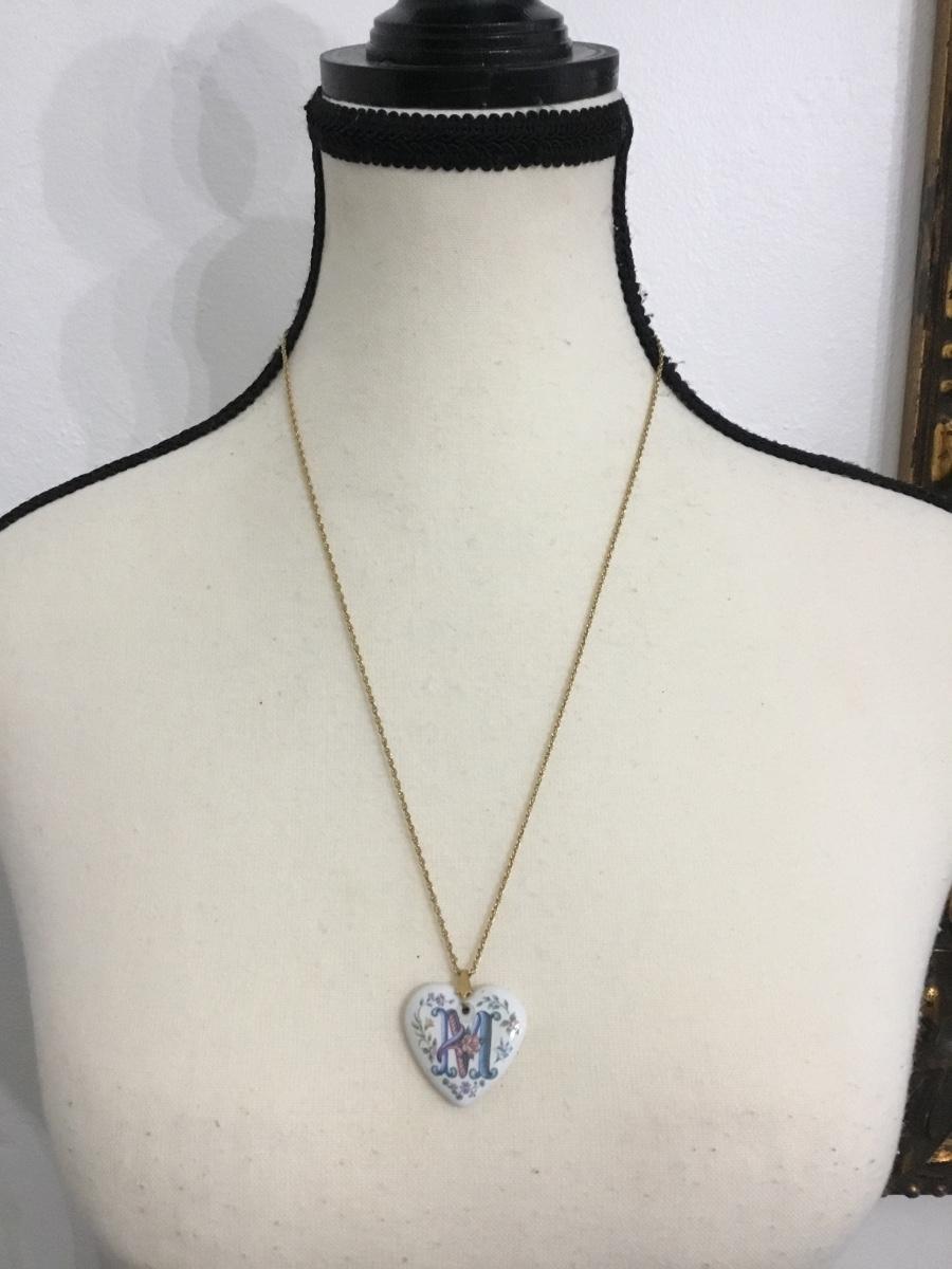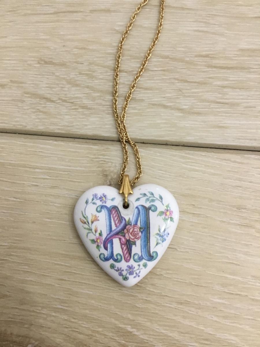 Vintage ceramic heart monogram and gold tone chain necklace